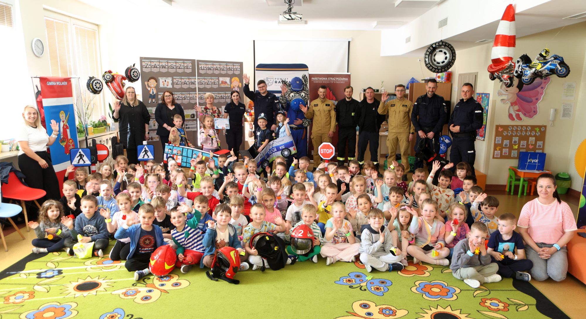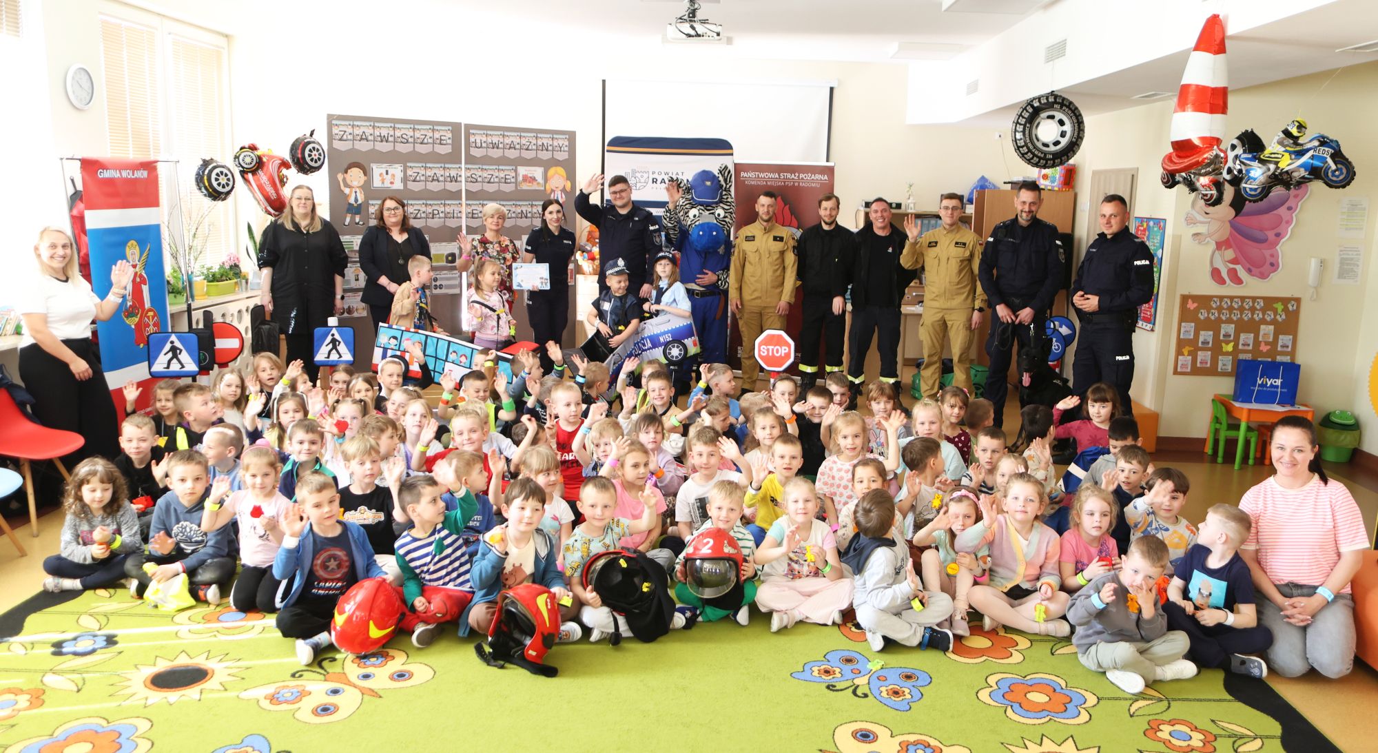 Policjanci, strażacy, pies Raski, a także Zebra… – tacy wspaniali goście odwiedzili w środę Publiczne Przedszkole w Wolanowie. Wizyta była efektem kampanii pod nazwą „Zawsze uważny, zawsze bezpieczny”.