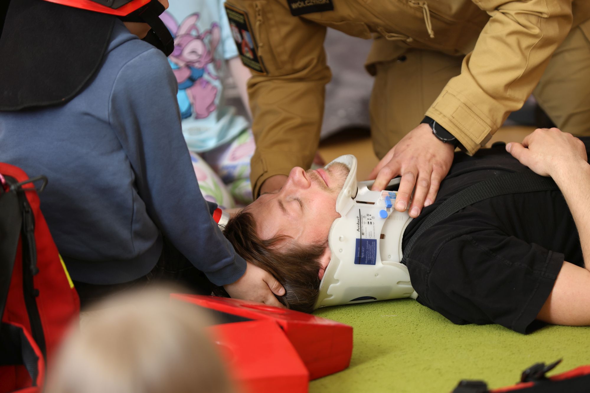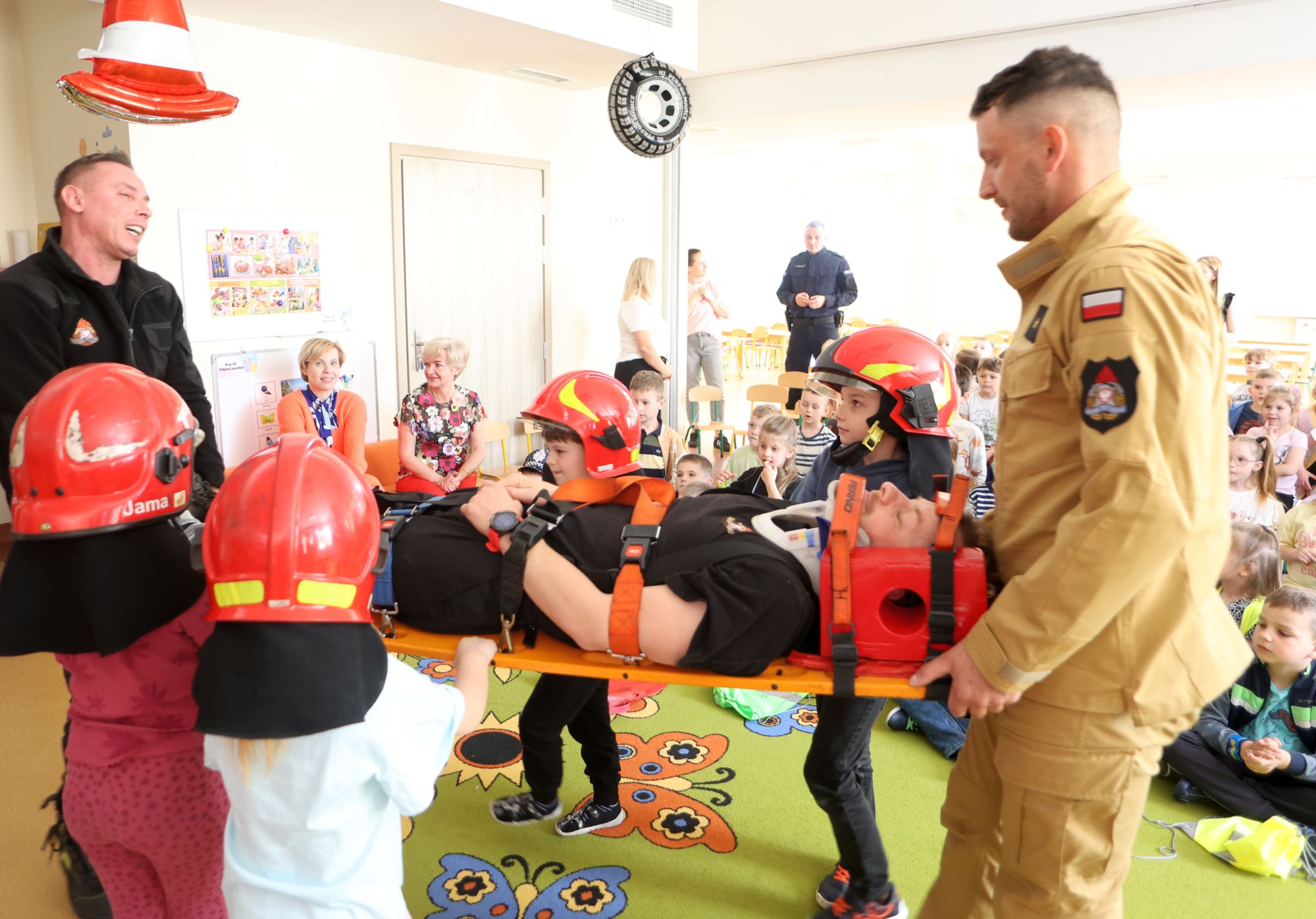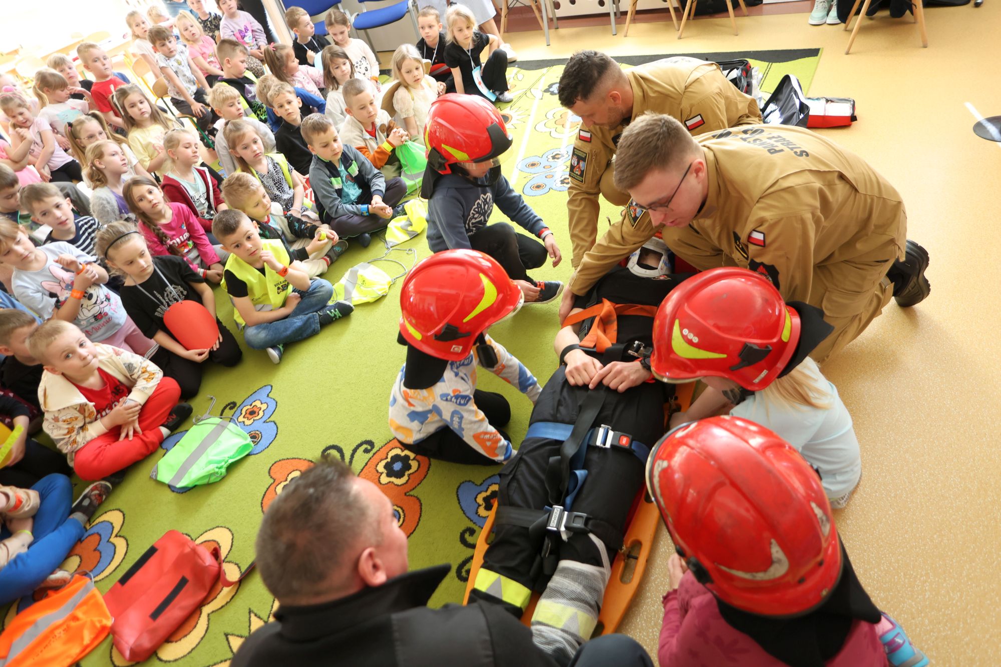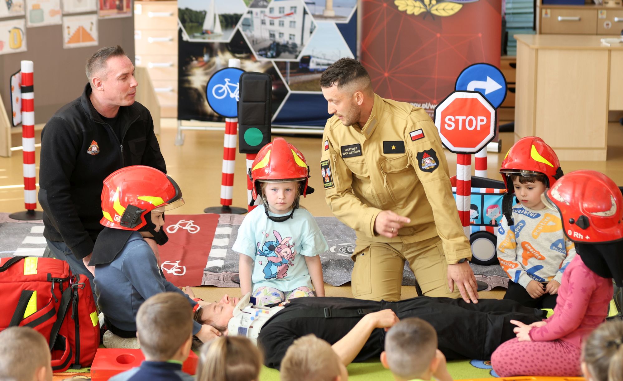 Najmłodsi dowiedzieli się do czego potrzebny jest numer alarmowy 112 i jakie informacje należy przekazywać podczas zdarzenia. Strażacy upozorowali wypadek drogowy na przejściu i pokazali jak udzielać pierwszej pomocy.