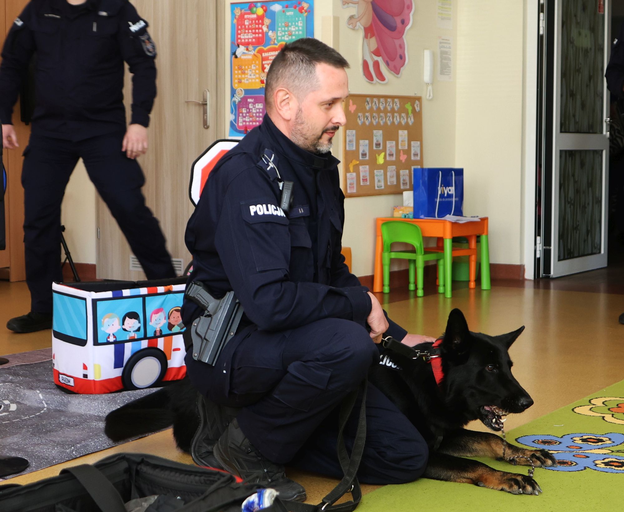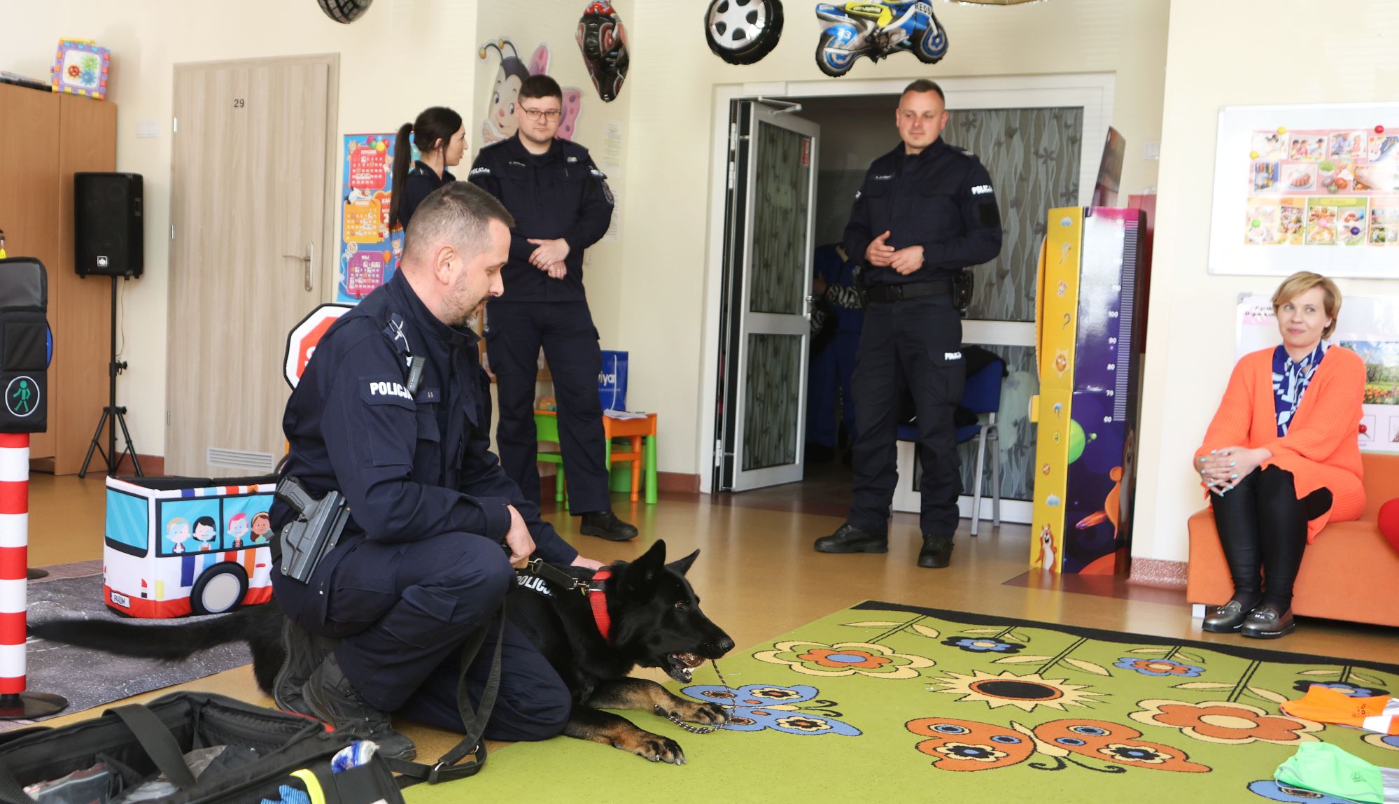 Z przedszkolakami spotkał się Raski – policyjny pies, który podczas swojej kilkuletniej służby zdołał już uratować pięcioro ludzi. Można było robić sobie pamiątkowe zdjęcia z psem i policyjną maskotką – Zebrą.