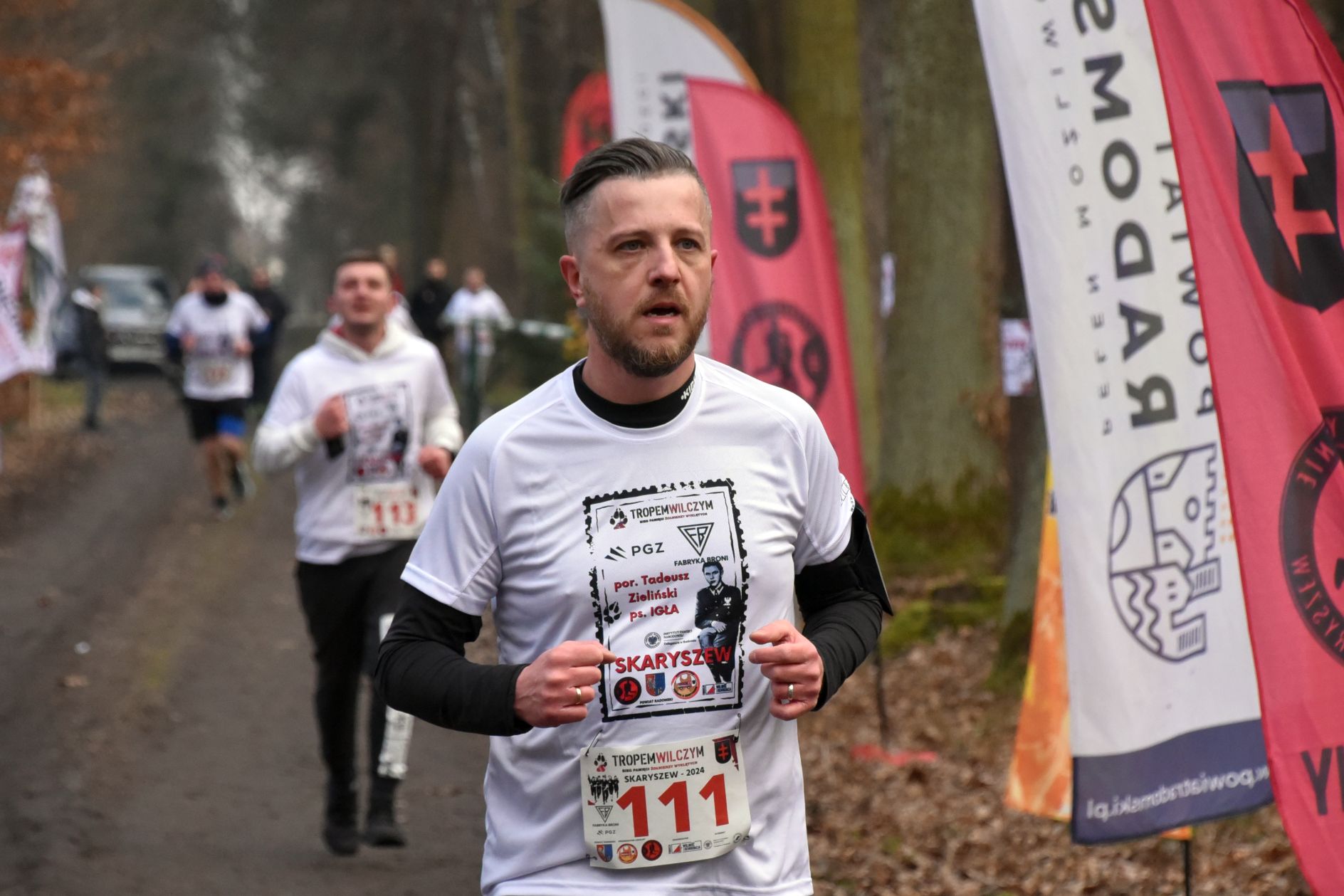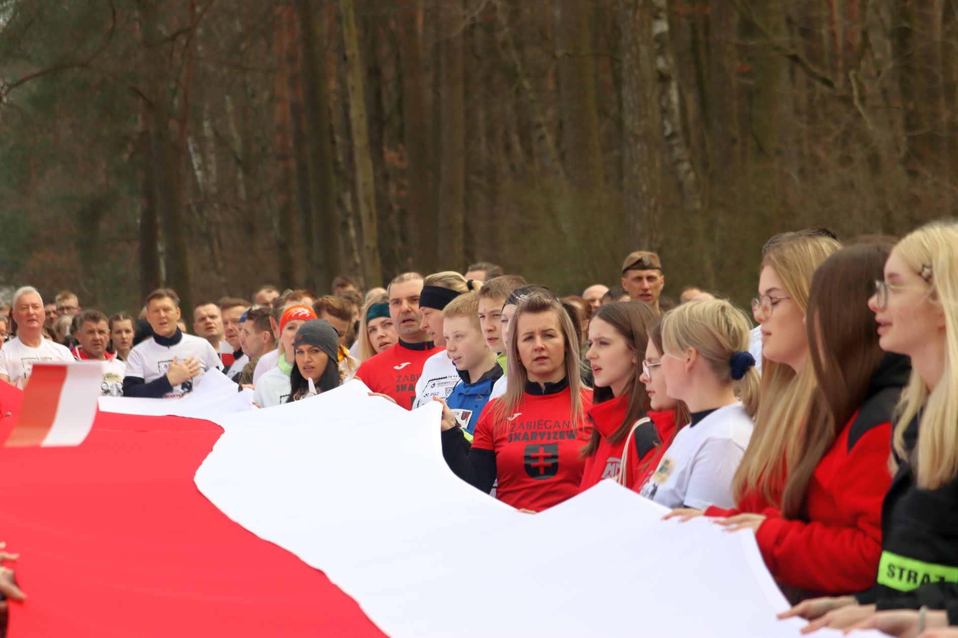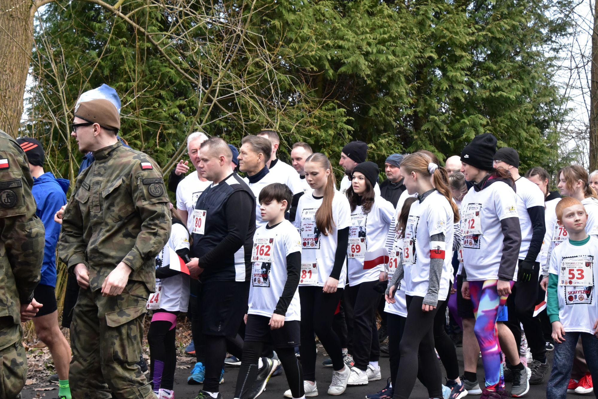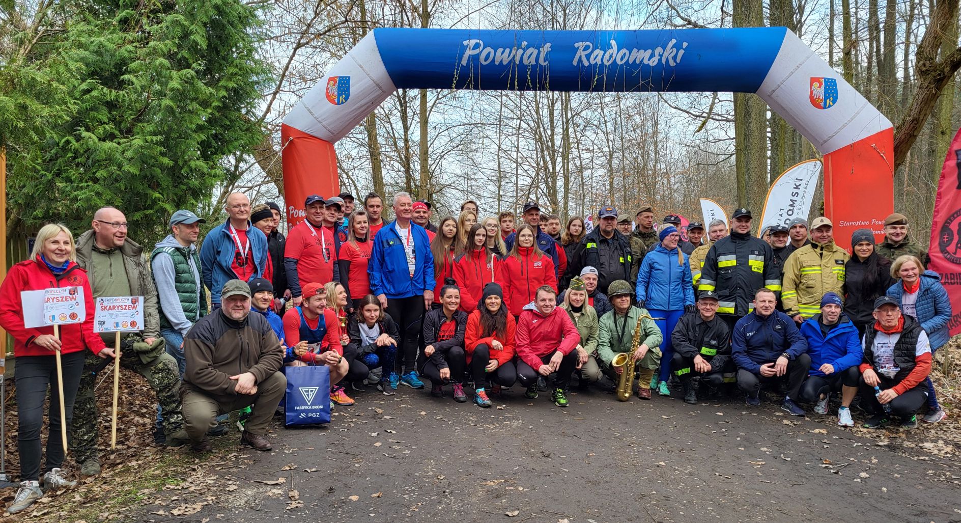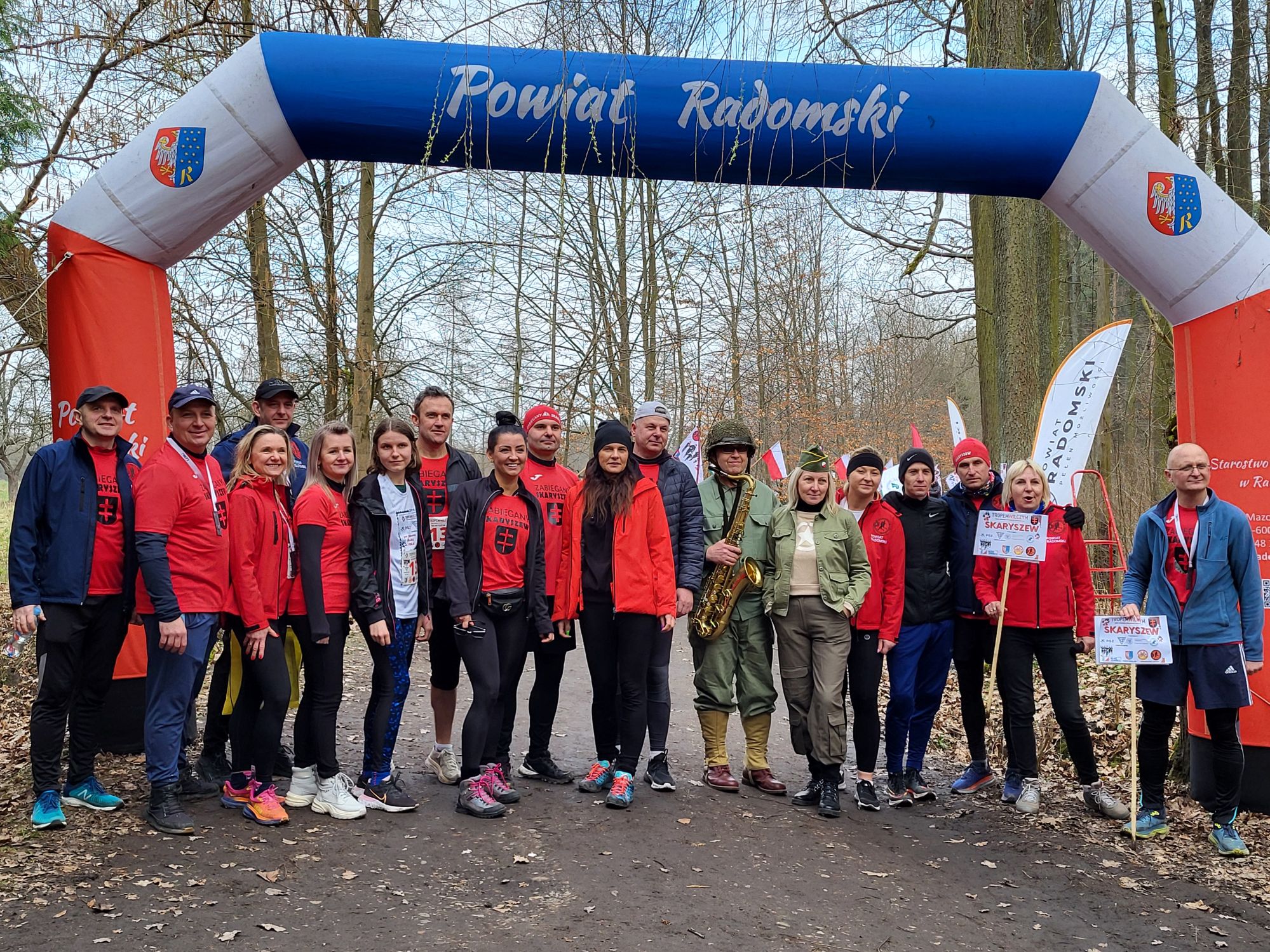 Do Skaryszewa dotarło w sumie prawie 200 uczestników. Najpierw odbył się symboliczny bieg na dystansie 1963 metrów. Odśpiewano hymn narodowy, odpalono biało – czerwone flary. Uczestnicy w okolicznościowych koszulkach przemierzyli przez las. Najszybciej tą symboliczną trasę pokonał radomski lekkoatleta, Denis Oraczko. Licznie przystąpiły dzieci, całe rodziny, jak również starosta Waldemar Trelka, czy też Zdzisław Mroczkowski, zastępca przewodniczącego Rady Powiatu Radomskiego.