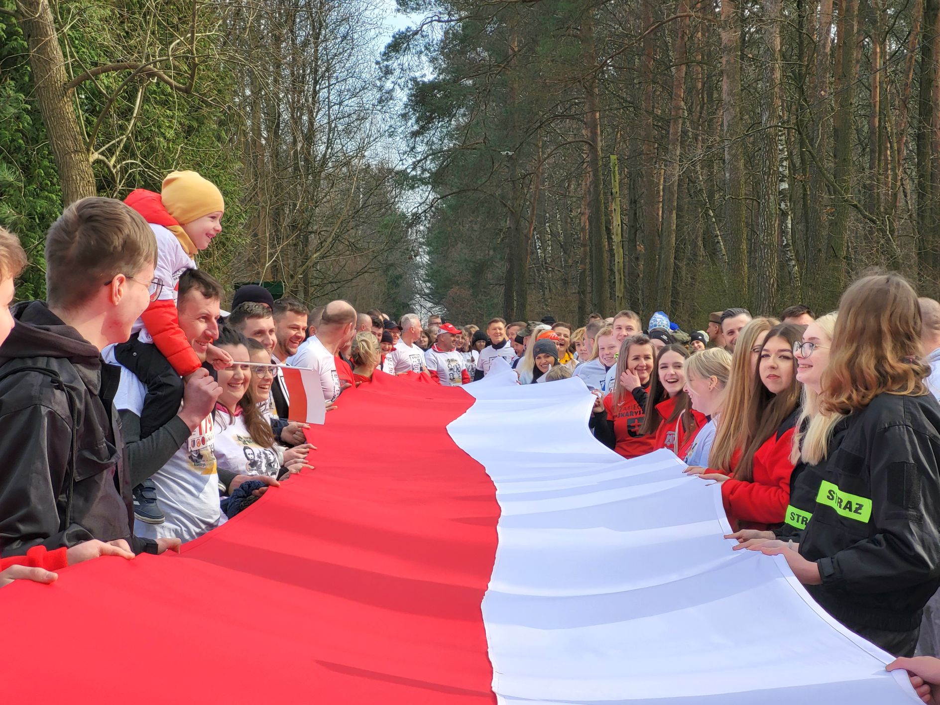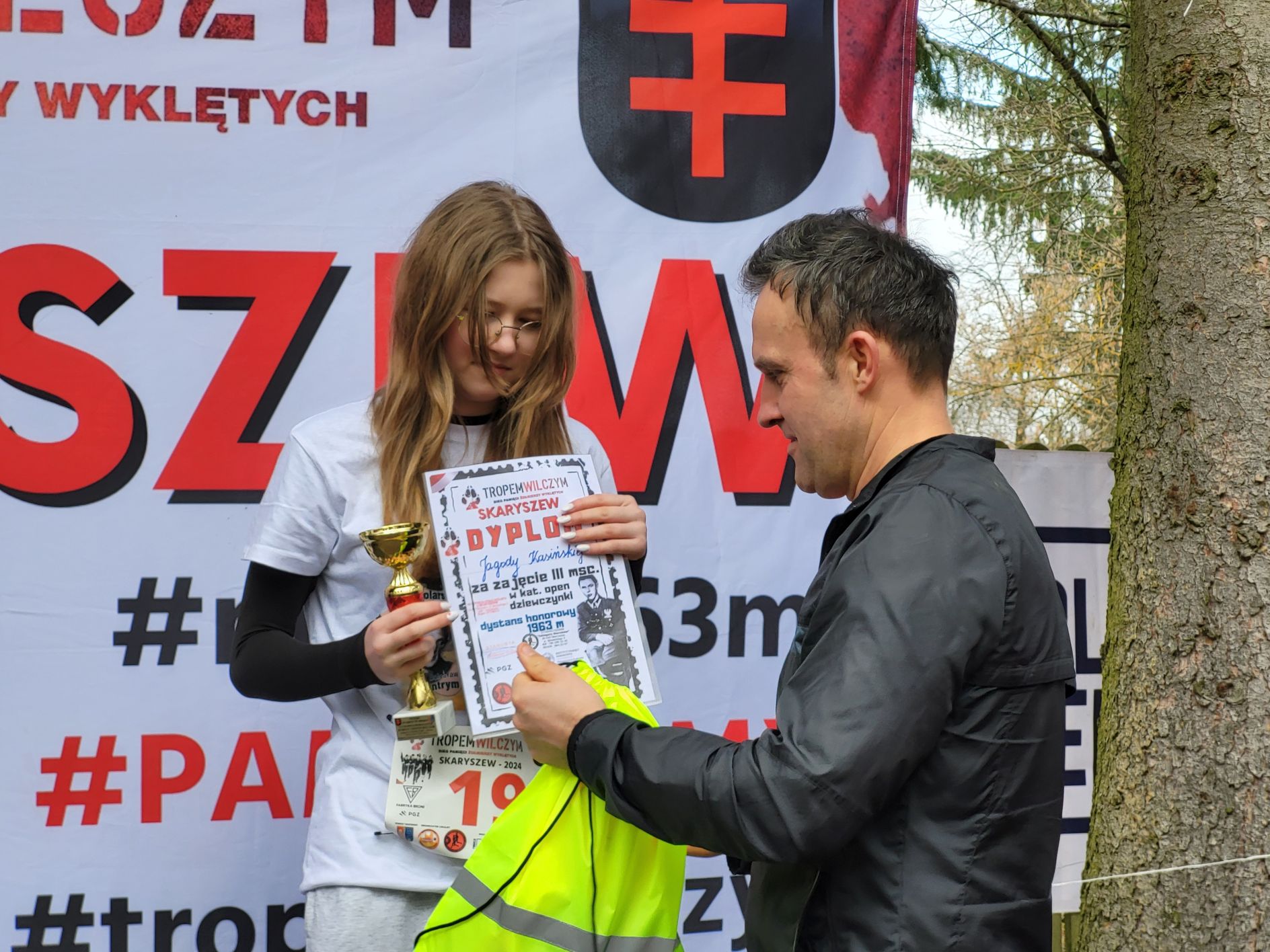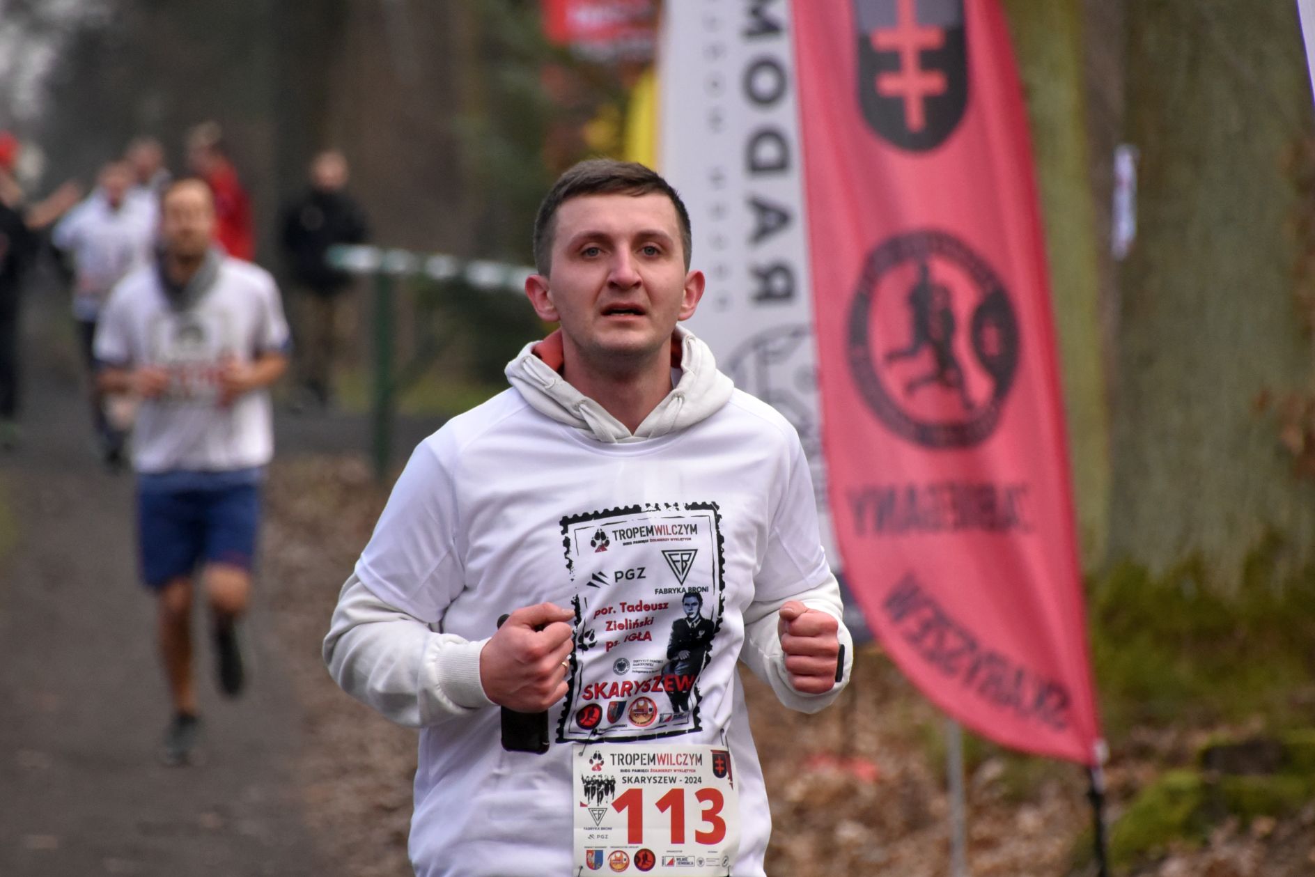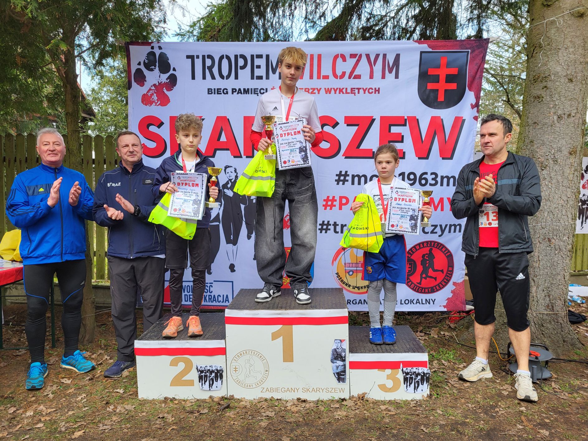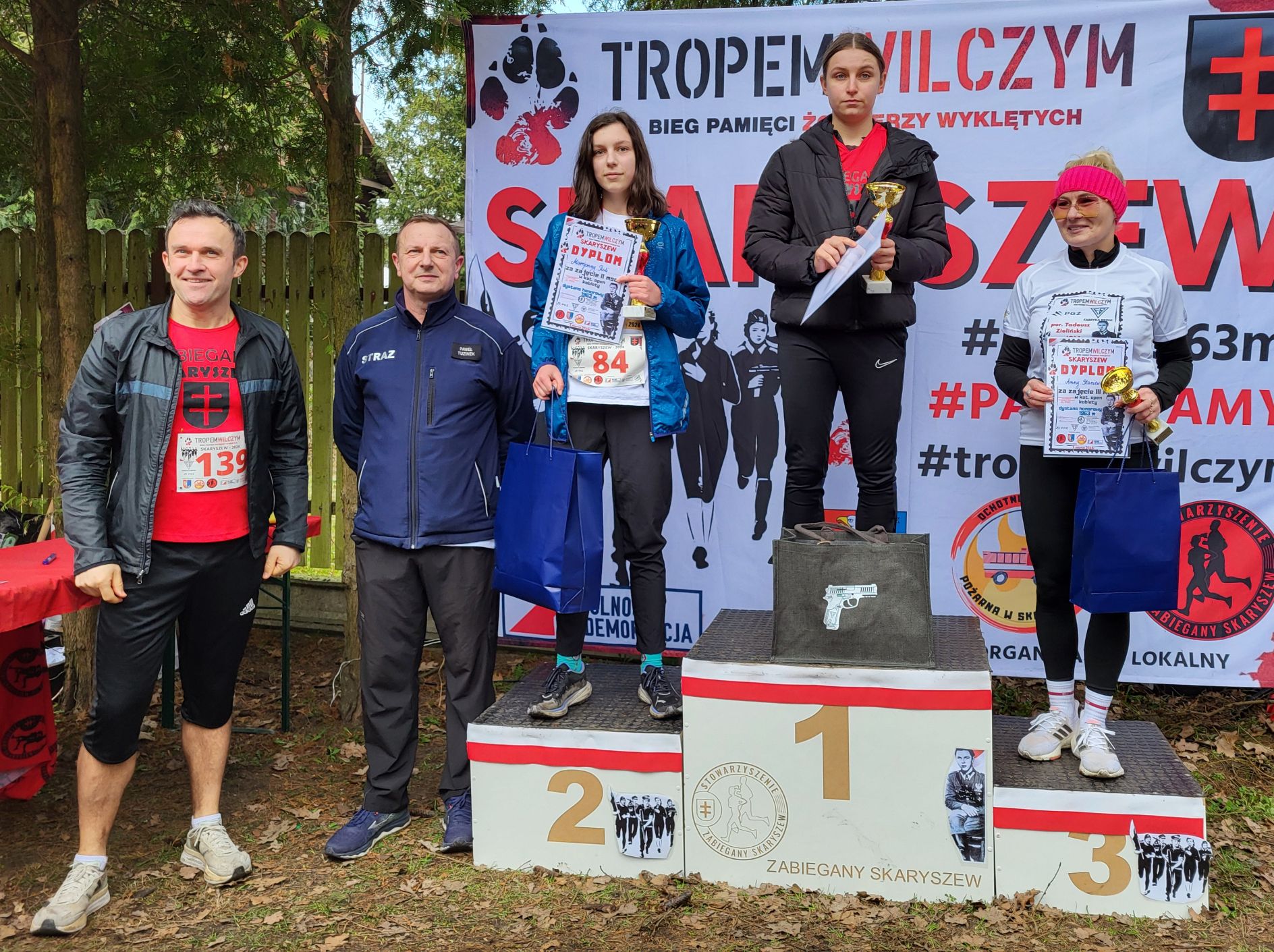 Do Skaryszewa dotarło w sumie prawie 200 uczestników. Najpierw odbył się symboliczny bieg na dystansie 1963 metrów. Odśpiewano hymn narodowy, odpalono biało – czerwone flary. Uczestnicy w okolicznościowych koszulkach przemierzyli przez las. Najszybciej tą symboliczną trasę pokonał radomski lekkoatleta, Denis Oraczko. Licznie przystąpiły dzieci, całe rodziny, jak również starosta Waldemar Trelka, czy też Zdzisław Mroczkowski, zastępca przewodniczącego Rady Powiatu Radomskiego.