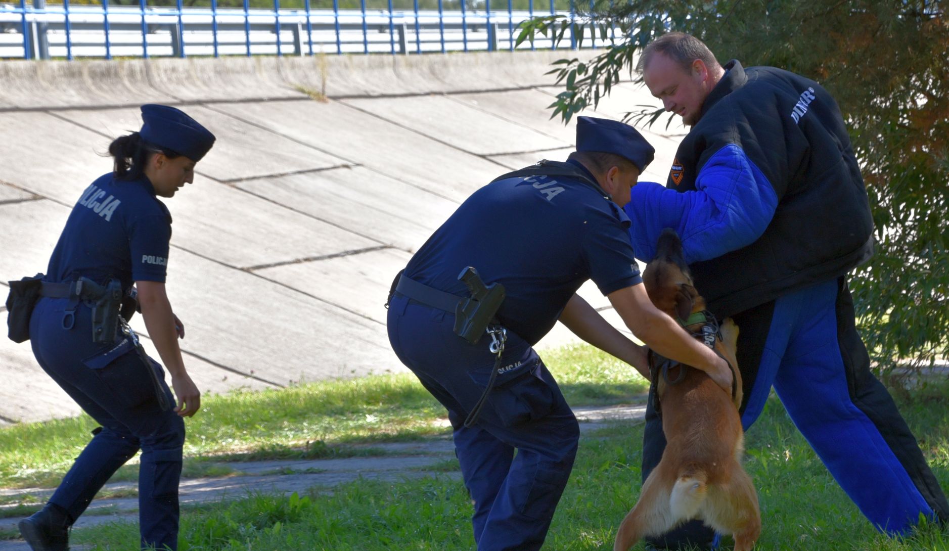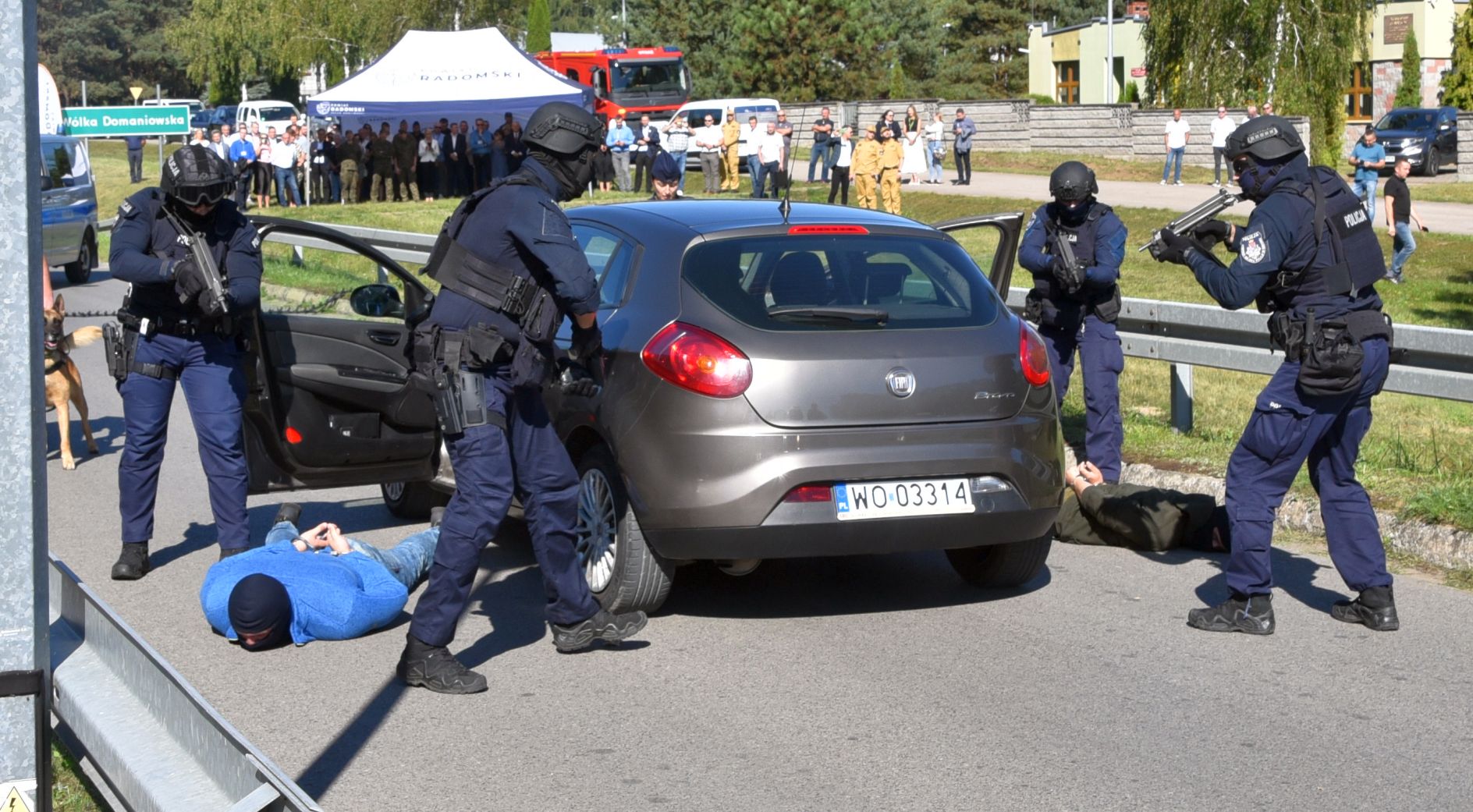 Ostatnim elementem ćwiczeń był pokaz umiejętności psów służbowych KMP w Radomiu, których zakup został dofinansowany z budżetu Powiatu Radomskiego. Zaprezentowano m.in. obezwładnienie niebezpiecznego przestępcy w bezpośrednim pościgu. Kierownikiem ćwiczenia z ramienia KMP Radom był nadkom. Mariusz Staszowski  –  naczelnik Wydziału Sztab Policji.