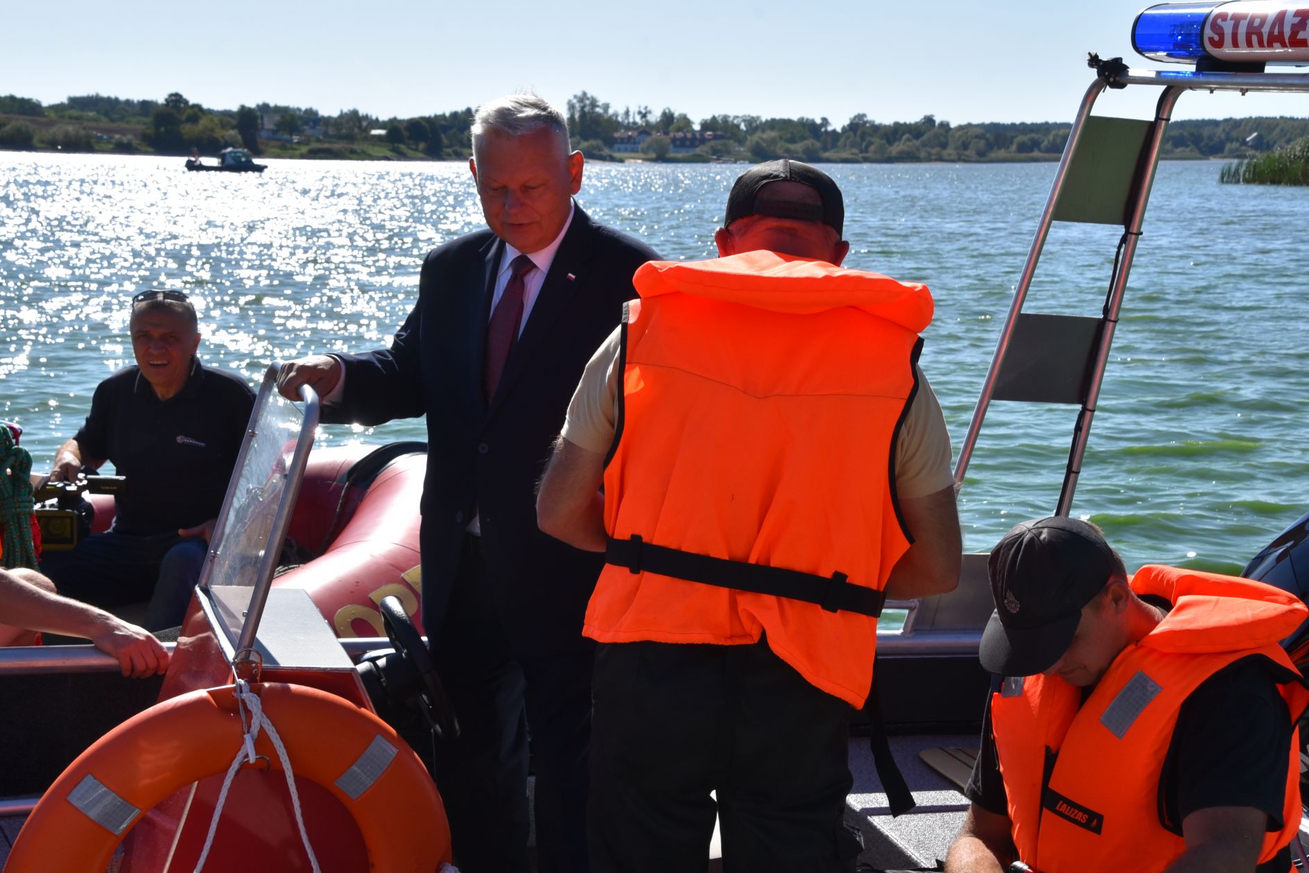 W związku z akcją na wodzie dalsze działania przejął Posterunek Policji w Przytyku, dysponujący łodzią motorową, patrolującą na co dzień zalew domaniowski. Dodatkowo do zabezpieczenia linii brzegowej zbiornika zostali zadysponowani żołnierze 6 MBOT oraz żołnierze Kompanii Saperów z Pomiechówka z kolejną łodzią. Pojawiła się również łódź Wodnego Ochotniczego Pogotowia Ratunkowego, a wkrótce potem kolejna łódź Ochotniczej Straży Pożarna we Wrzosie, zadysponowana przez Stanowisko Kierowania Komendanta Miejskiego Państwowej Straży Pożarnej.  Zabezpieczenie logistyczne, dyspozycją wójta gminy Przytyk, zaczęły realizować jednostki OSP Przytyk i OSP Domaniów.