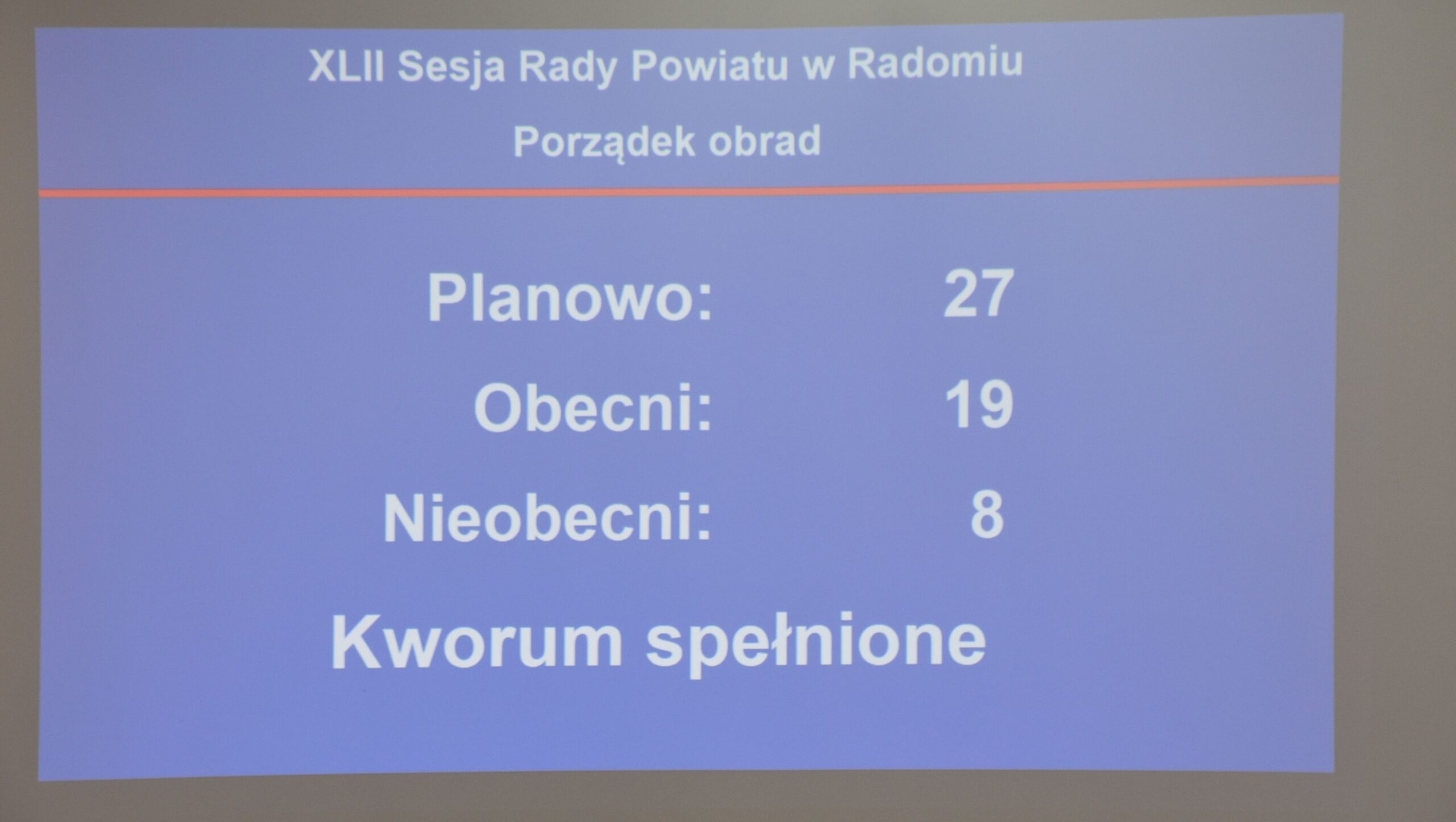 Otwarcia XLII sesji Rady Powiatu dokonał wiceprzewodniczący Zdzisław Mroczkowski, któremu towarzyszyła wiceprzewodnicząca Teodozja Bień. Radni przyjęli porządek obrad oraz protokół z poprzedniej sesji.