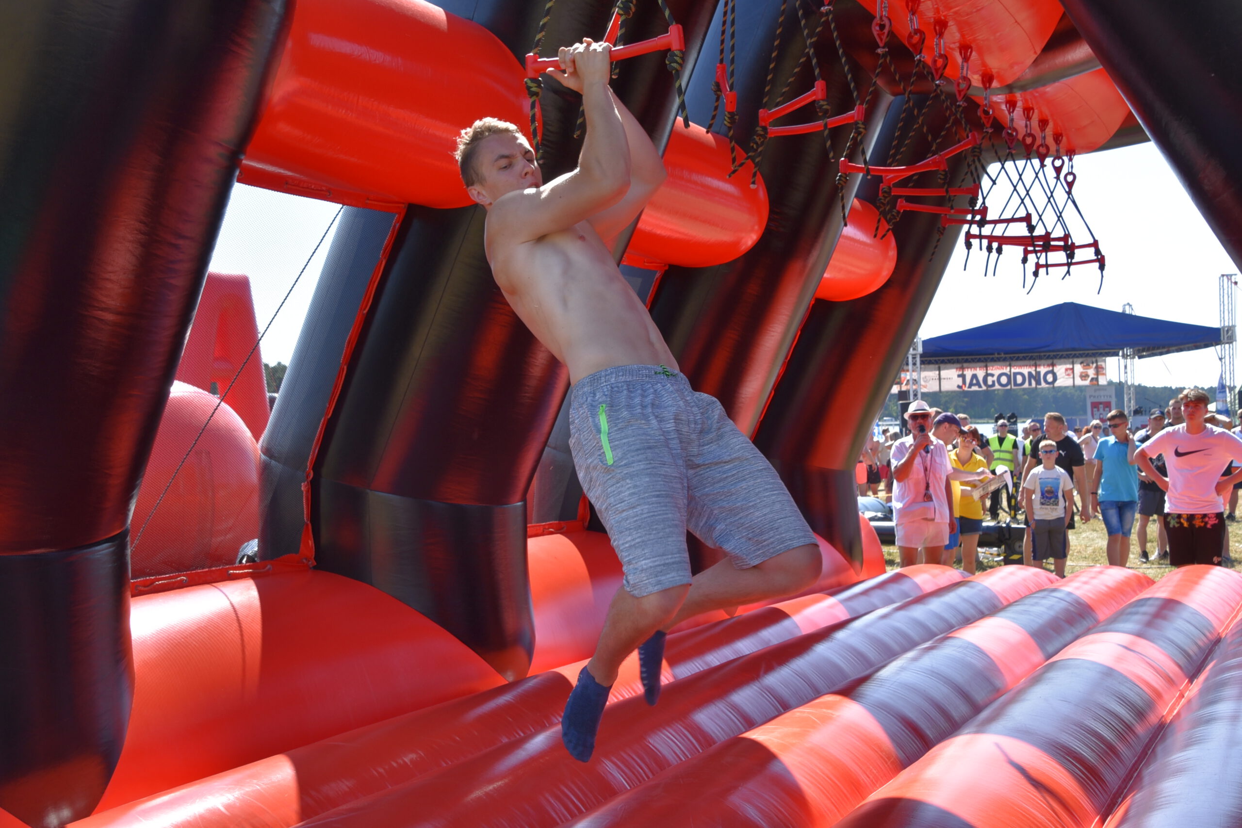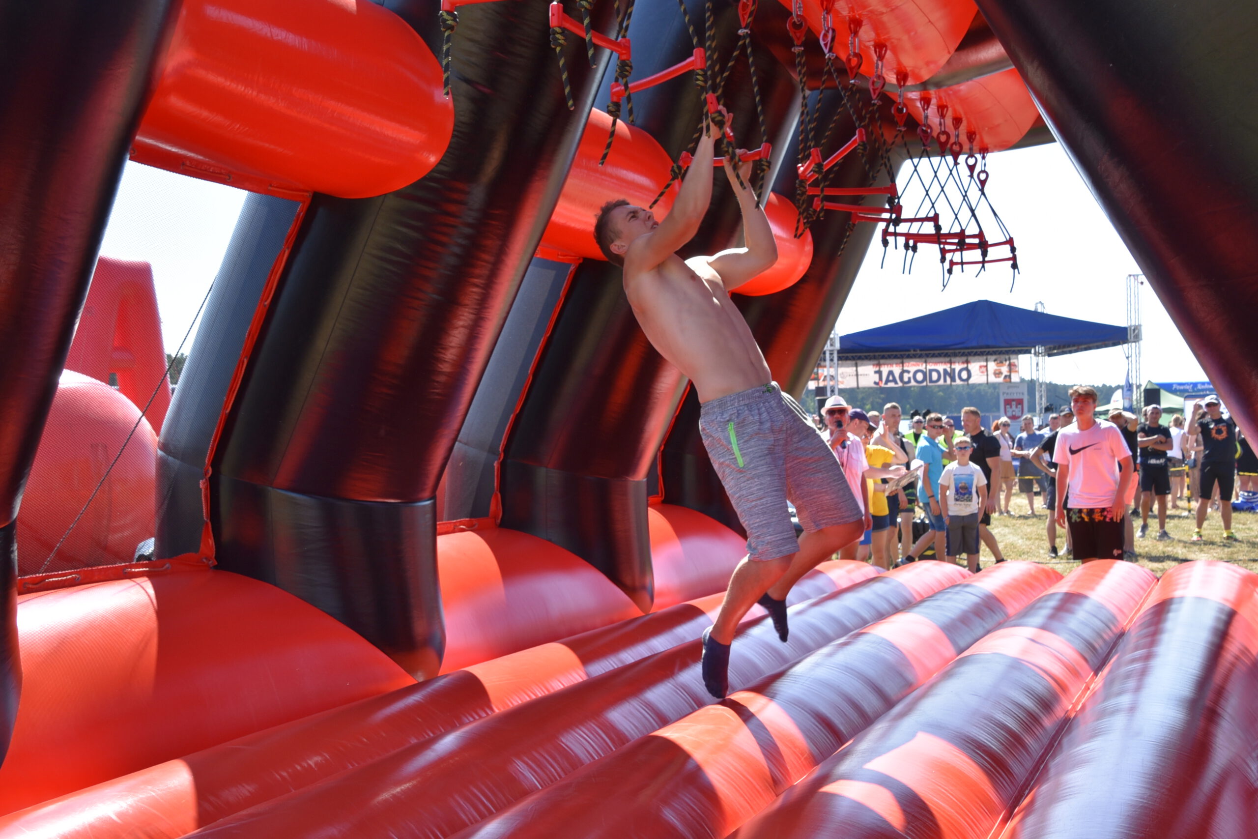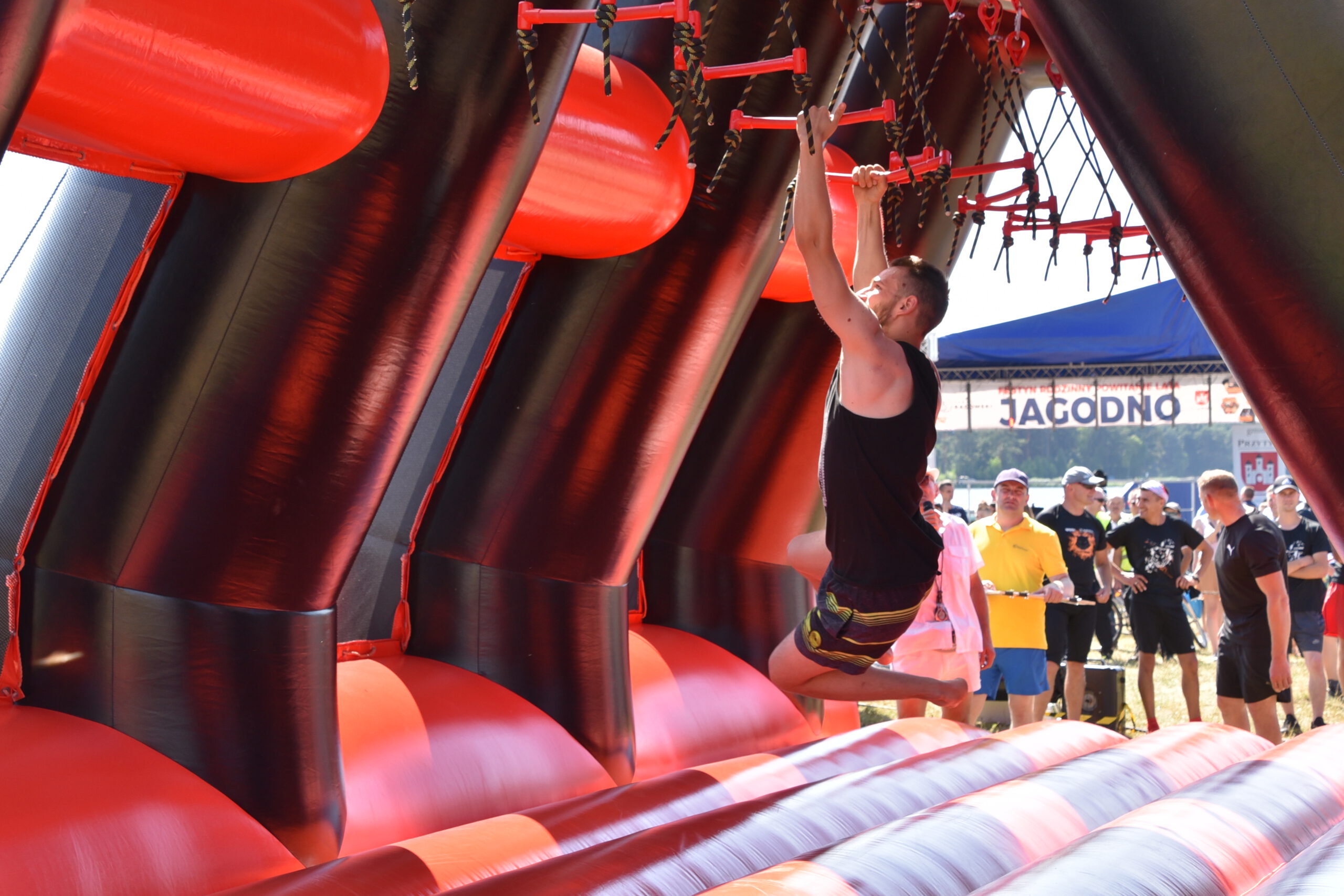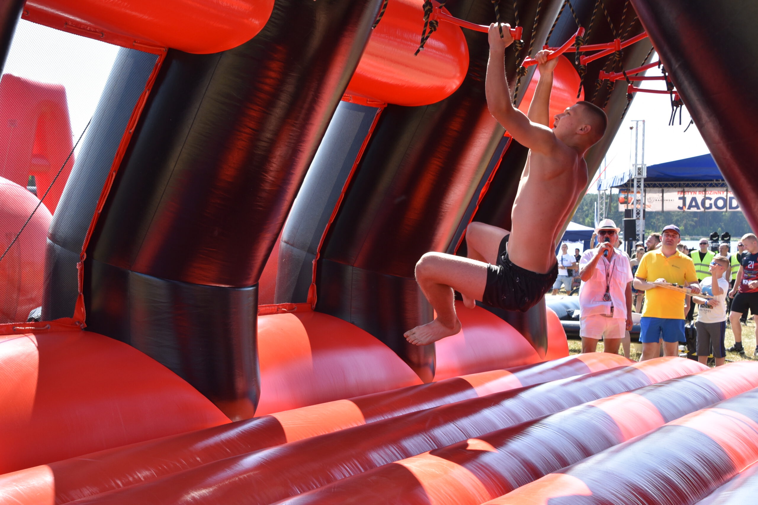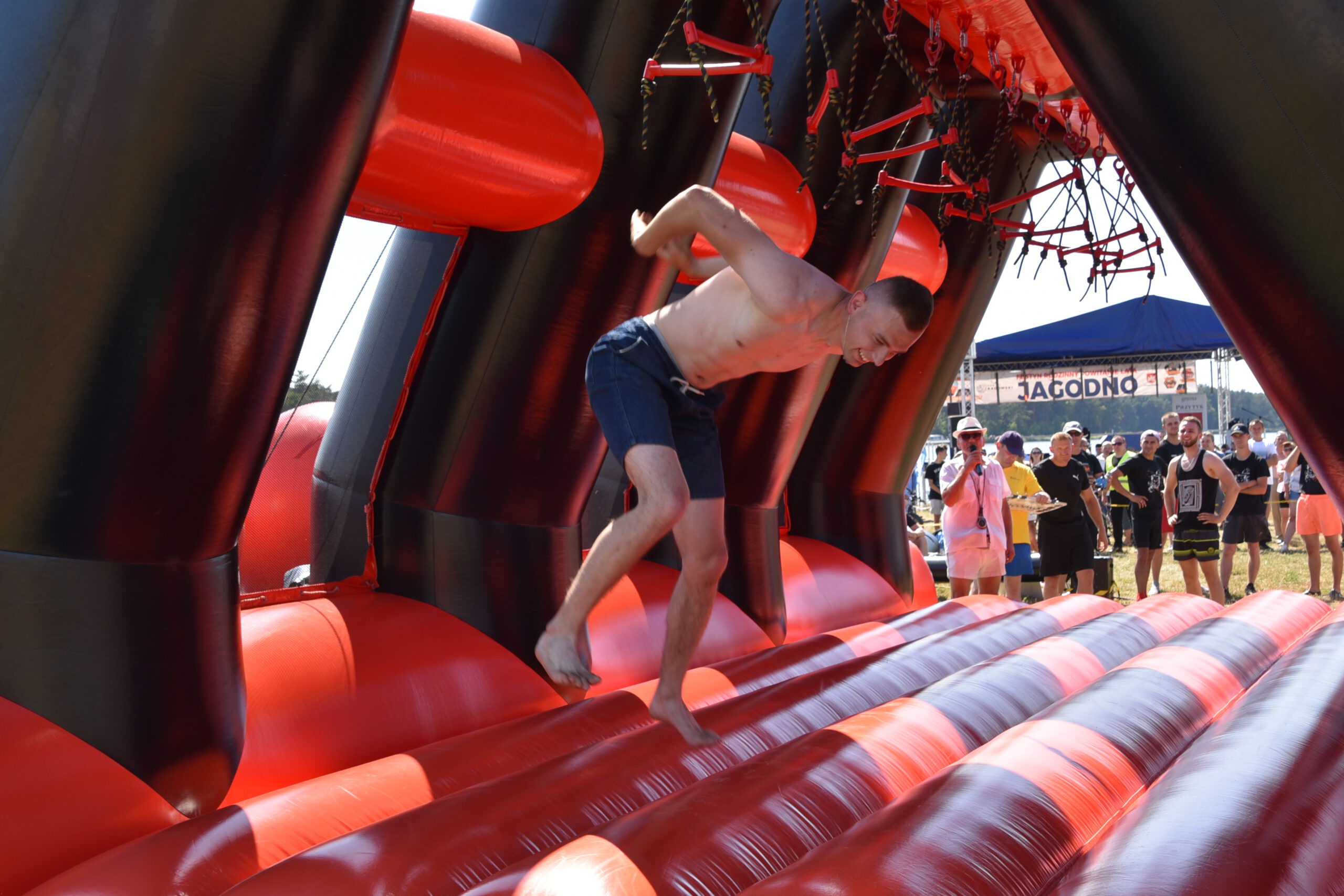 Tego dnia nad Zalewem Jagodno nie zabrakło atrakcji dla najmłodszych i tych nieco starszych. Pierwszym punktem programu były zawody w stylu Ninja Warrior na pneumatycznych torach przeszkód. Brały w nich udział trzyosobowe drużyny.