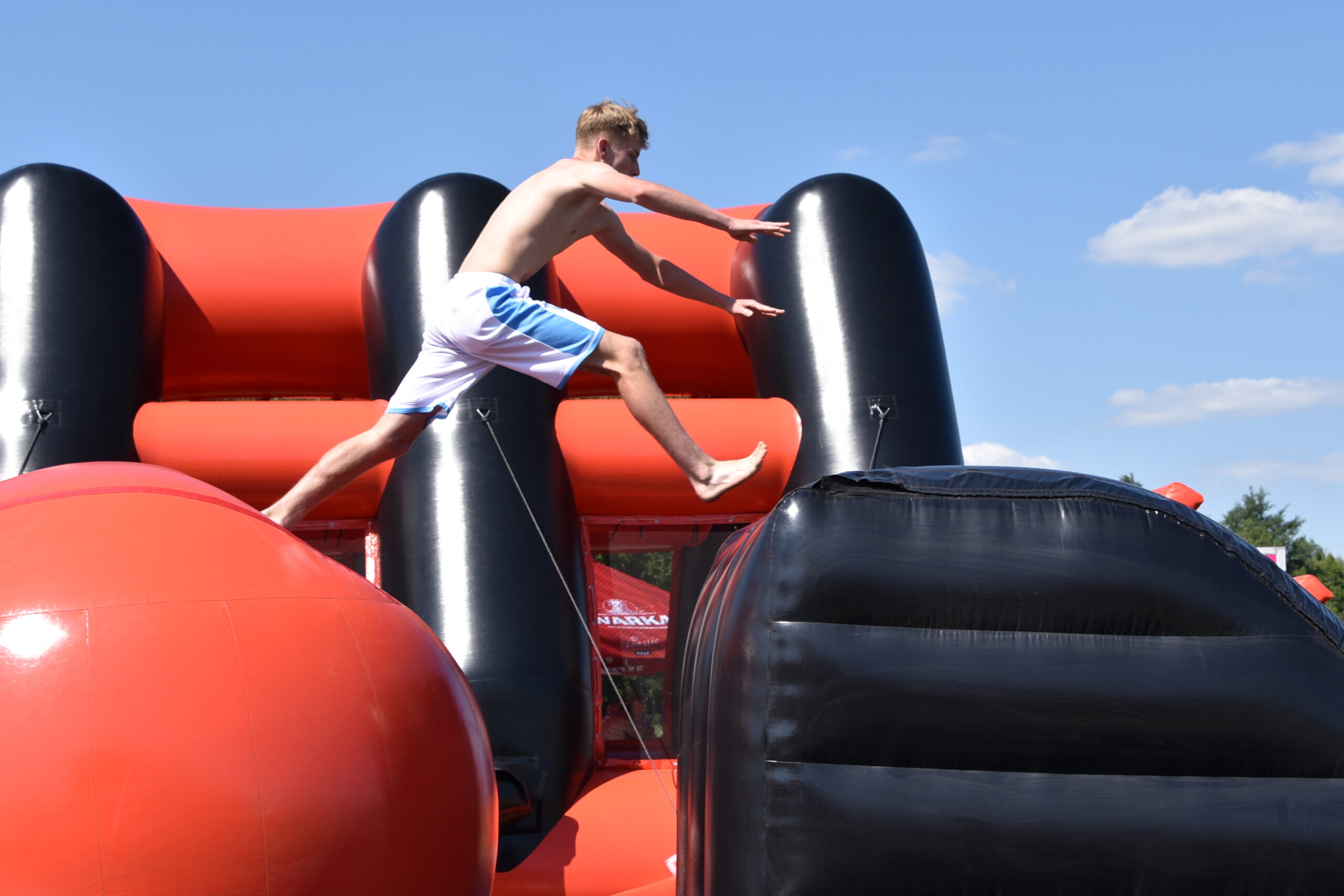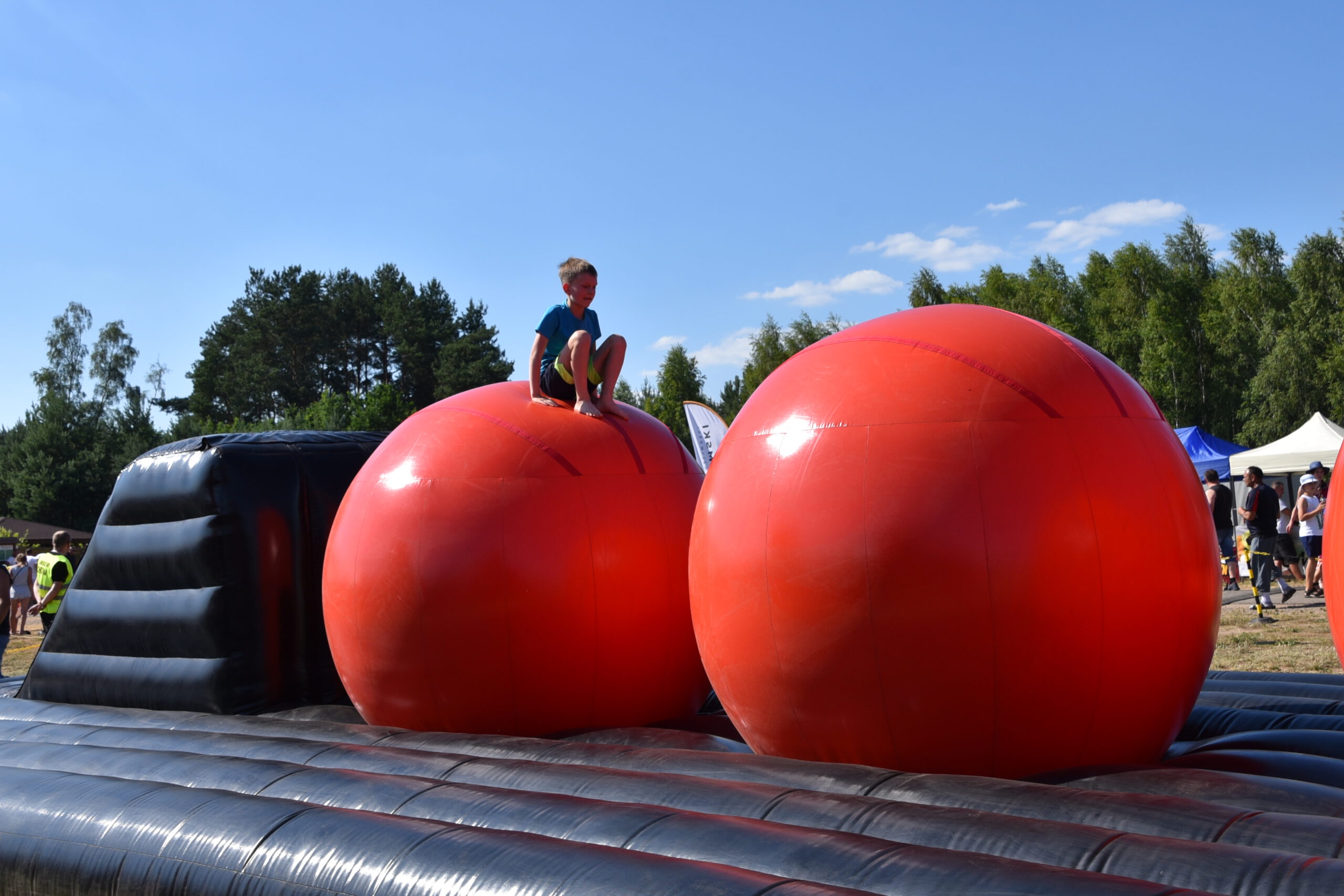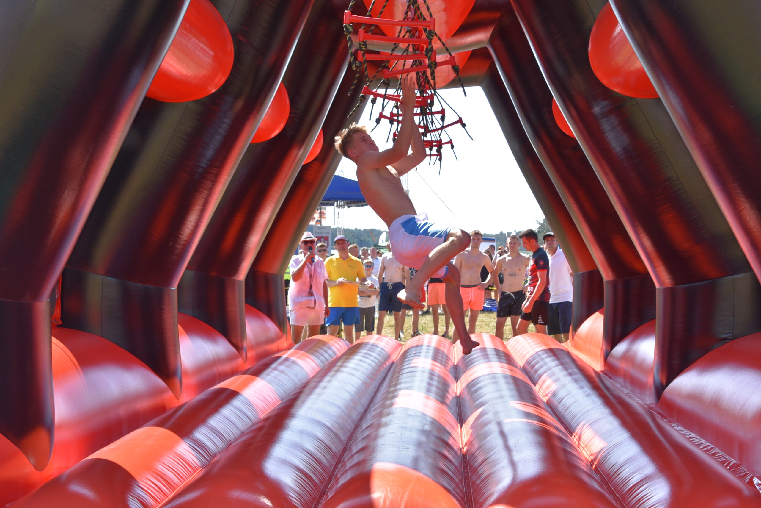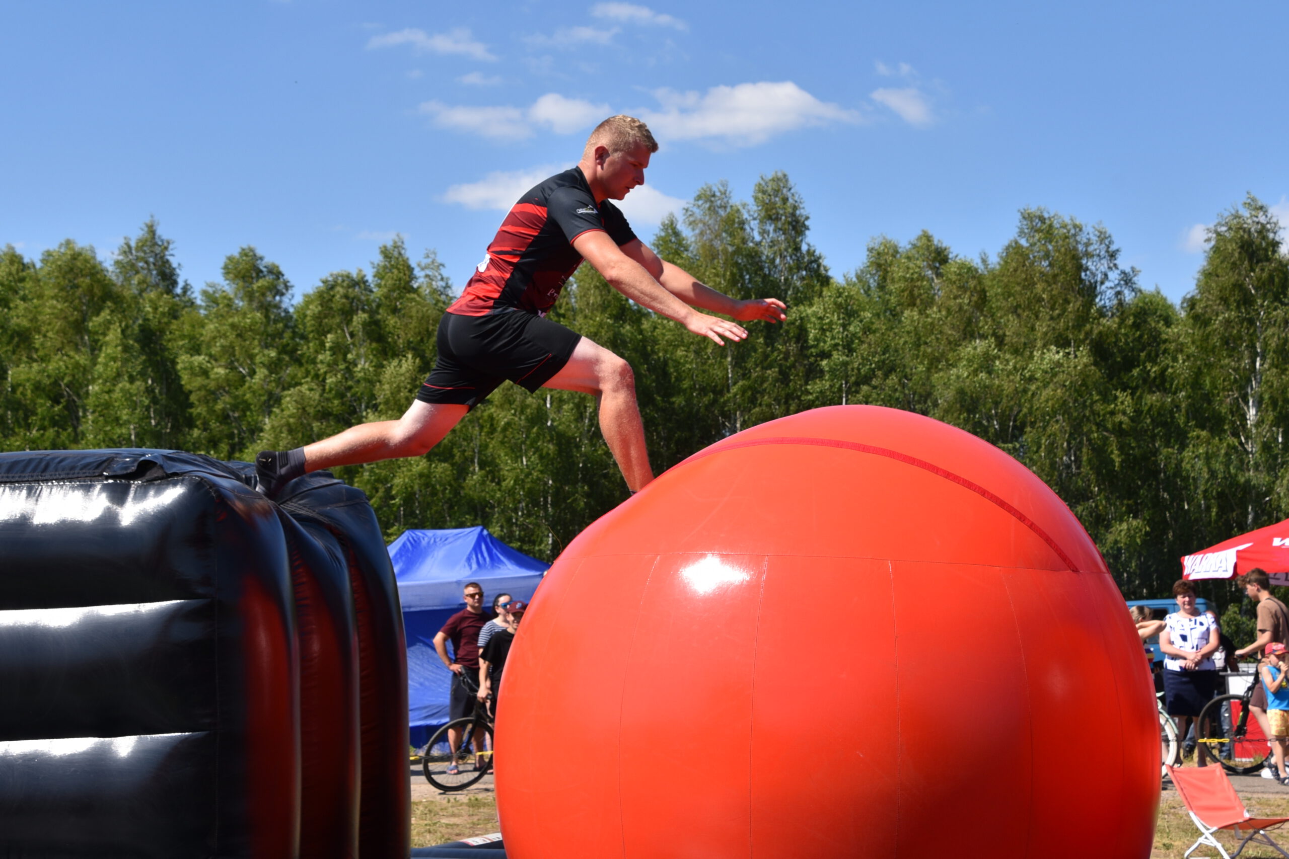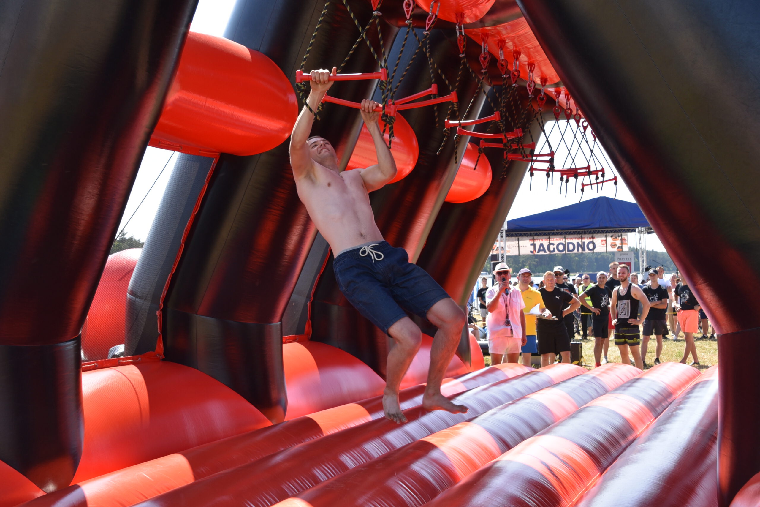 Tego dnia nad Zalewem Jagodno nie zabrakło atrakcji dla najmłodszych i tych nieco starszych. Pierwszym punktem programu były zawody w stylu Ninja Warrior na pneumatycznych torach przeszkód. Brały w nich udział trzyosobowe drużyny.