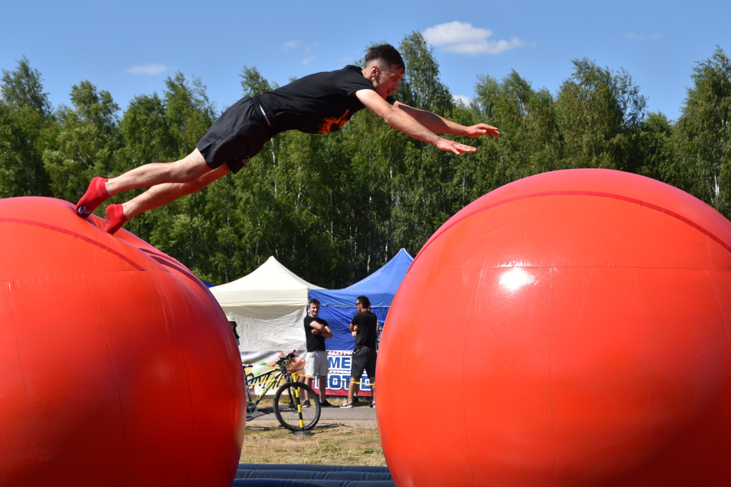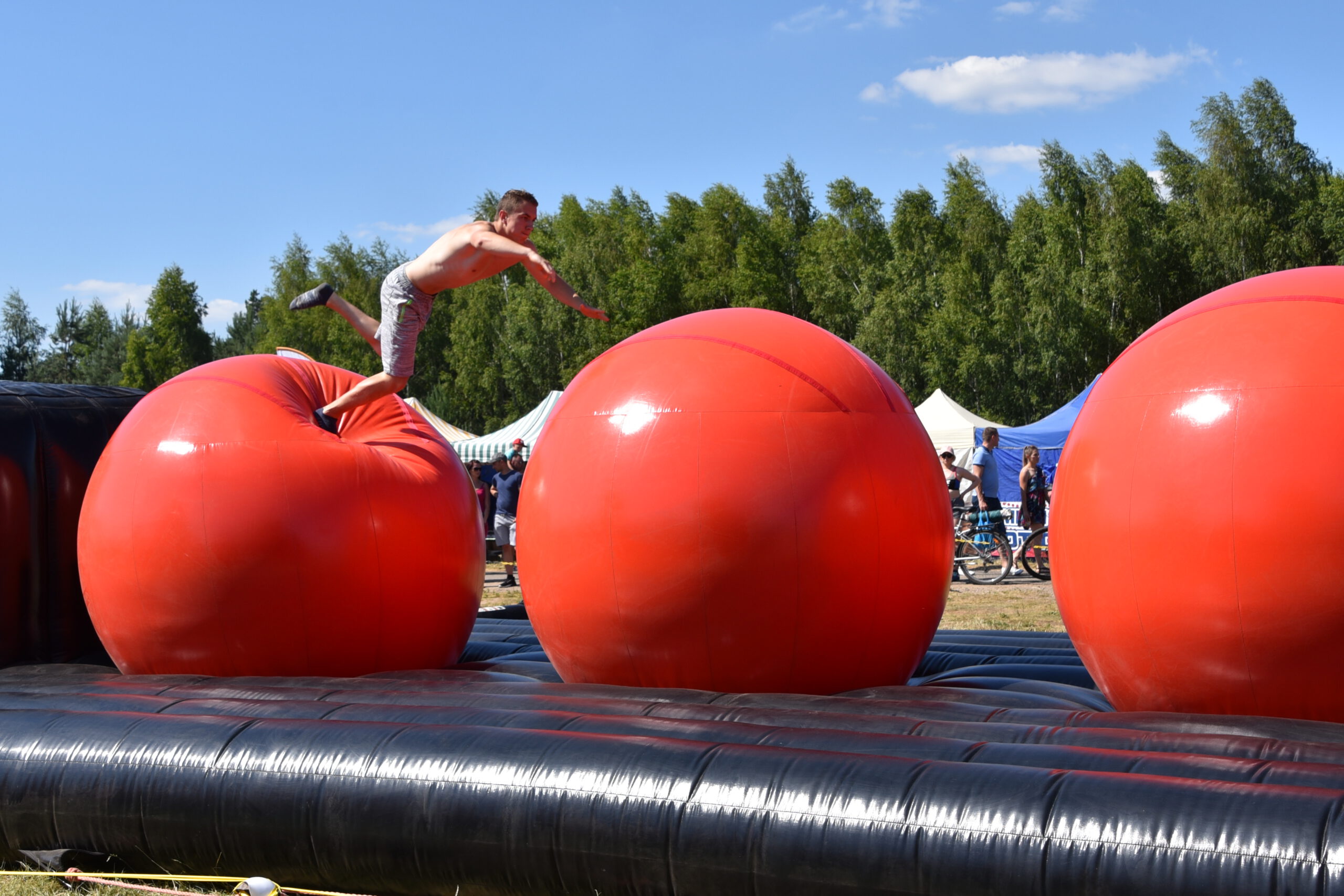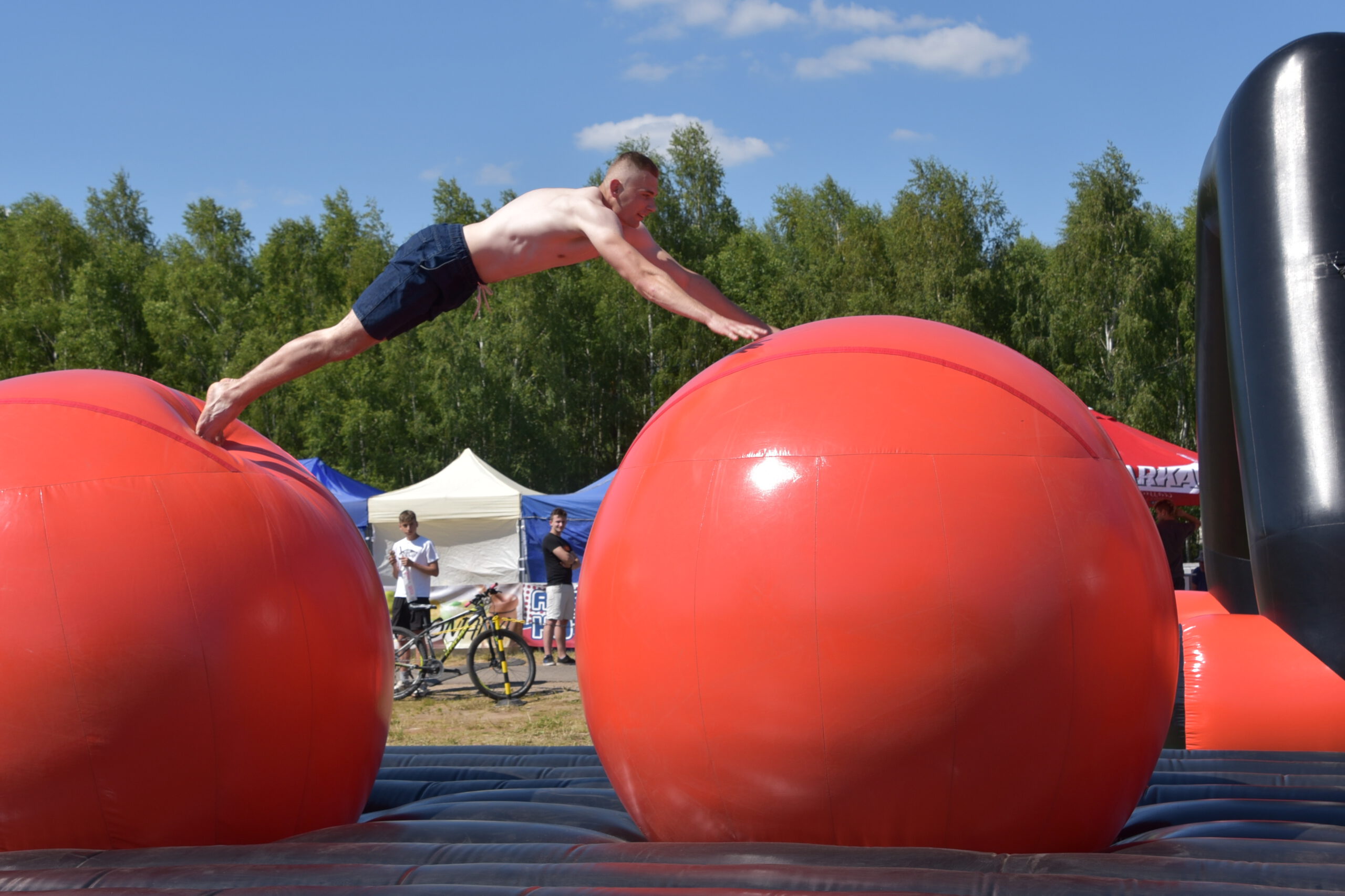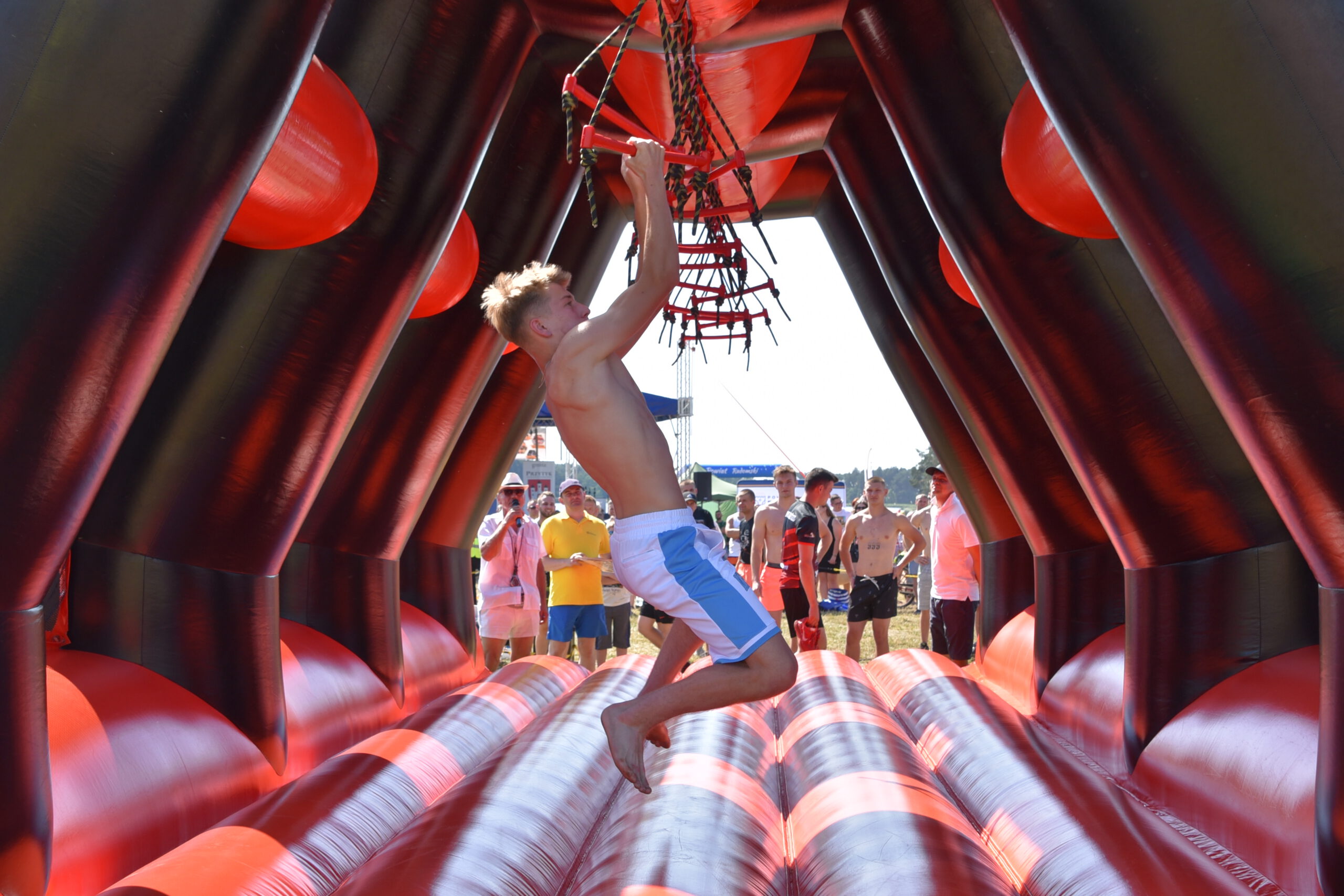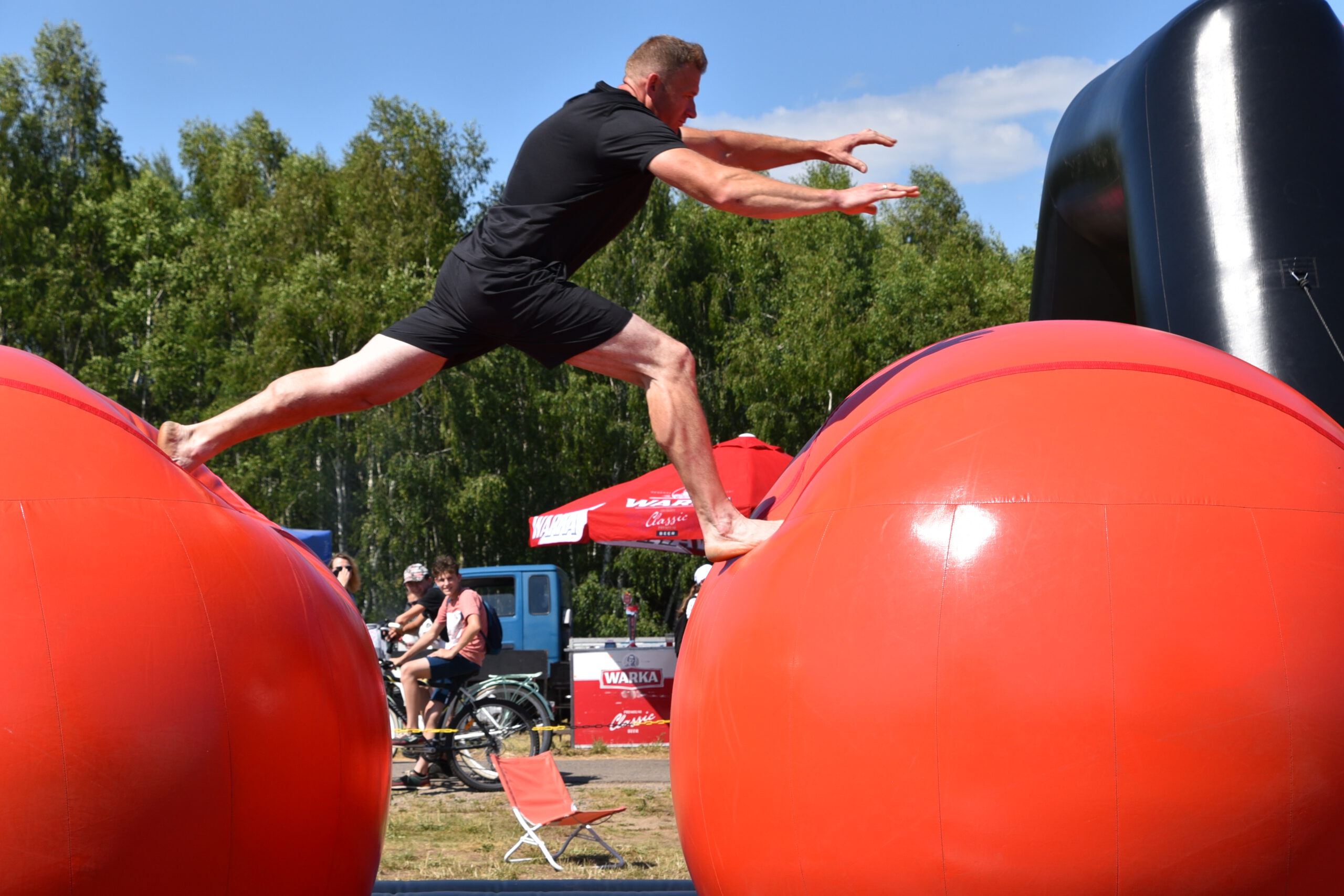 Tego dnia nad Zalewem Jagodno nie zabrakło atrakcji dla najmłodszych i tych nieco starszych. Pierwszym punktem programu były zawody w stylu Ninja Warrior na pneumatycznych torach przeszkód. Brały w nich udział trzyosobowe drużyny.