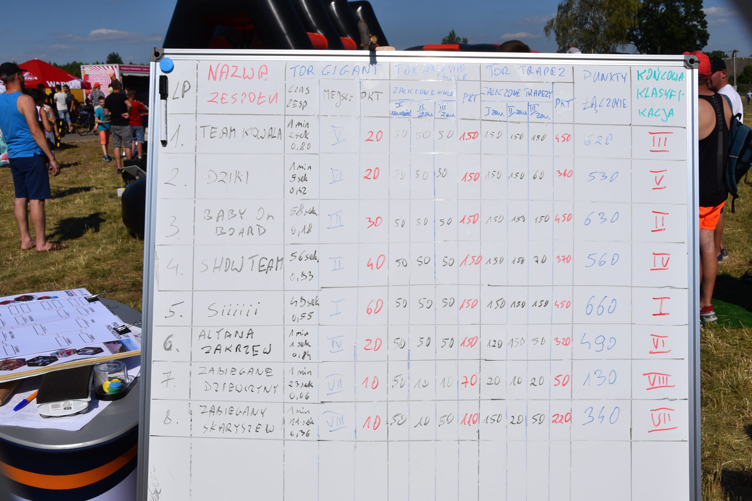 Kolejne miejsca zajęły odpowiednio drużyny: SHOW TEAM (560p.), DZIKI (530 p.), ALTANA ZAKRZEW (490 p.), ZABIEGANY SKARYSZEW (340 p.) oraz jedyna żeńska ekipa ZABIEGANE DZIEWCZYNY (130 p.).