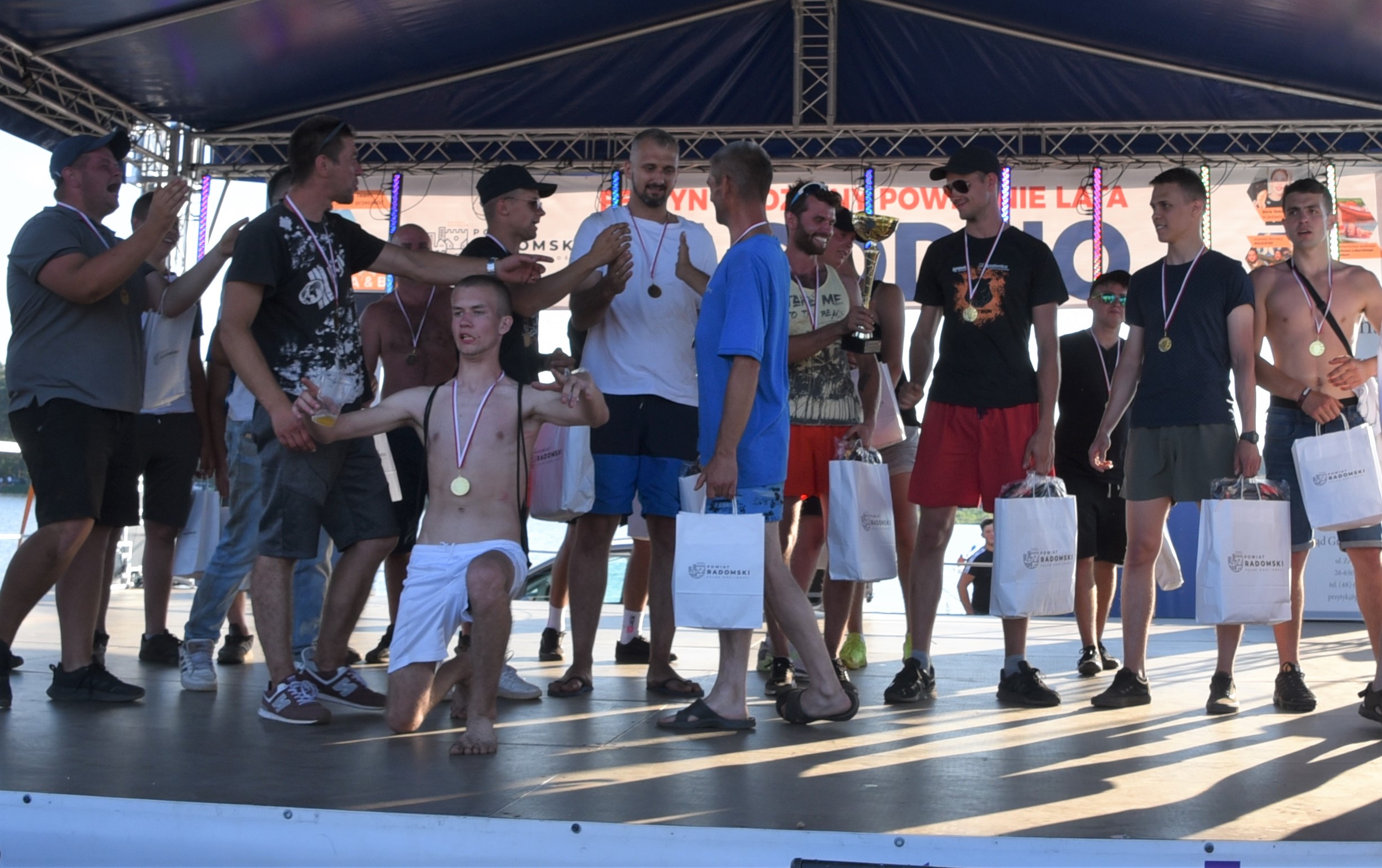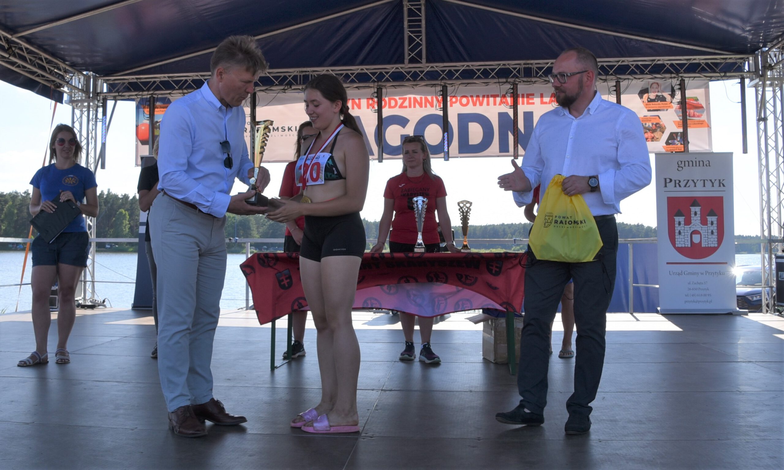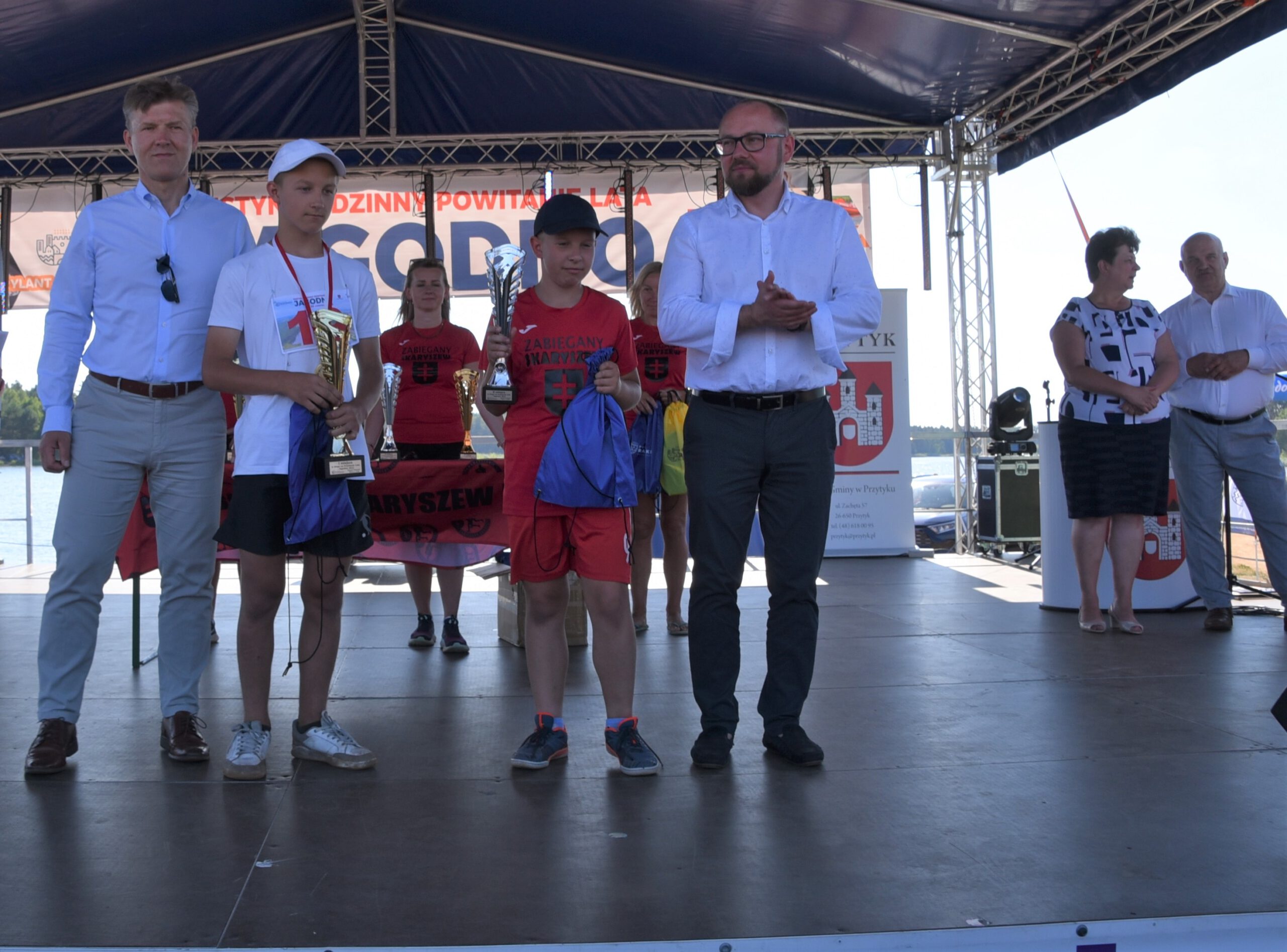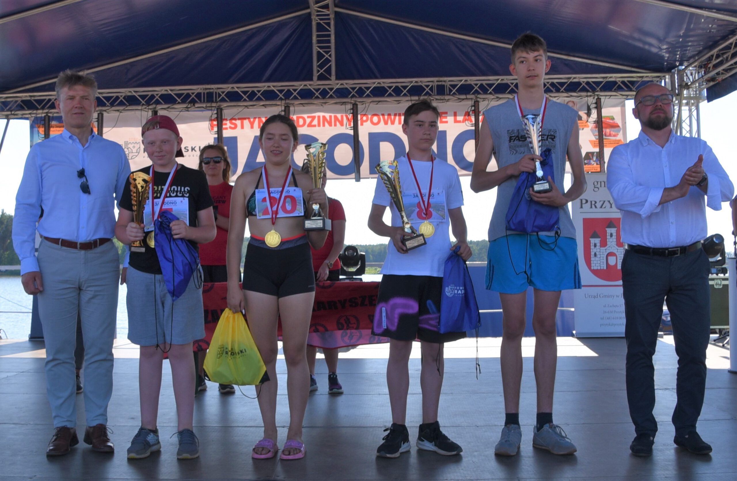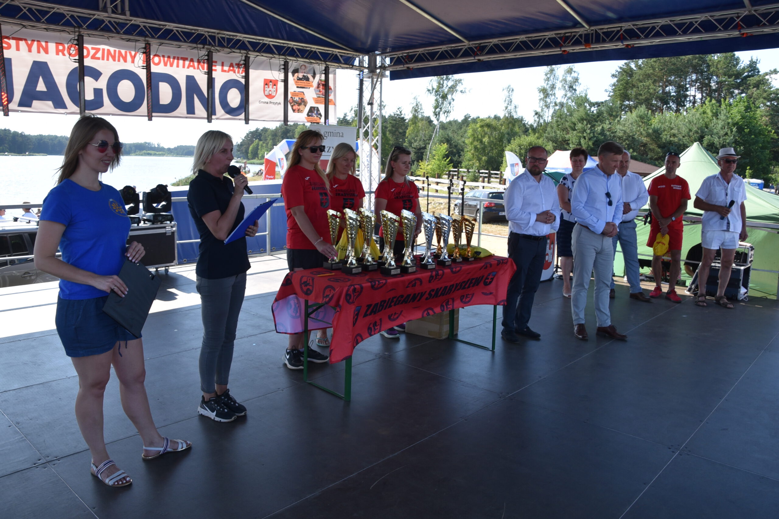 W niedzielę, 26 czerwca nad zalewem Jagodno w gminie Przytyk zaprosiliśmy mieszkańców powiatu na Festyn Rodzinny pod hasłem „Powitanie Lata”. Odbyła się pierwsza edycja zawodów na pneumatycznych torach przeszkód Ninja Jagodno Team, a także przeciąganie liny i wyścigi na ruroskoczkach. Pobiliśmy również wakacyjny rekord Polski w jednoczesnym jedzeniu jagodzianek. Na scenie wystąpiły m.in. formacje radomskiej szkoły tańca Rockstep, a także roztańczone dziewczęta z Centrum Kultury i Biblioteki w Przytyku. Były biegi dzieci, pokazy ratownictwa wodnego i warsztaty pływania na deskach SUP. Na koniec wystąpił Zespół Jagoda & Brylant.