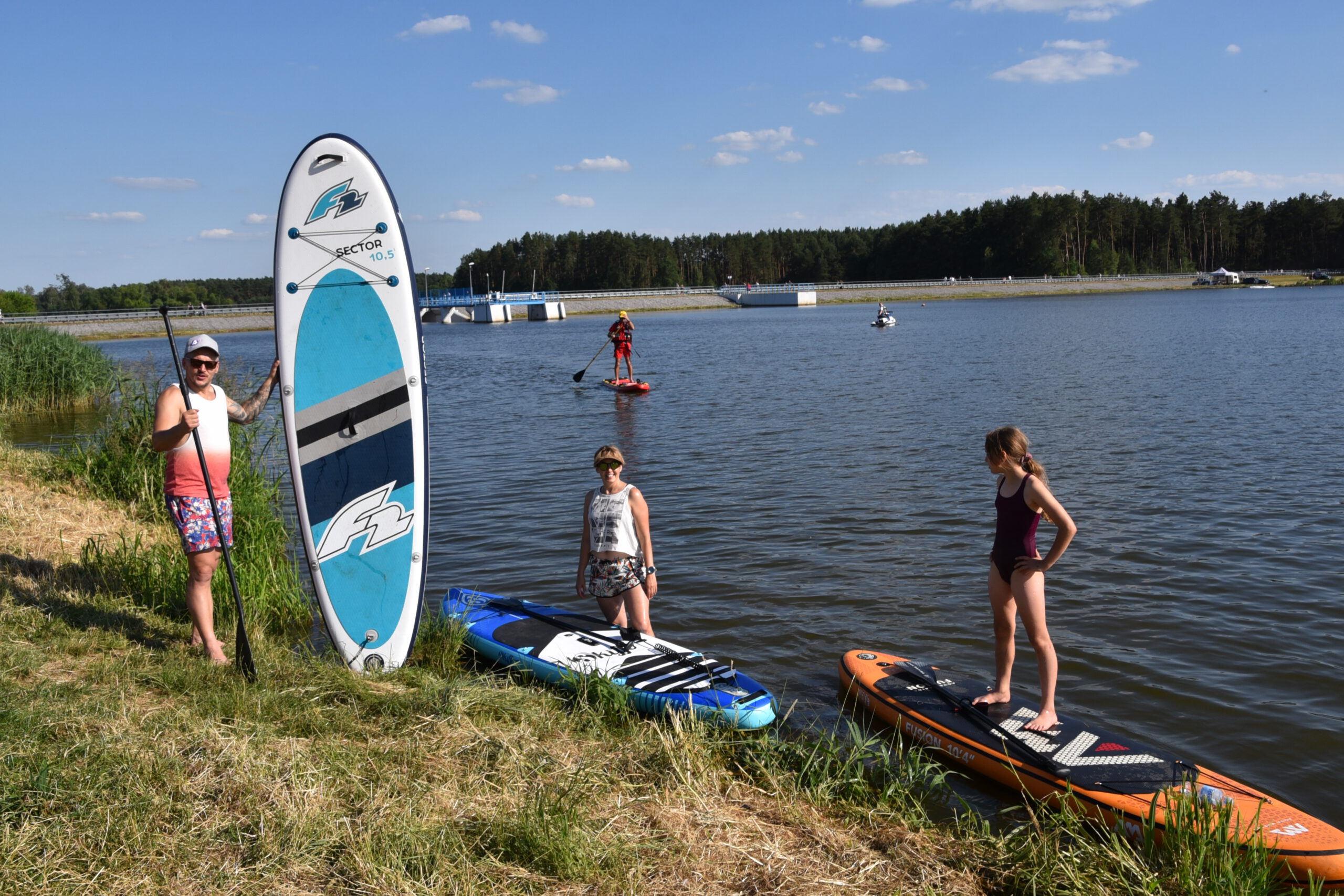Na wodzie można było wziąć udział w warsztatach nauki pływania na deskach SUP. W arkana tego sportu wprowadzała wszystkich chętnych instruktorka pływania na deskach SUP Justyna Prygiel z Klubu SUP Jedlnia-Letnisko.