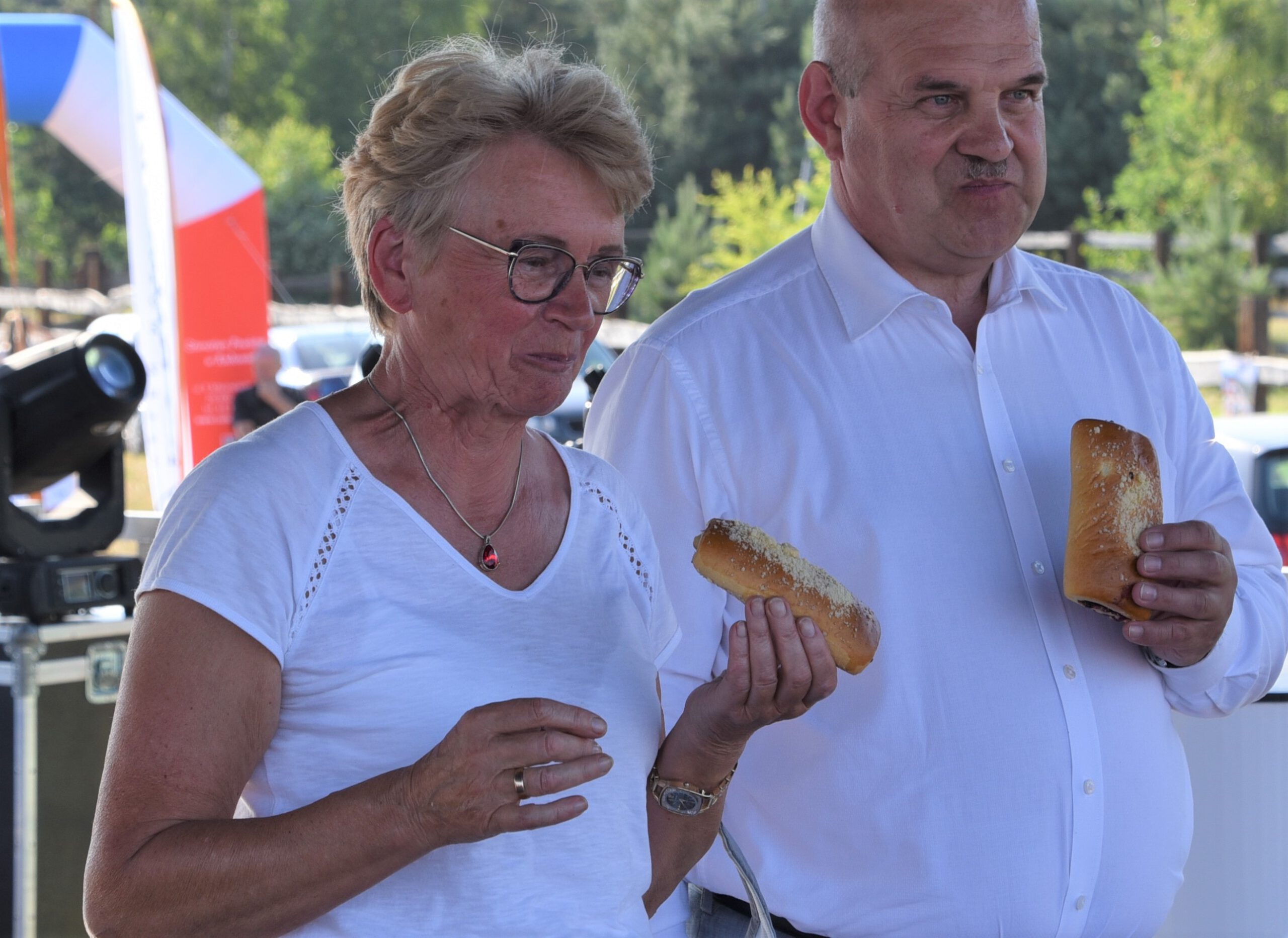 Nad zalewem Jagodno nie mogło zabraknąć przepysznych jagodzianek. Pobiliśmy wakacyjny rekord Polski w liczbie osób jedzących jednocześnie jagodzianki – a było ich dokładnie 100. Smaczne wypieki specjalnie na to wydarzenie przygotowała dla nas Piekarnia Wacyn Ewy Brzezińskiej i Andrzeja Karczewskiego.