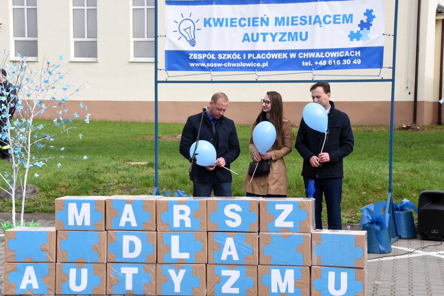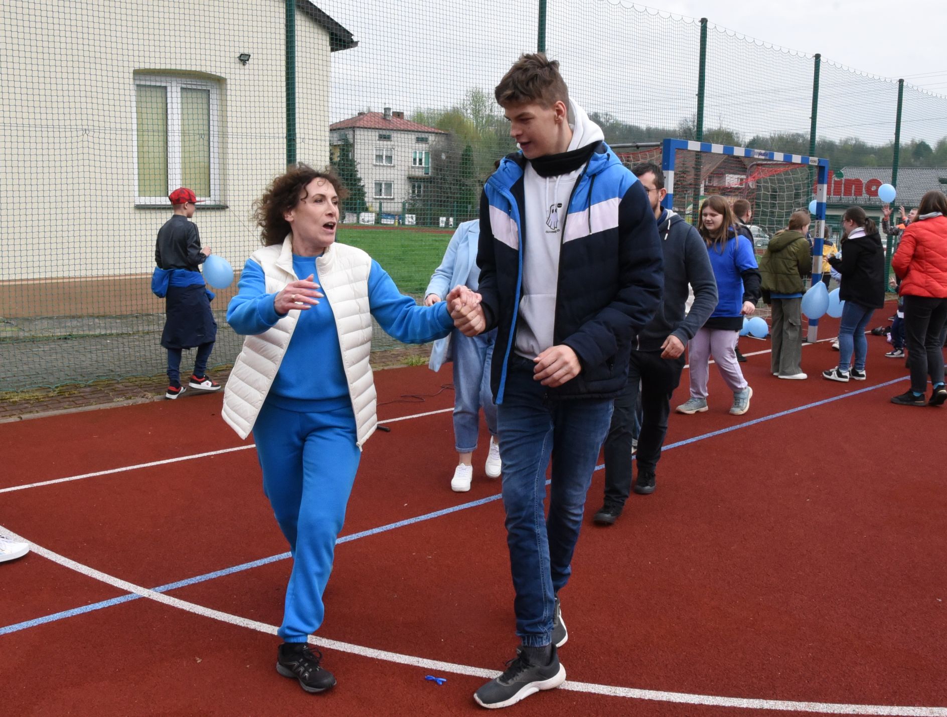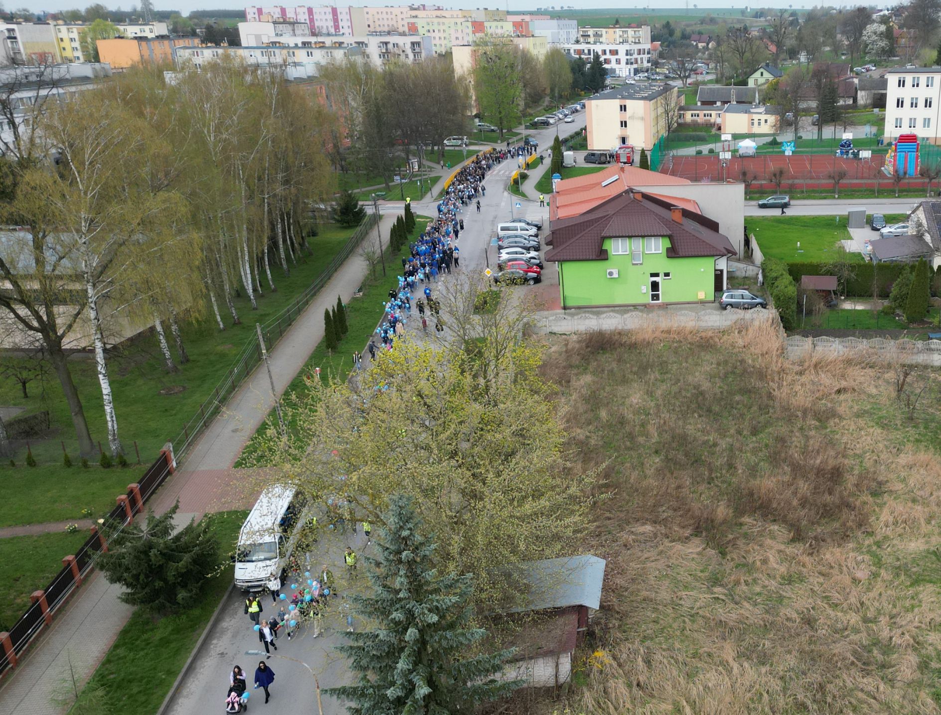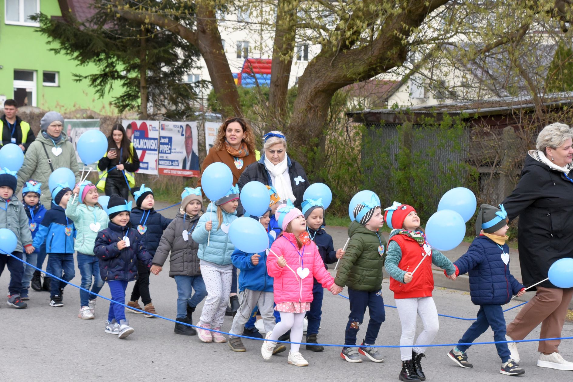 Po części artystycznej na pobliskim boisku, na uczestników czekały niebieskie atrakcje: kolorowe warkoczyki, malowanie twarzy, tańce, dmuchane zjeżdżalnie, spotkania z policjantami i strażakami, którzy prezentowali swój ekwipunek. Krzysztof Kozera wypuścił w niebo dziesiątki błękitnych, symbolicznych baloników, aby podkreślić obchodzony niedawno Dzień Autyzmu.