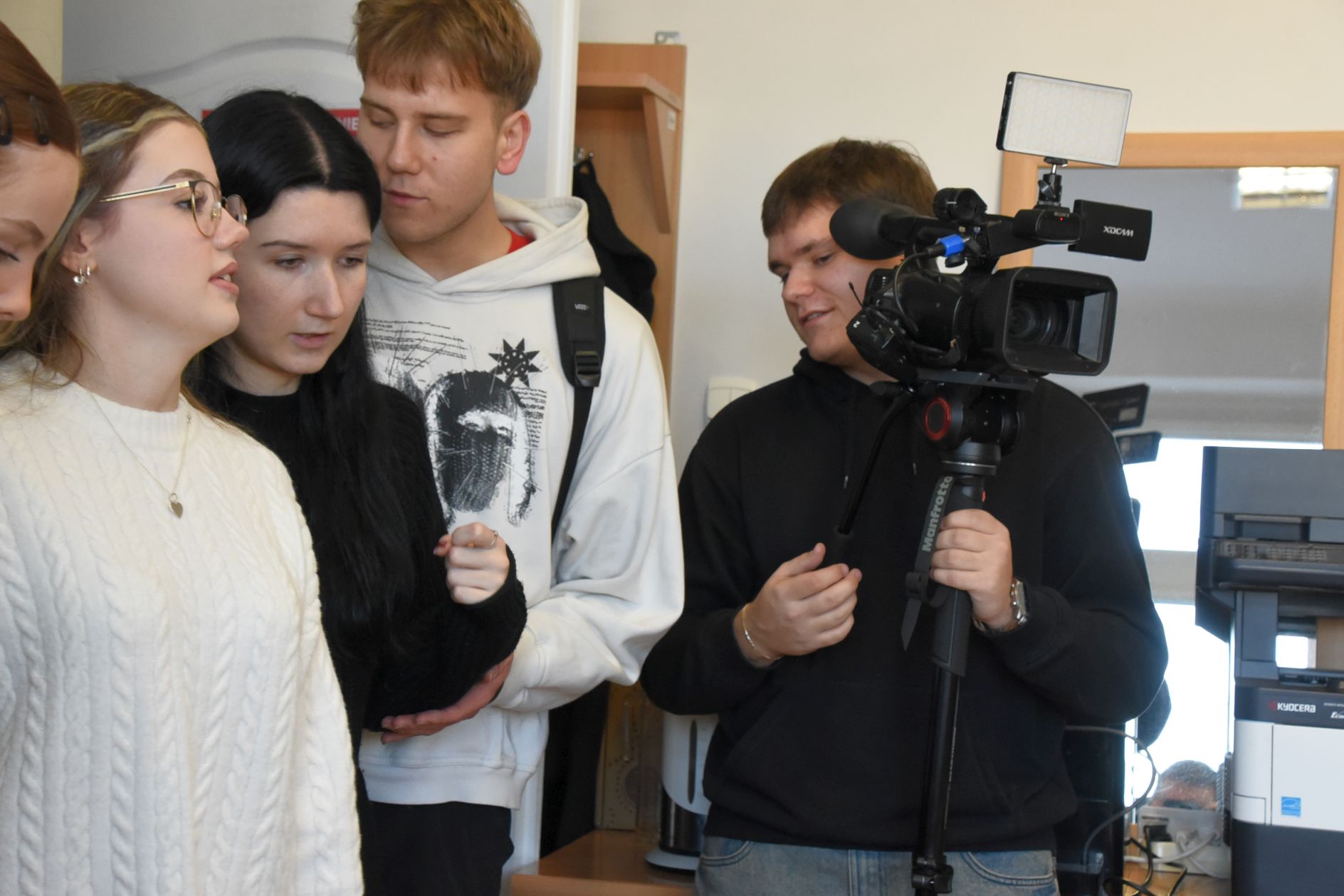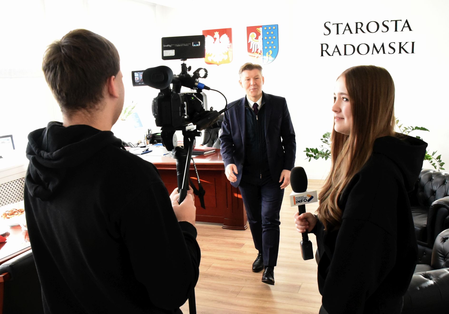 Pionkowscy uczniowie otrzymali z Wydziału Promocji i Rozwoju kamerę wraz mikrofonem. Rejestrując swój autorski film, zapukali do wszystkich wydziałów, gdzie dowiedzieli się jak wygląda codzienna praca urzędników, gdzie załatwiane są poszczególne sprawy. Na koniec wraz z nagraniami odwiedzili nasze studio telewizyjne, gdzie mogli samodzielnie zmontować cały materiał wideo z wizyty. Już niebawem udostępnimy film z wizyty pionkowskich uczniów.