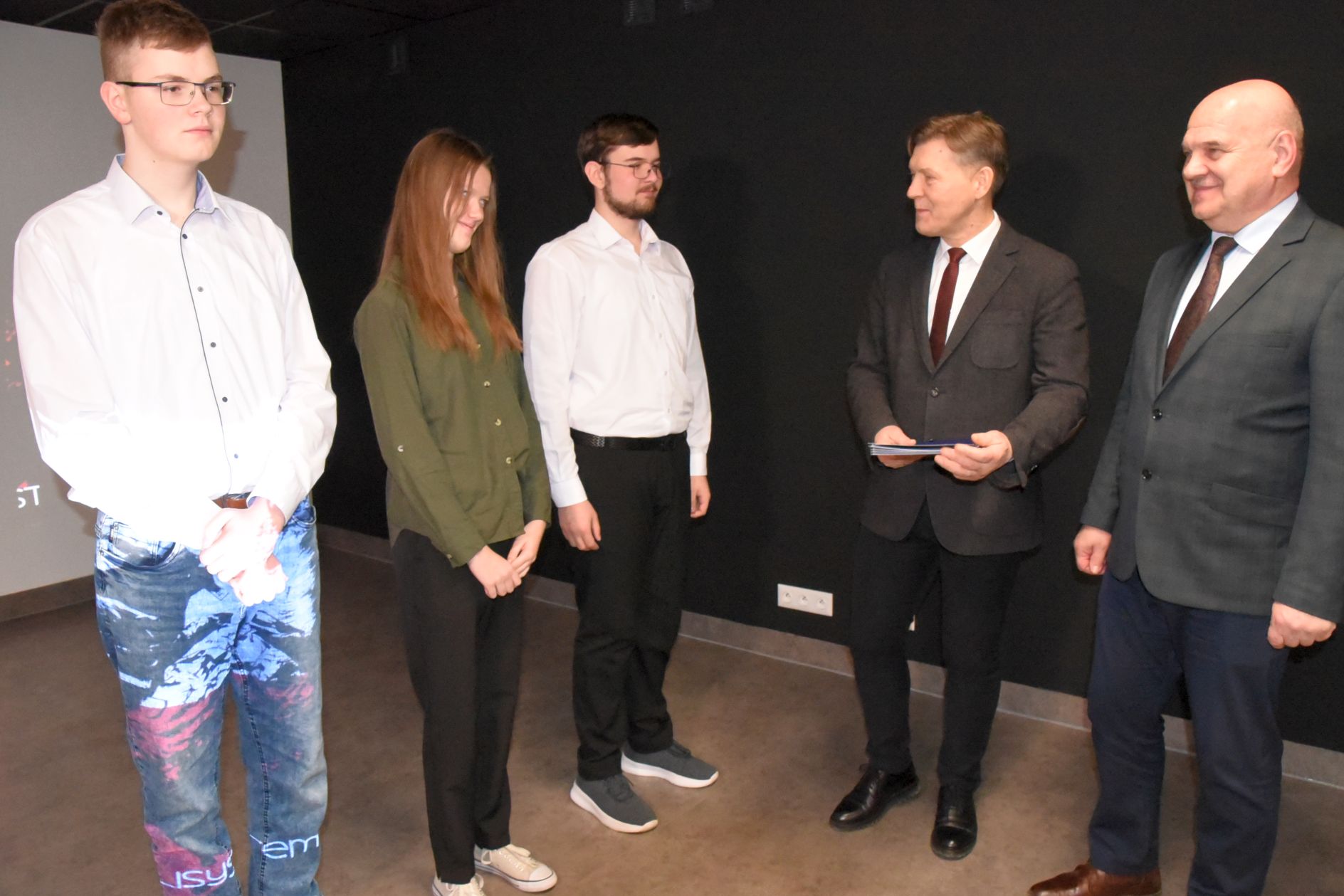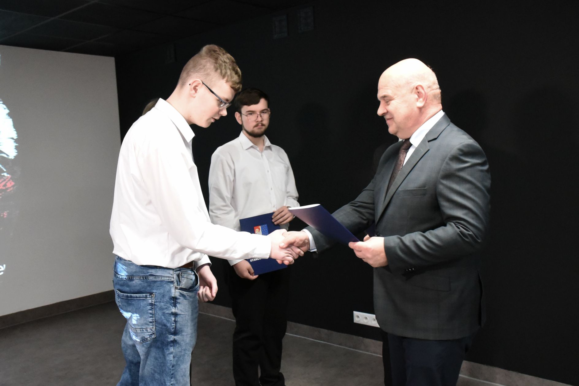 Przy okazji otwarcia strzelnicy, starosta i wicestarosta wręczyli stypendia na okres od lutego do czerwca 2024 roku, które odebrało czworo uczniów technikum: Michał Majchrzyk (kl. V), Bartosz Baran (kl. II), Dominik Kozłowski (kl. V), Weronika Stefankiewicz (kl. III).