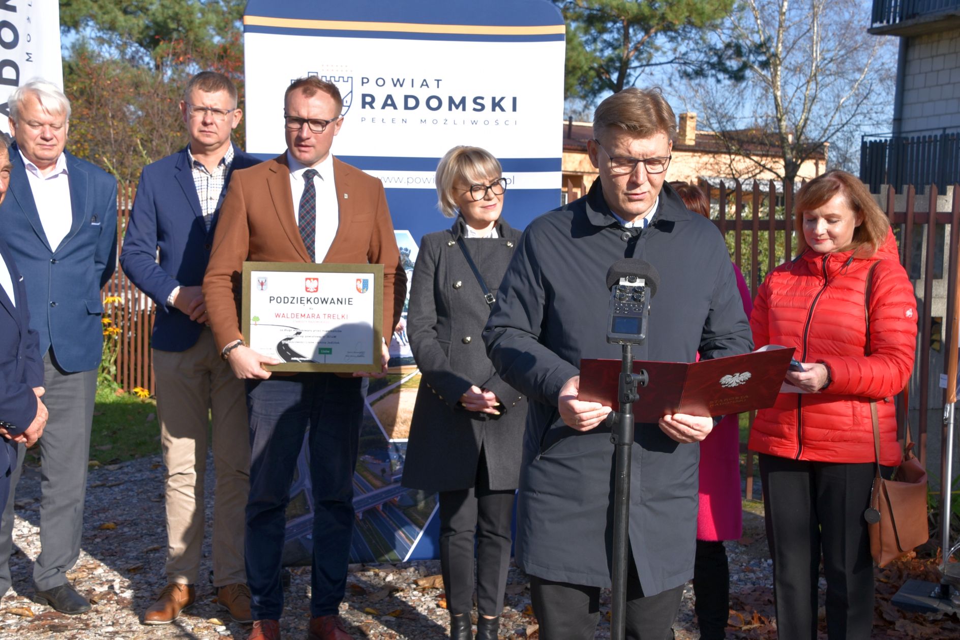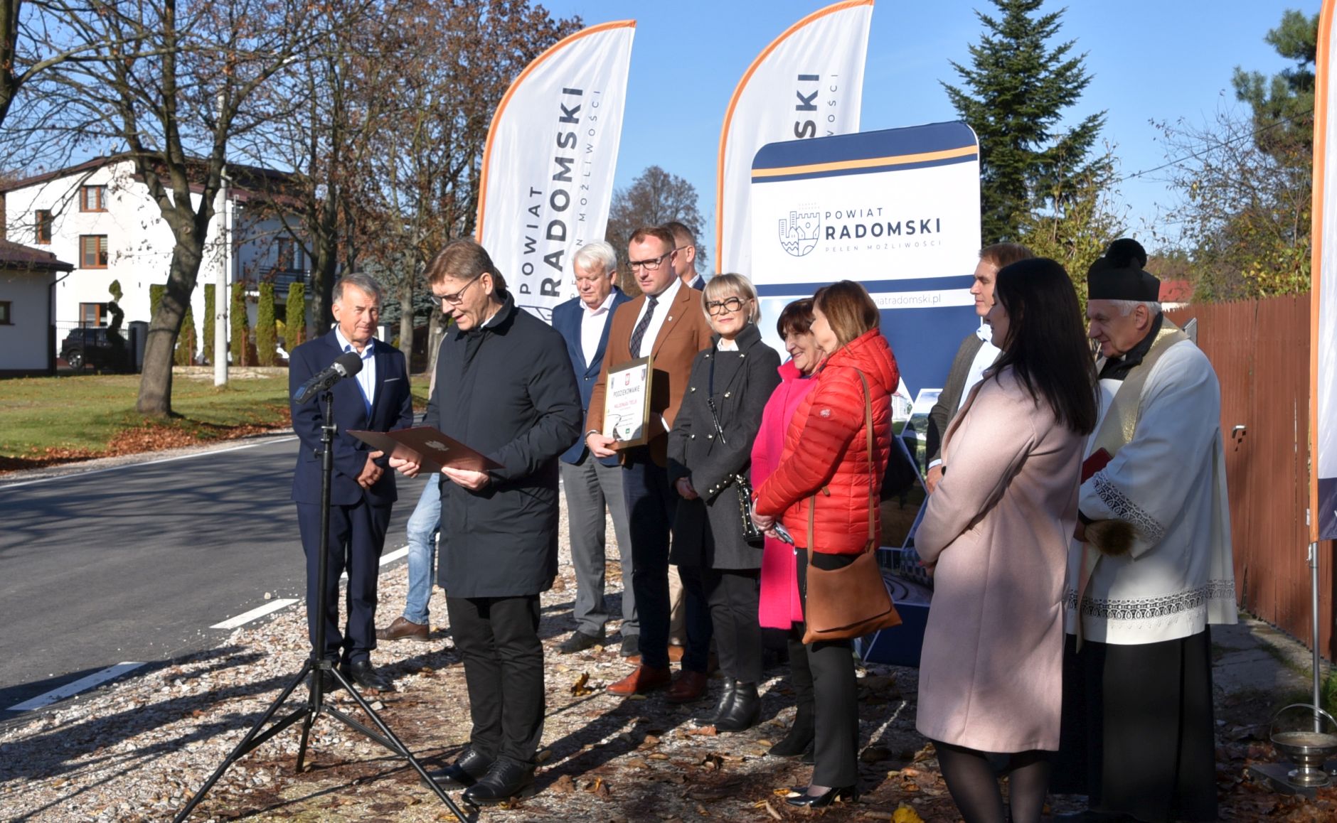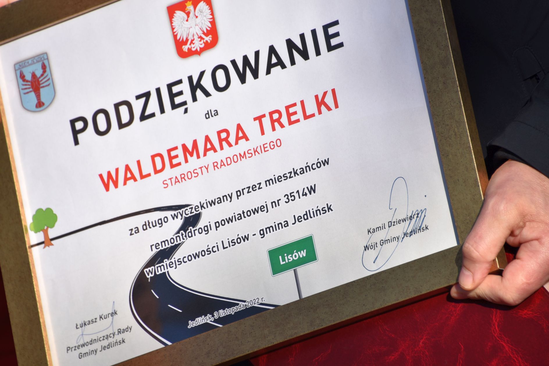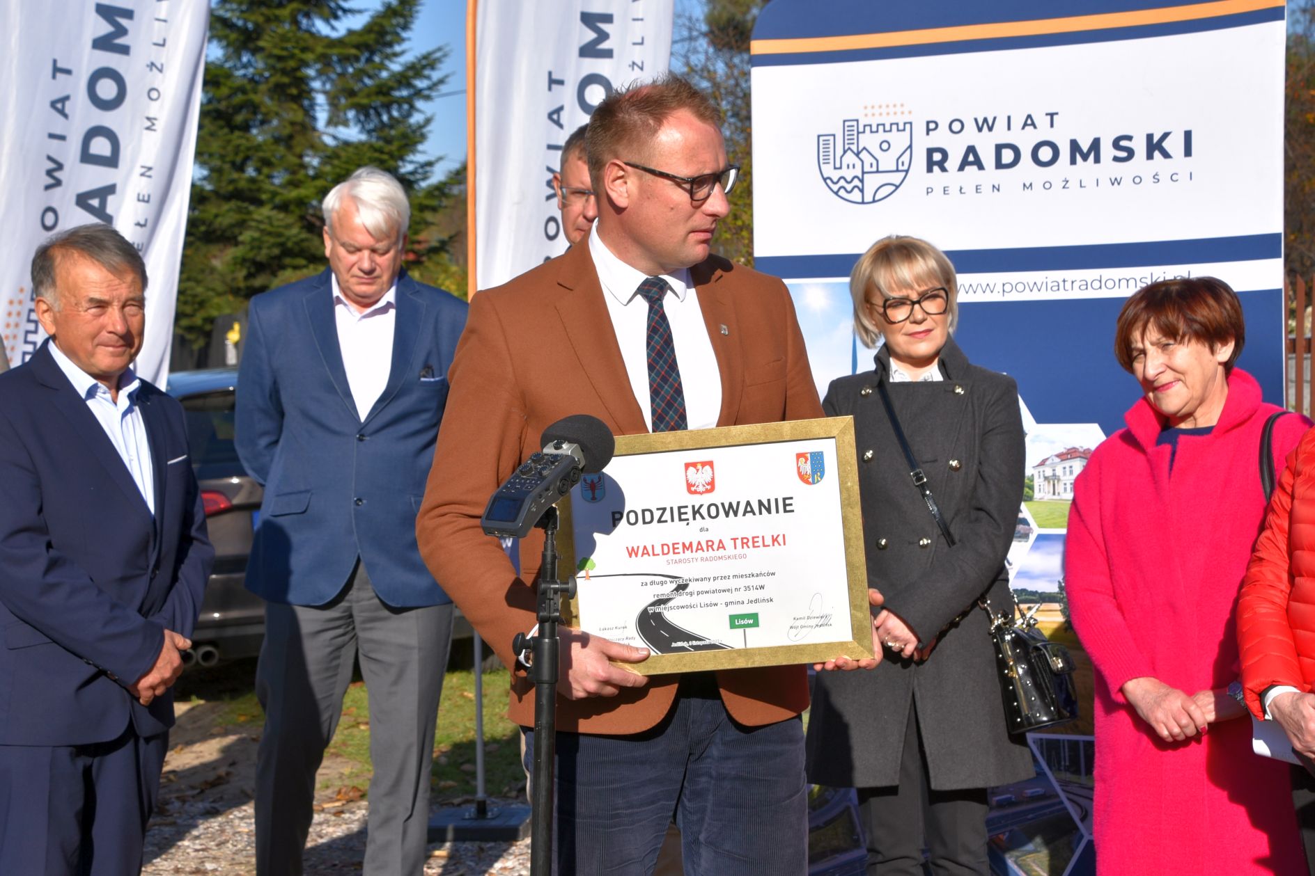 W czwartkowe przedpołudnie, w uroczystym otwarciu wzięli udział między innymi, starosta radomski Waldemar Trelka, a także wójt gminy Jedlińsk Kamil Dziewierz. Nie mogło również zabraknąć przedstawicieli Rady Powiatu, w tym radnych powiatowych Agnieszki Pasek, Mariana Wikło i Teodozji Bień czy radnych Gminy Jedlińsk. Świeżo wyremontowaną drogę poświęcił ksiądz Czesław Sobolewski. proboszcz parafii w Lisowie.