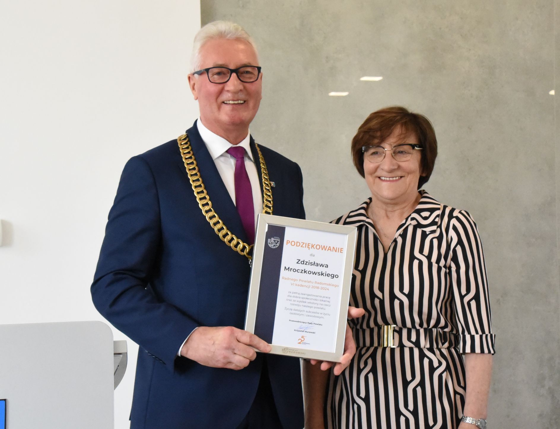 – Szczególne podziękowania kieruję pod adresem pana starosty Waldemara Trelki, który wraz z Zarządem inicjował, a następnie energicznie, konsekwentnie i skutecznie wdrażał liczne działania prorozwojowe, które zaowocowały poprawą jakości życia mieszkańców. Podziękować pragnę również wszystkim pracownikom Starostwa Powiatowego oraz jednostek organizacyjnych Powiatu za efektywną, merytoryczną współpracę, pomoc i życzliwość – dodał wiceprzewodniczący Mroczkowski, składając radnym życzenia dobrego zdrowia, wielu lat życia, doświadczania licznych przejawów wdzięczności, szacunku i sympatii mieszkańców oraz sukcesów w życiu zawodowym i pomyślnej realizacji osobistych planów – dodał wiceprzewodniczący Mroczkowski.