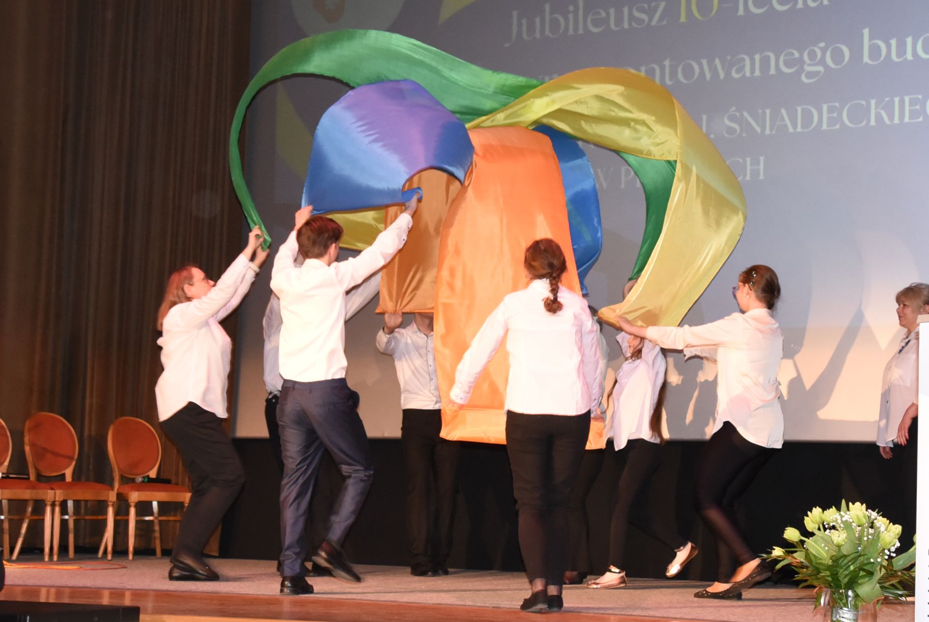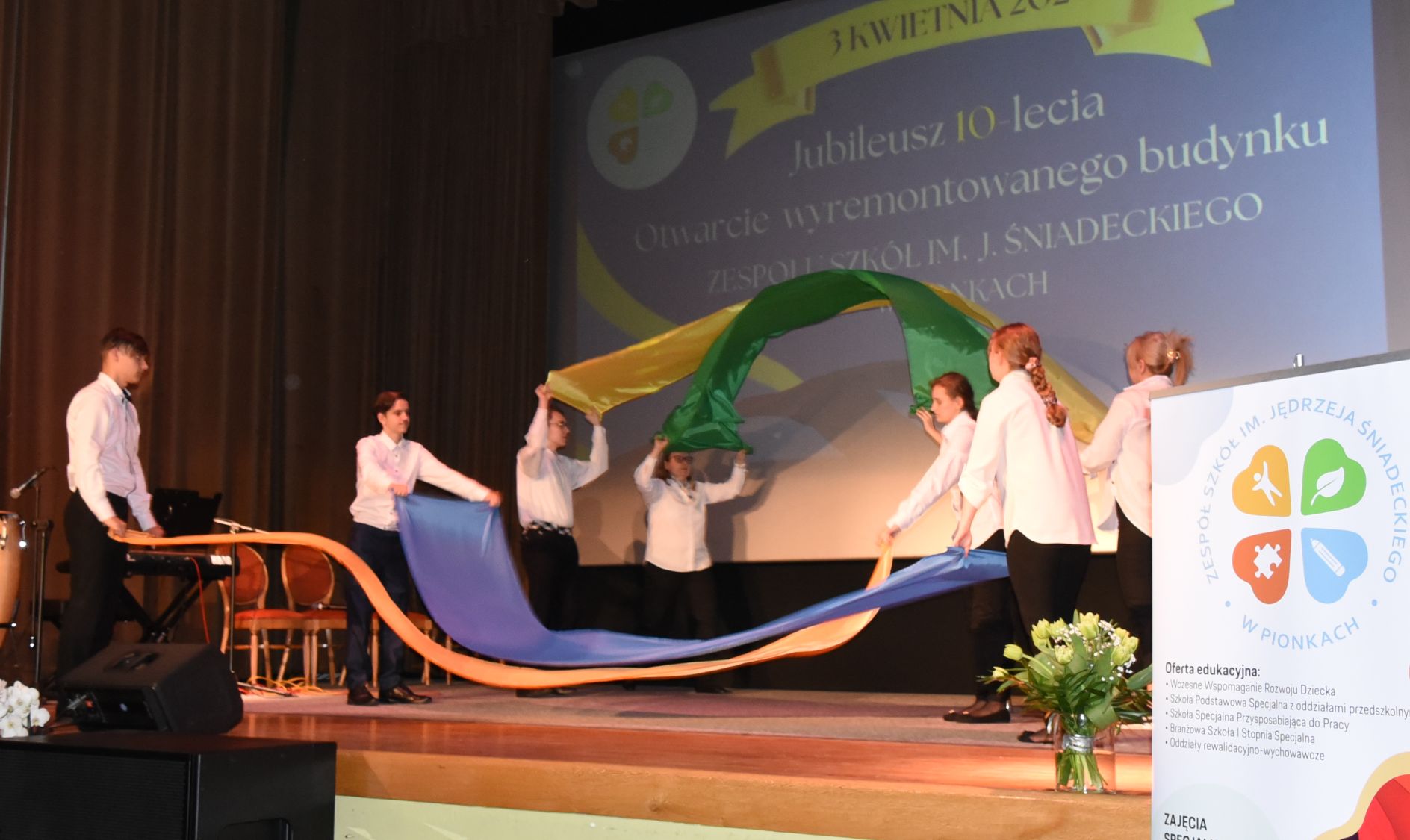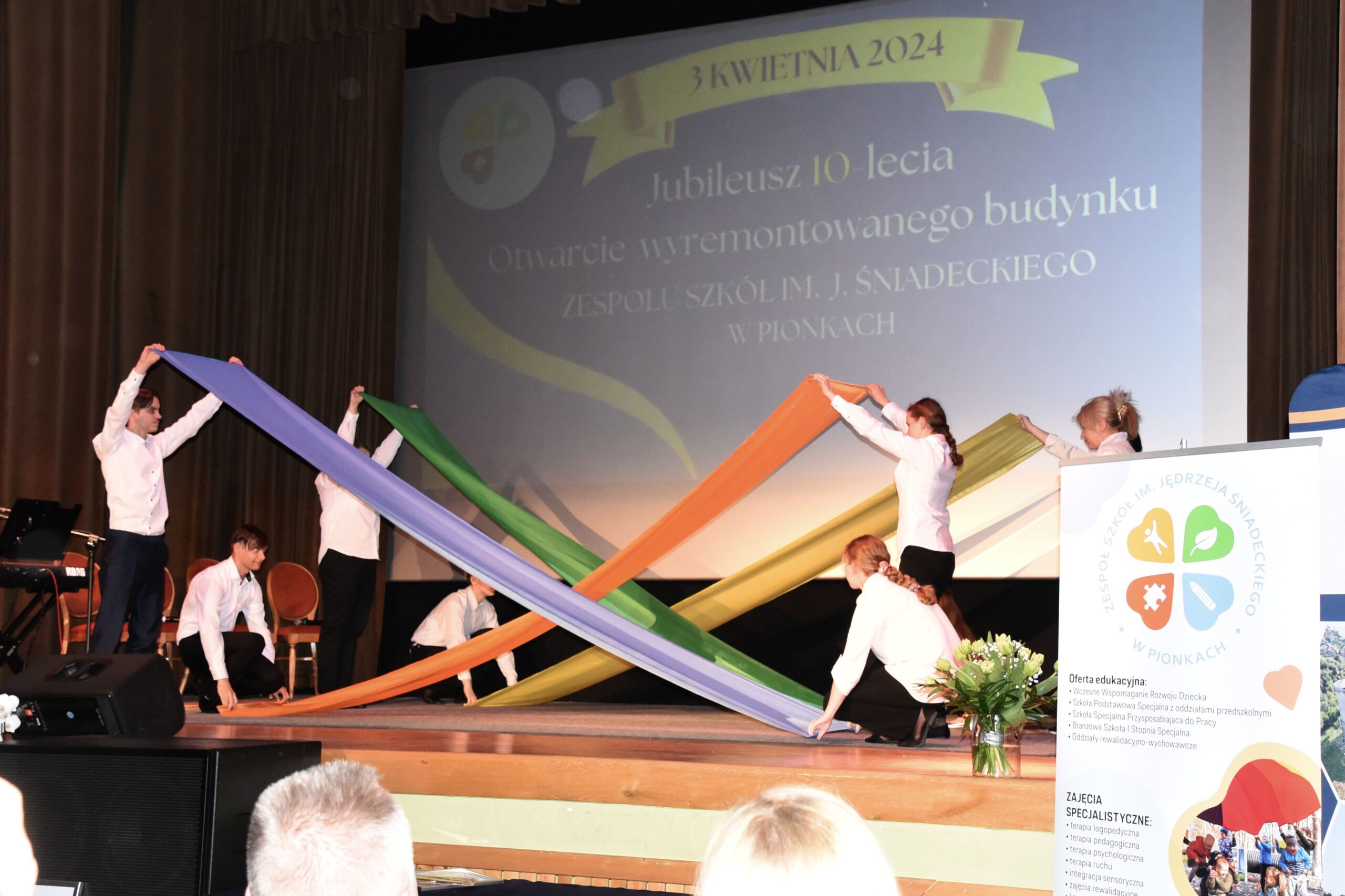 Gala z okazji 10 urodzin szkoły odbyła się w Miejskim Ośrodku Kultury w Pionkach. Były życzenia, gratulacje i podziękowania. Był również piękny program artystyczny przygotowany przez nauczycieli i uczniów.