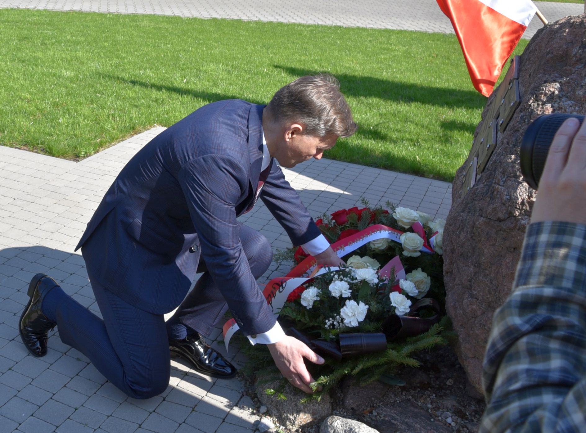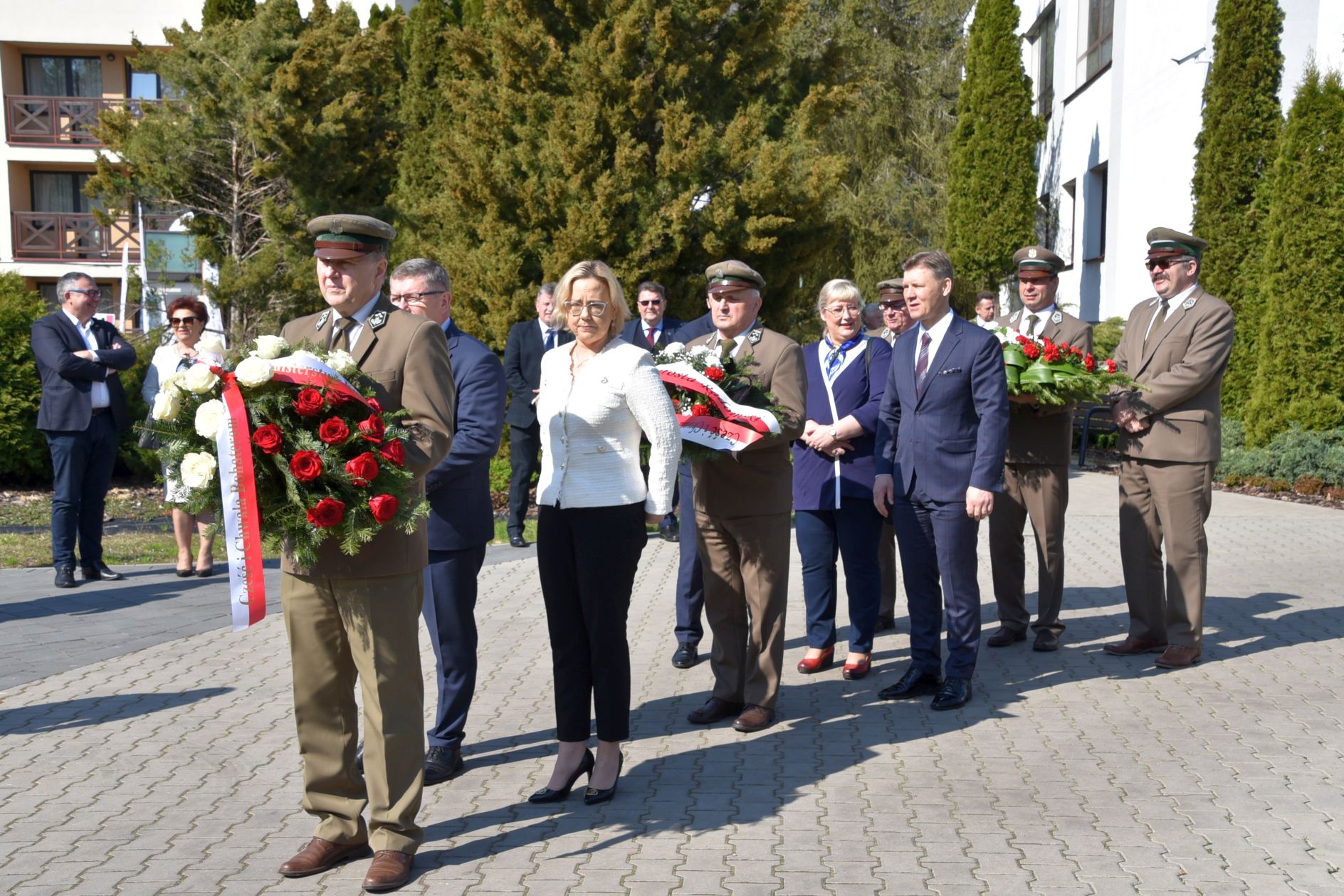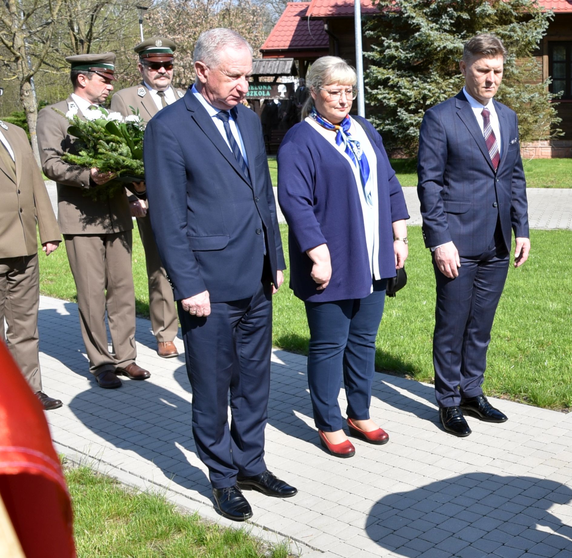 Warto jeszcze zaznaczyć, że przed rozpoczęciem konferencji pani minister, starosta radomski i przysuski, jak również zaproszeni goście złożyli kwiaty pod kamieniem pamiątkowym, poświęconym leśnikom pomordowanym w Katyniu. Kamień ten znajduje się na placu przed budynkiem Ośrodka.