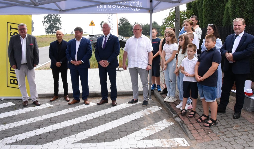 W uroczystości otwarcia drogi uczestniczyli także Zdzisław Mroczkowski, wiceprzewodniczący Rady Powiatu, Jan Kowalczyk, radny powiatu, Julian Karpiński, sołtys wsi Dzierzkówek Stary oraz dzieci i młodzież uczęszczająca do wspomnianej szkoły podstawowej.