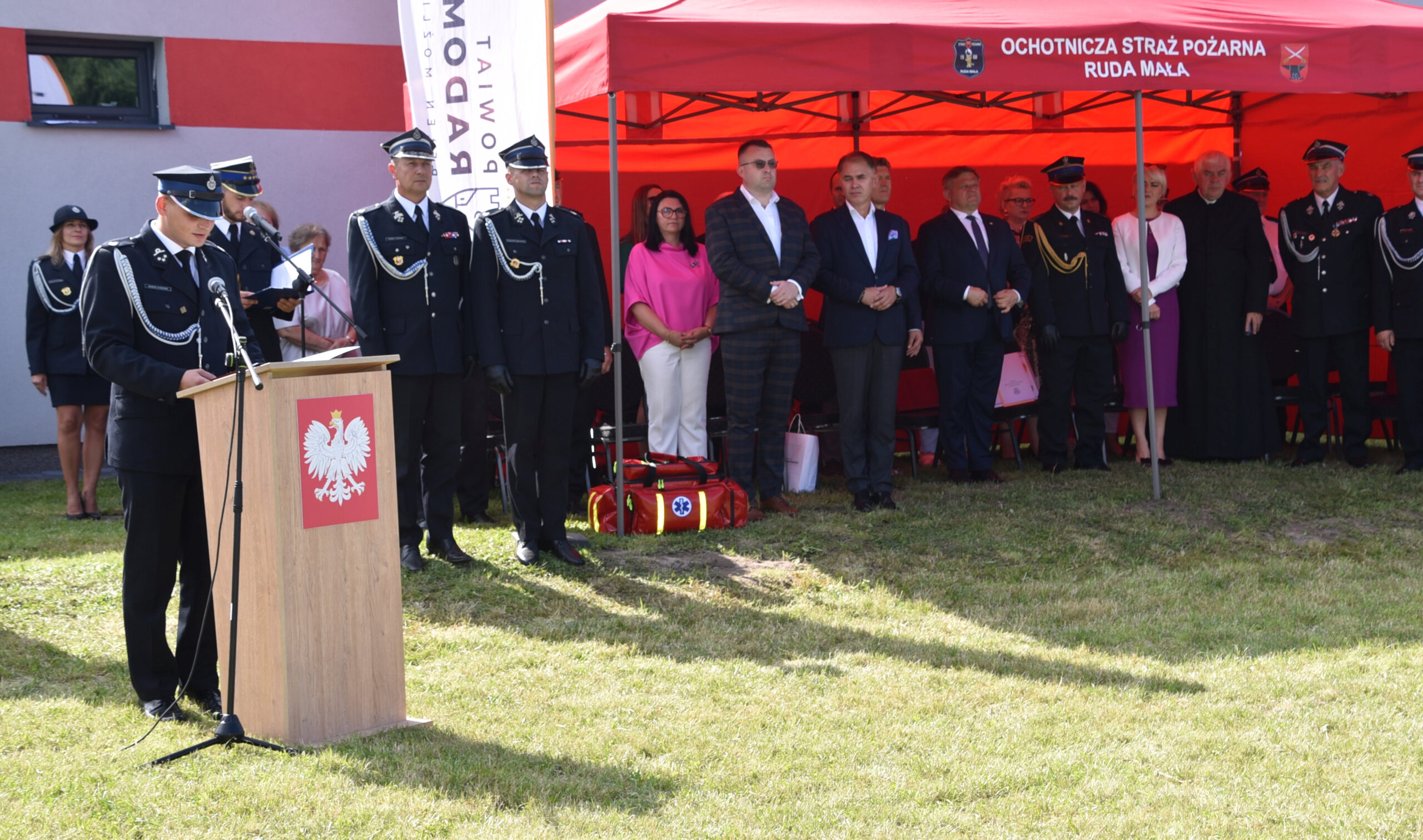 Uroczystość rozpoczęła się o godz. 13 Mszą świętą w intencji strażaków, podczas której poświęcono sztandar OSP Ruda Mała w kościele św. Wojciecha w Kowali. Następnie odbył się uroczysty apel połączony z nadaniem sztandaru oraz wręczeniem medali i odznaczeń z udziałem m.in. wiceministra obrony narodowej Wojciecha Skurkiewicza oraz starosty radomskiego Waldemara Trelki.