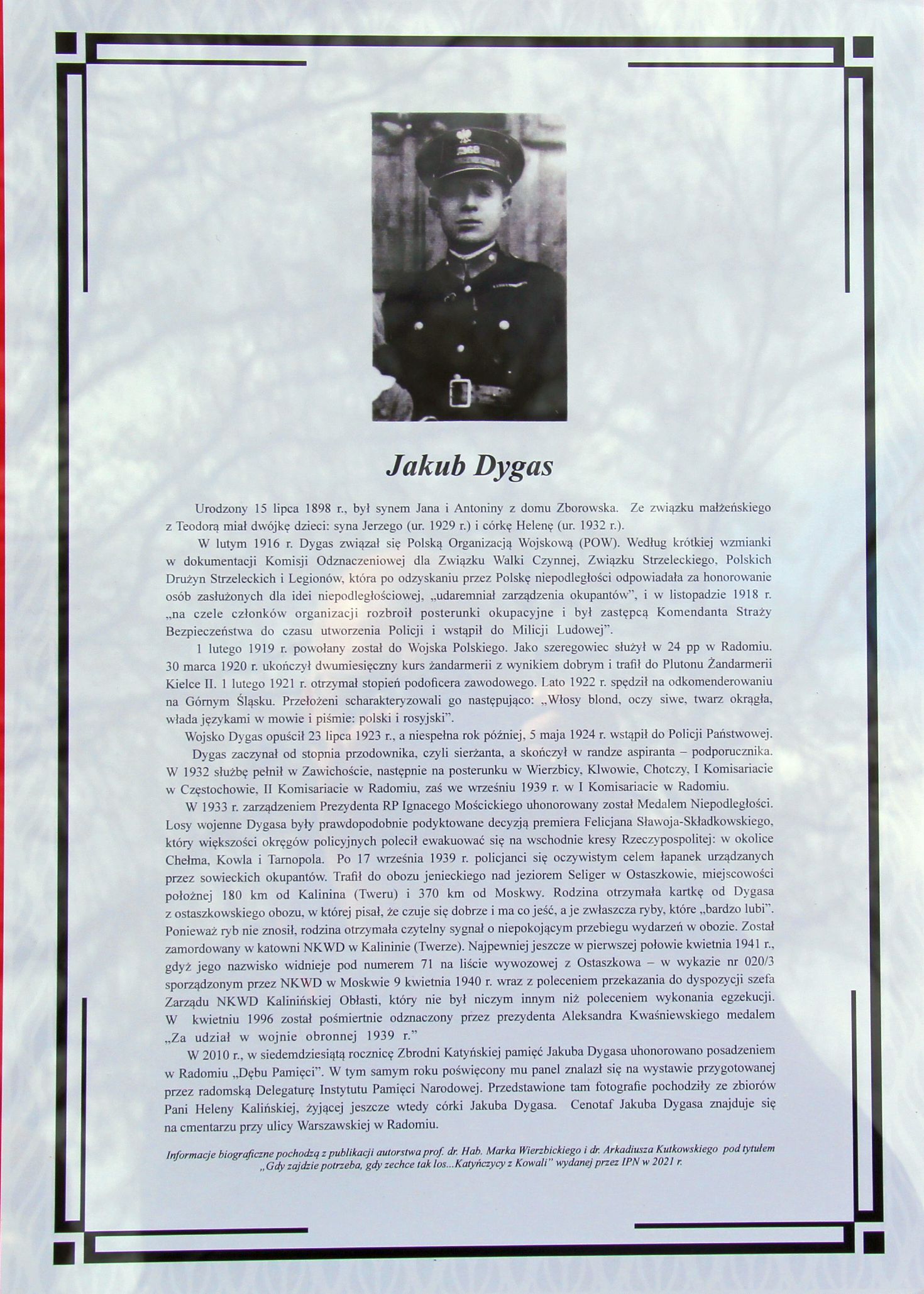 W niedzielę, 10 kwietnia w Kosowie w gminie Kowala odbyły się Obchody Dnia Pamięci Ofiar Zbrodni Katyńskiej. Odsłonięto pomnik, poświęcony pamięci dwóch mieszkańców tej ziemi: policjanta Jakuba Dygasa oraz ziemianina Stefana Zbigniewa Czarnieckiego, zamordowanych w 1940 roku przez Sowietów. Gospodarzami uroczystości były władze samorządowe gminy Kowala, a samo wydarzenie miało rangę powiatową. Wśród gości był m.in. Waldemar Trelka – starosta radomski, który za opiekę nad miejscami pamięci narodowej odznaczył rekonstruktorów, odtwarzających przedwojenną Policję Państwową odznakami honorowymi Polskiego Czarnego Krzyża.