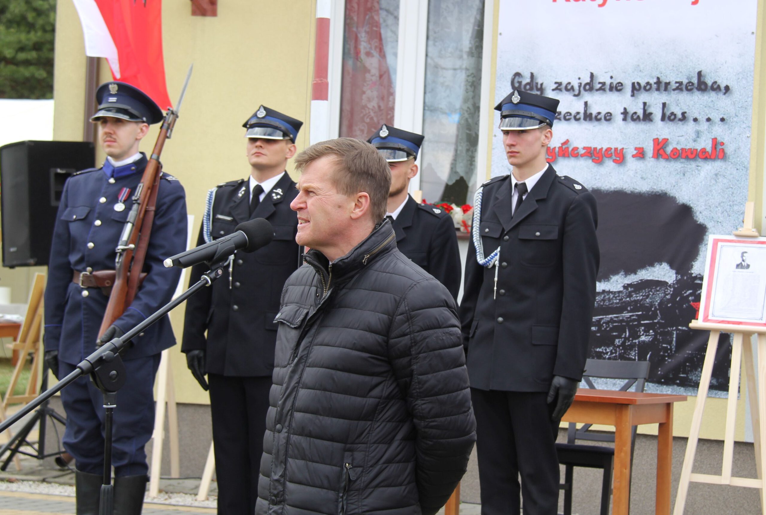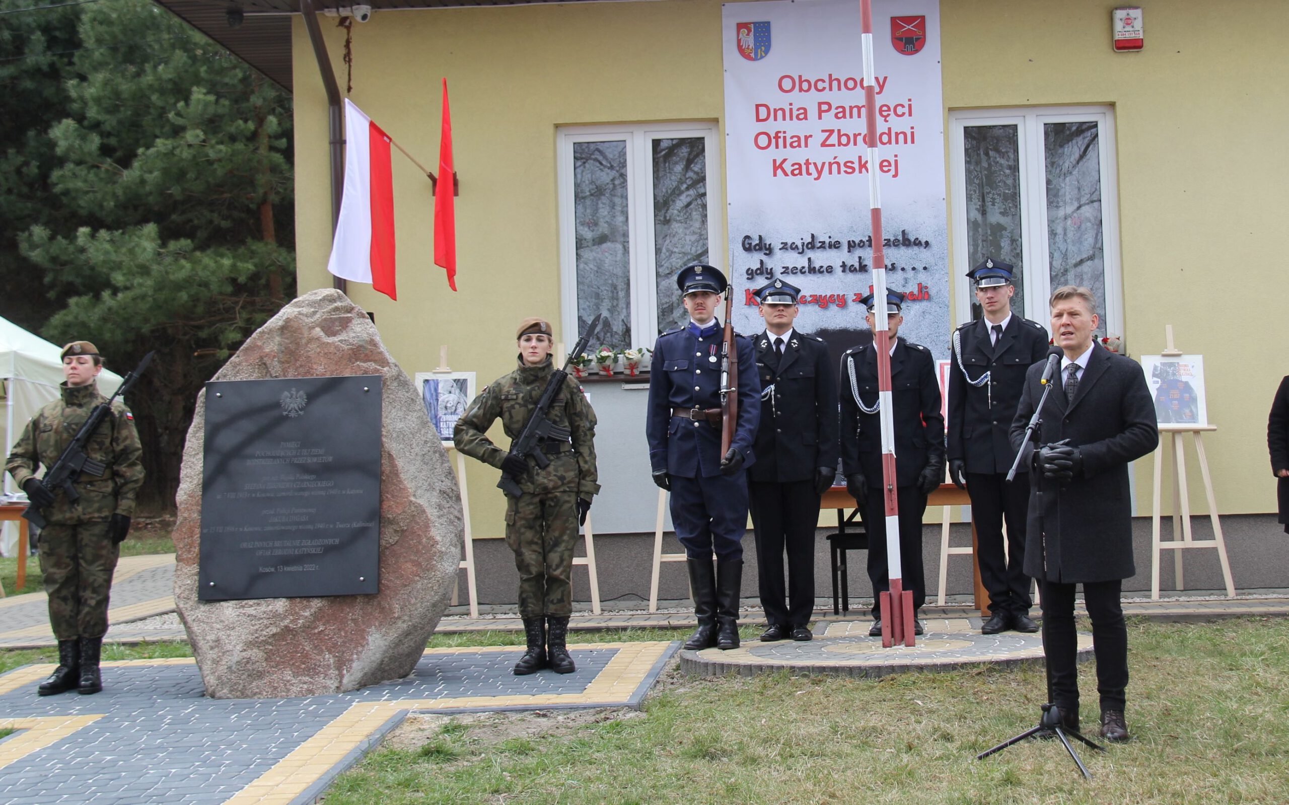– Uroczystości w Kosowie, związane z rocznicą Zbrodni Katyńskiej, nierozerwalnie wiążącej się z datą 10 kwietnia tragedii smoleńskiej. W tle jest wciąż to samo państwo, które odmawia innym prawa do wolności i niepodległości, które wciąż popełnia te same zbrodnie i które nadal realizuje ludobójstwo – mówi starosta Waldemar Trelka, dziękując radnej gminnej Agacie Kicior oraz lokalnej społeczności za inicjatywę. – Dziękuje władzom gminy Kowala i panu wójtowi Dariuszowi Bulskiemu za przygotowanie miejsca pod pamiątkowy kamień oraz całej uroczystości. Podziękowania należą się również rodzinom pomordowanych za dążenie do prawdy i kultywowanie pamięci o przodkach. Dziękuję wszystkim, którzy zadbali o odpowiednią rangę tej uroczystości i cieszę się, że w naszym powiecie jest kolejne miejsce pamięci narodowej – dodał starosta radomski.