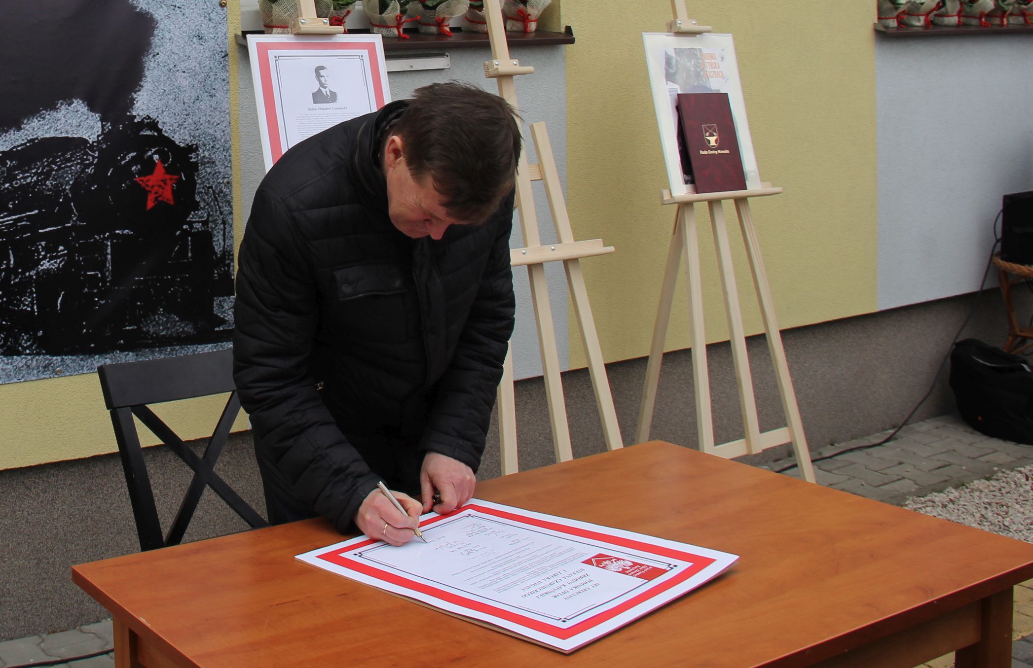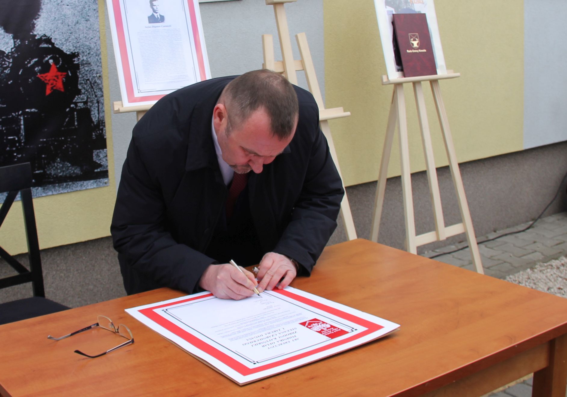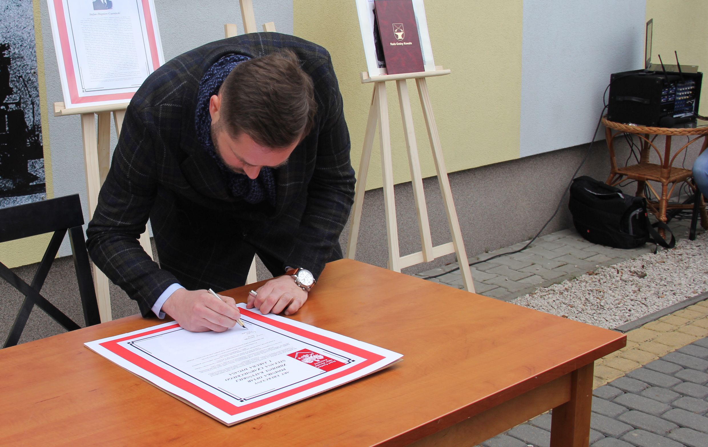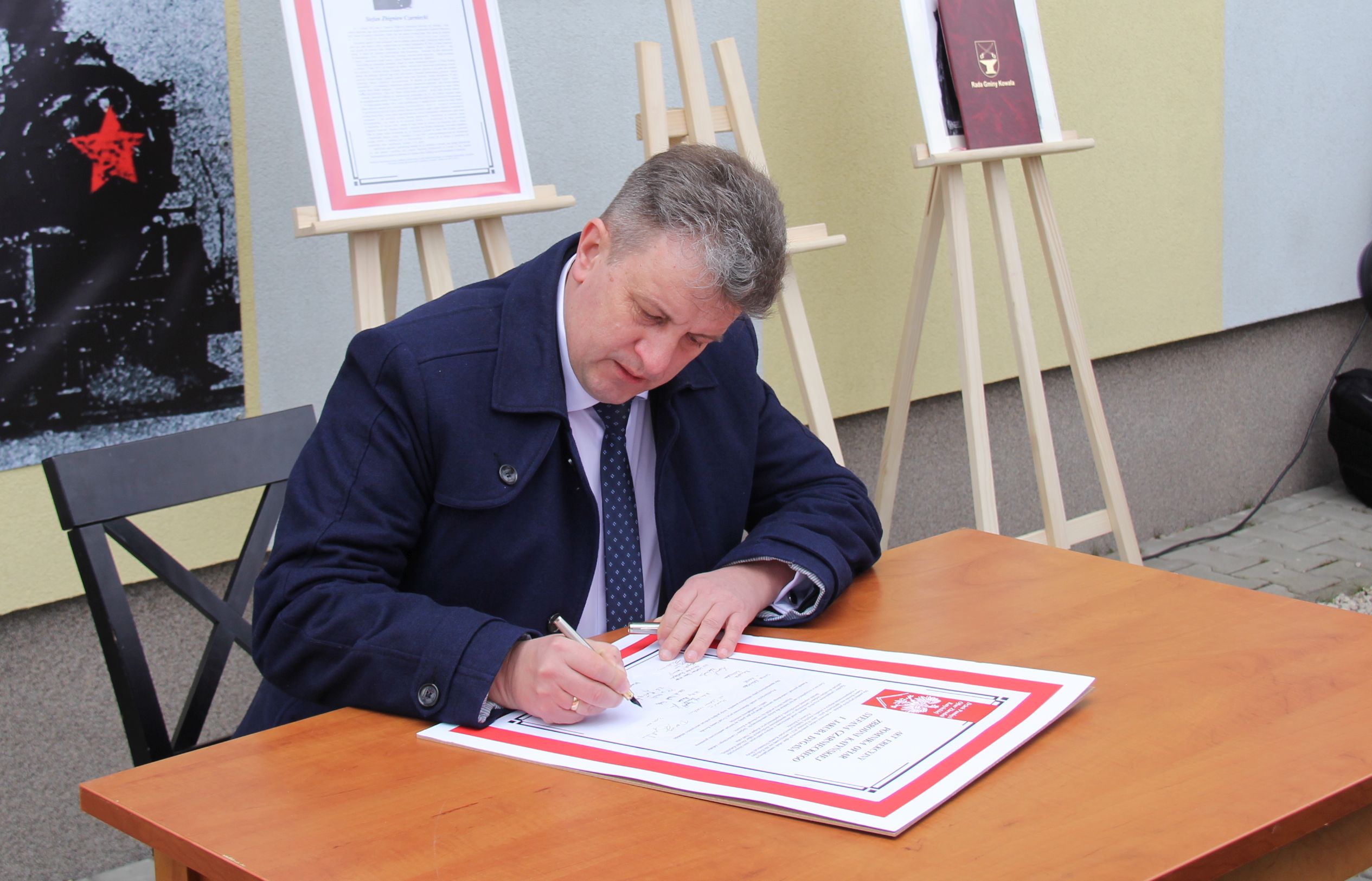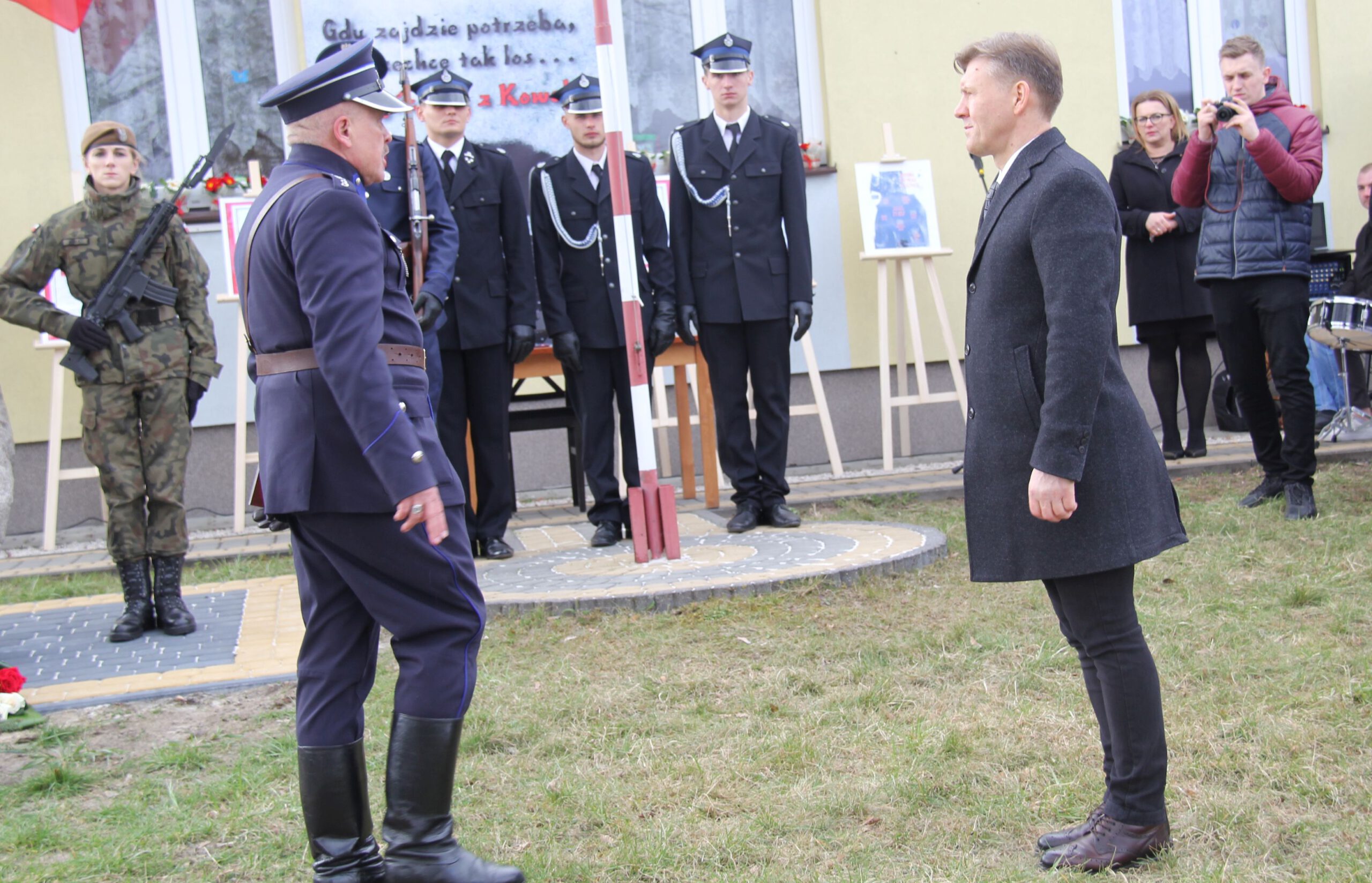 Głos zabrali również prof. Marek Wierzbicki, reprezentujący dr. Roberta Derewendę, dyrektora IPN w Lublinie oraz Dariusz Chruślak, przewodniczący Rady Gminy w Kowali. Następnie goście honorowi uroczystości złożyli podpisy pod aktem erekcyjnym pomnika, po czym nastąpiło jego odsłonięcie oraz poświęcenie przez księdza proboszcza Piotra Borciucha. W krótkim przemówieniu przedstawicielka rodziny Jakuba Dygasa, Iwona Kalińska – Karaś podziękowała wszystkim, którzy przyczynili się do powstania pomnika, a następnie wraz z bliskimi złożyła pod nim pierwszą wiązankę kwiatów.