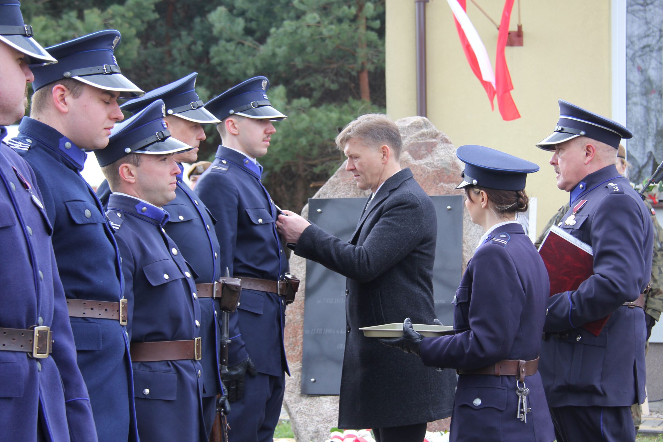Na zakończenie oficjalnej części uroczystości nastąpiła dekoracja członków Grupy Rekonstrukcji Historycznej III Okręgu Policji Państwowej – Komisariat w Radomiu. Jej założyciel Paweł Łuk – Murawski poinformował zebranych, że otrzymali oni odznaki honorowe Polskiego Czarnego Krzyża, przyznawane za opiekę nad miejscami pamięci narodowej. Dekoracji dokonał starosta Waldemar Trelka, przypinając medale do mundurów przedwojennej Policji Państwowej, które noszą rekonstruktorzy.