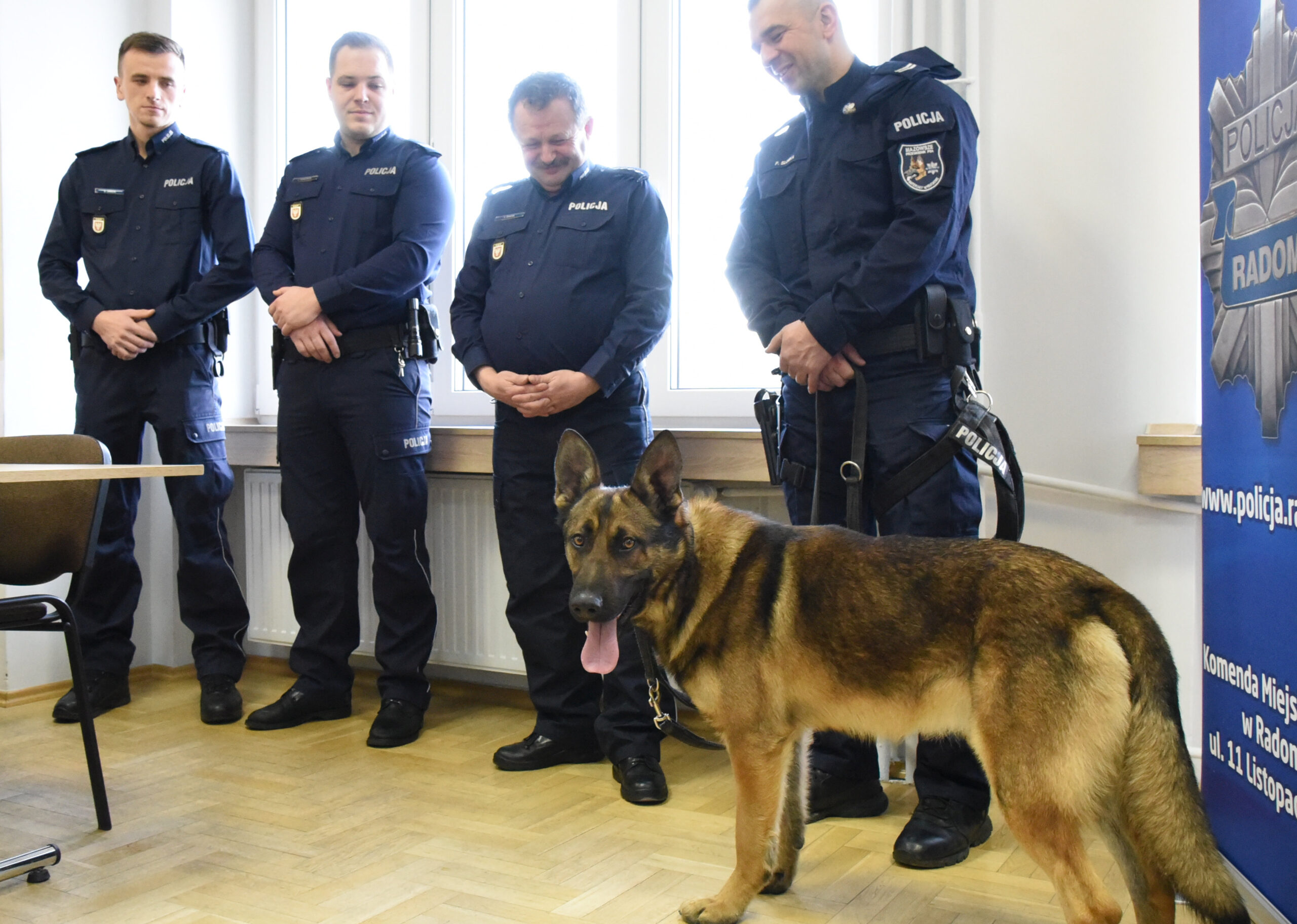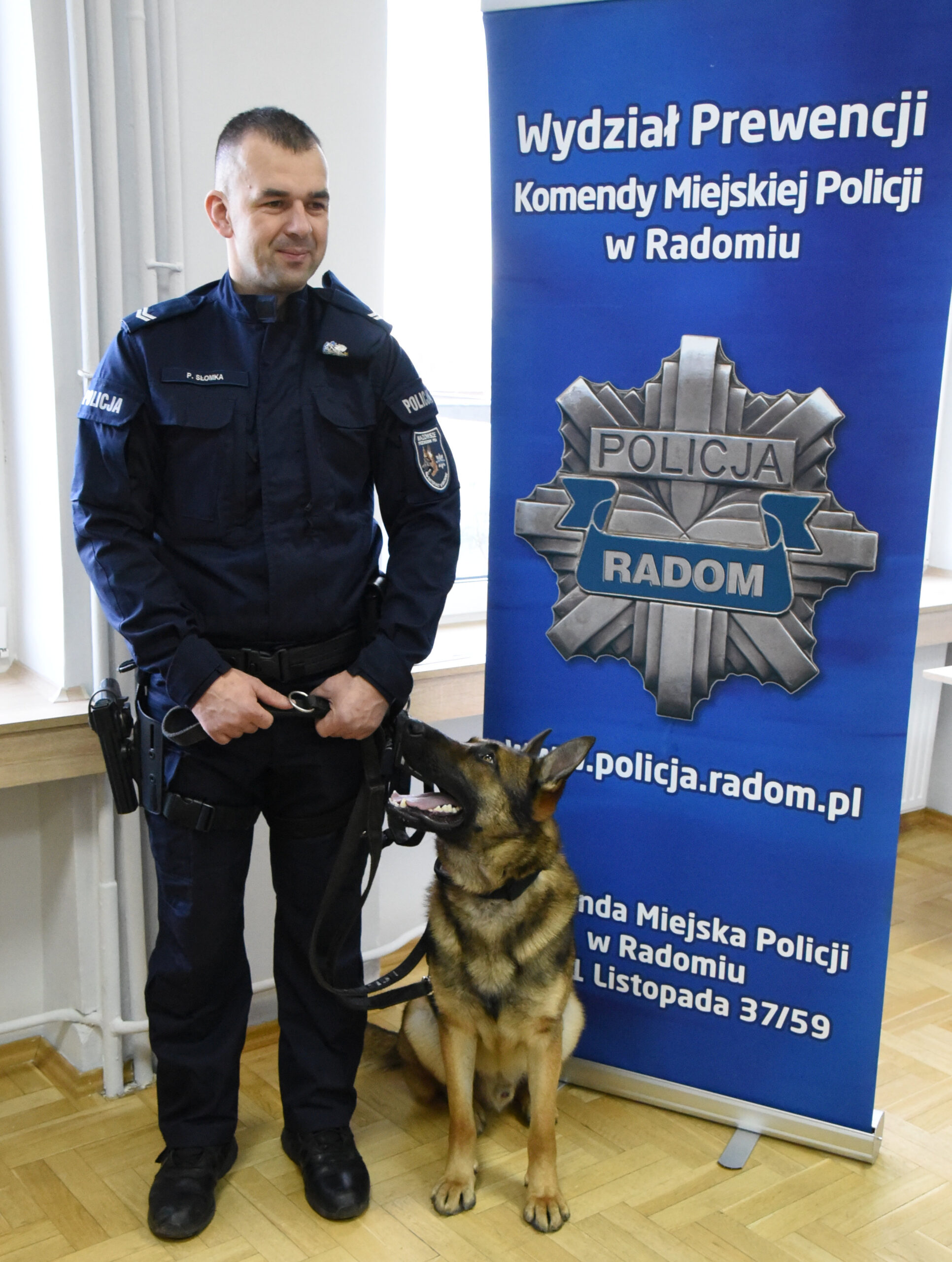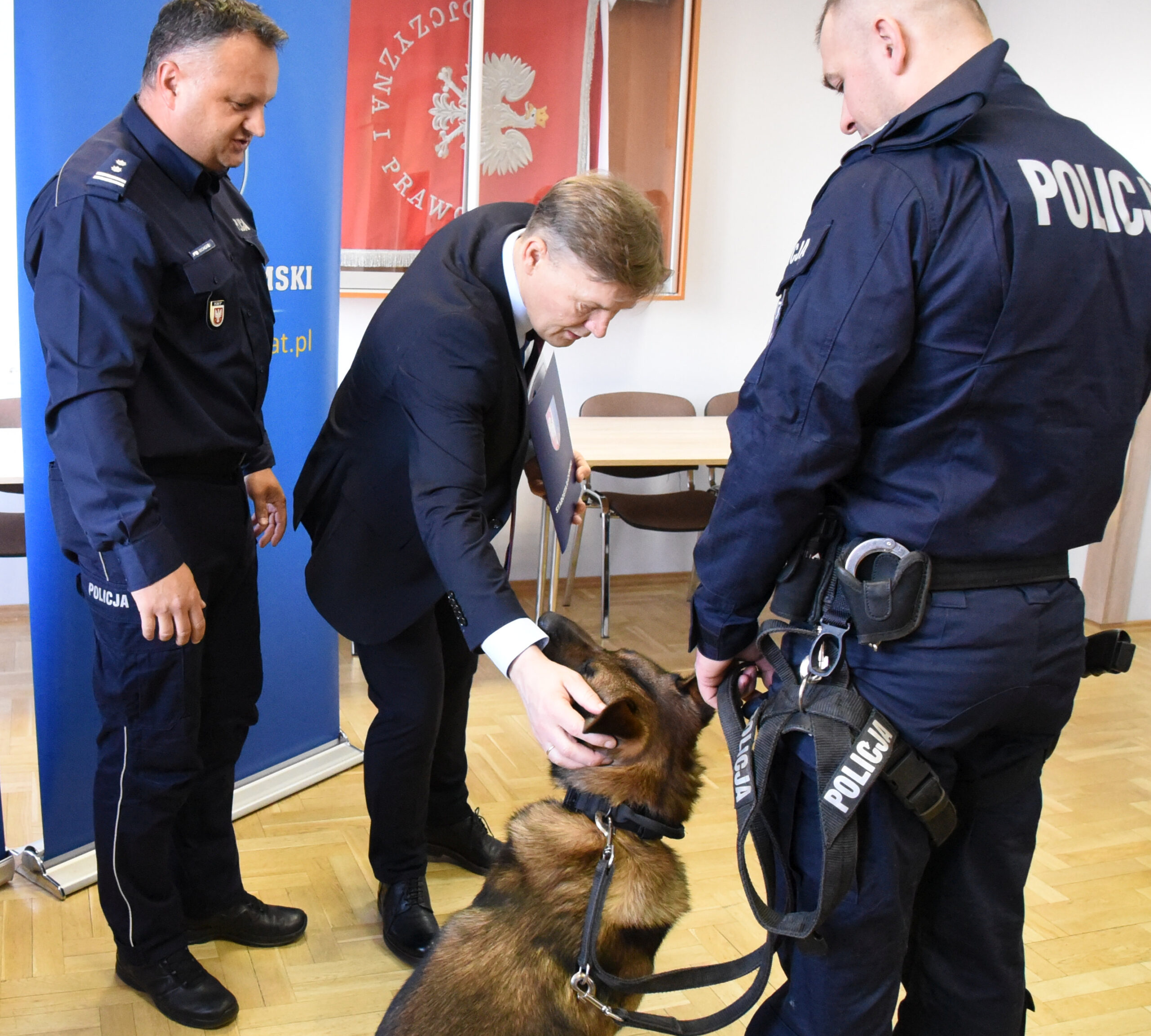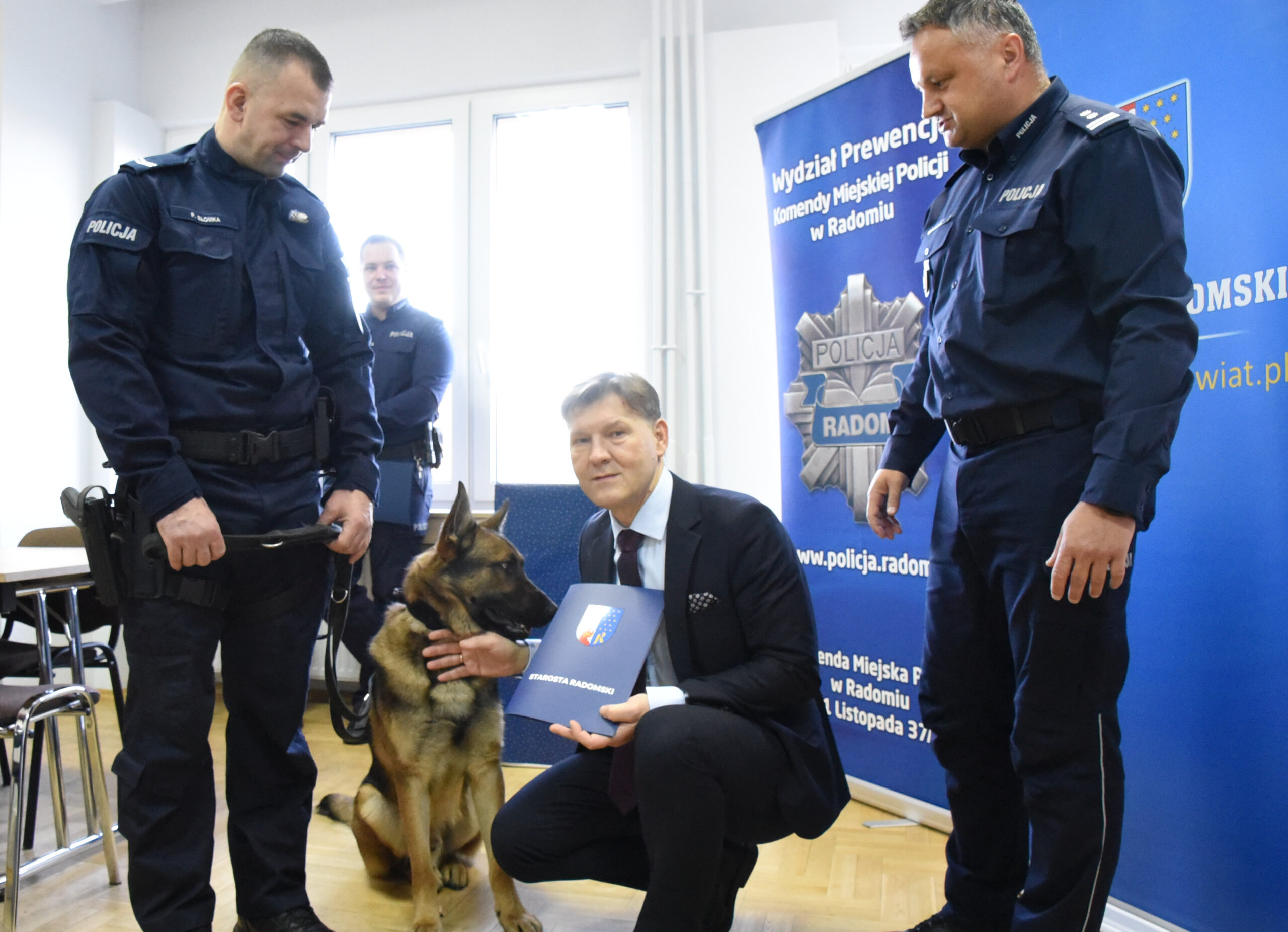 Jeszcze jednym bohaterem uroczystości był SKAN, czyli owczarek niemiecki, wyszkolony do wykrywania materiałów wybuchowych, w którego zakupie partycypował samorząd powiatowy. Jego przewodnik st. sierż. Piotr Słomka z Wydziału Patrolowo-Interwencyjnego radomskiej komendy, odebrał również dyplom gratulacyjny.