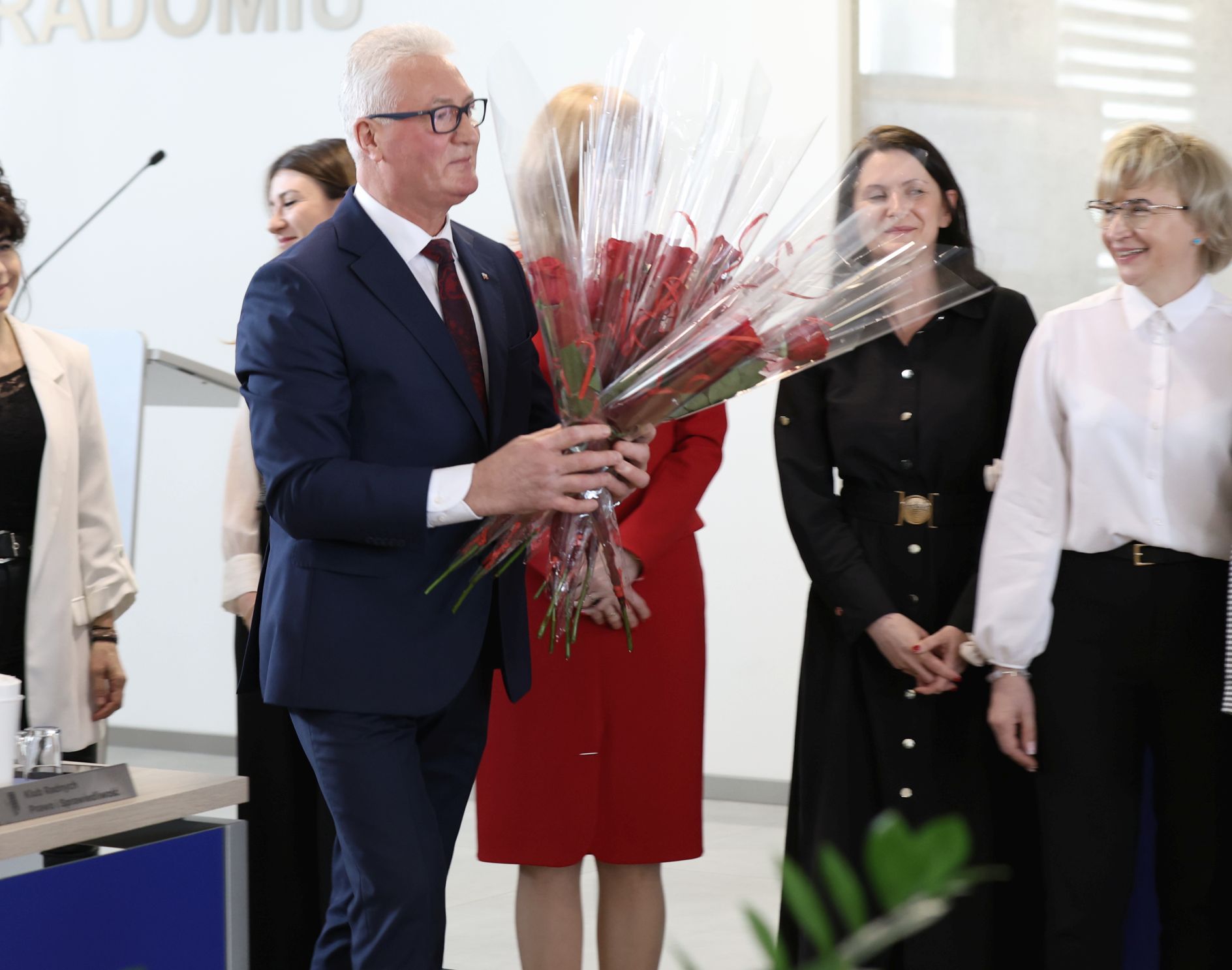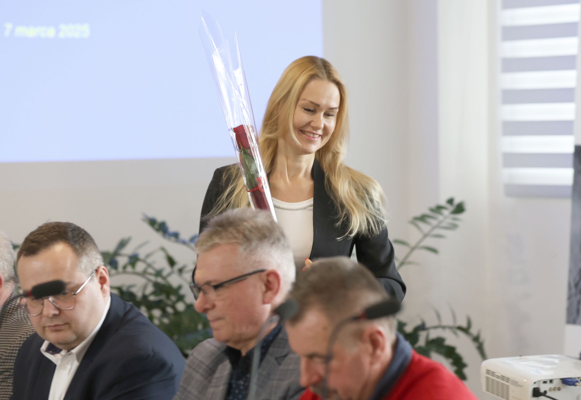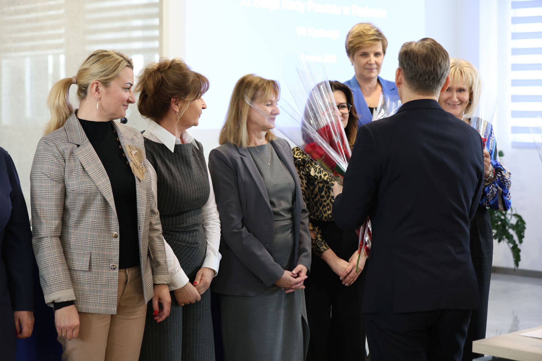 Tuż przed rozpoczęciem obrad, przewodniczący Rady Powiatu Zdzisław Mroczkowski zaprosił do wyjścia na środek wszystkie obecne panie. Następnie, wraz z zaproszonym przez niego starostą Waldemarem Trelką, wręczał kwiaty paniom radnym i pracowniczkom starostwa z okazji zbliżającego się Dnia Kobiet.