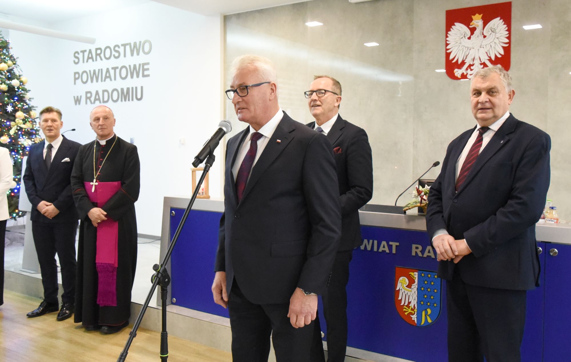 Radni Powiatu Radomskiego na spotkaniu opłatkowym z księdzem biskupem Markiem Solarczykiem. Był opłatek, choinka i świąteczne życzenia