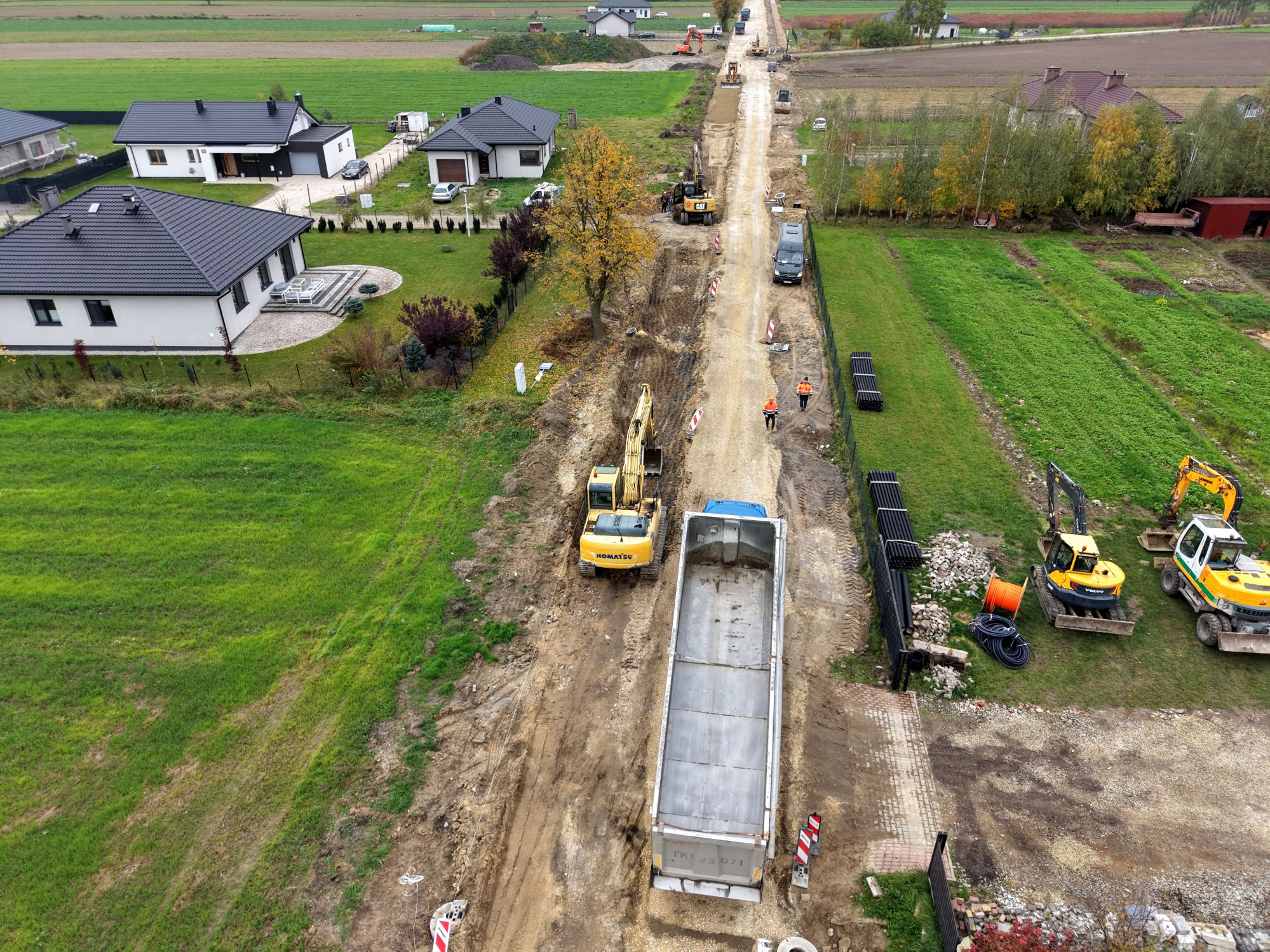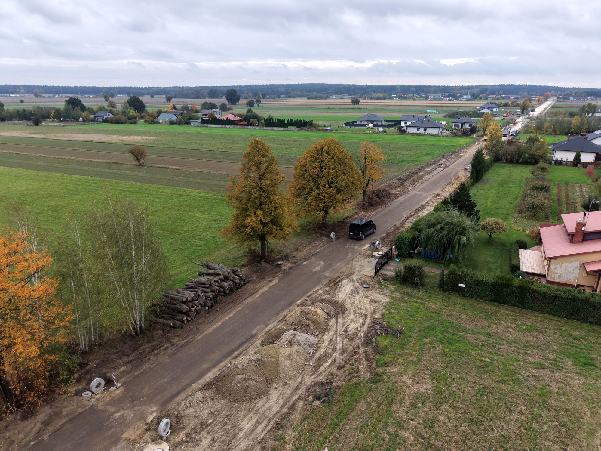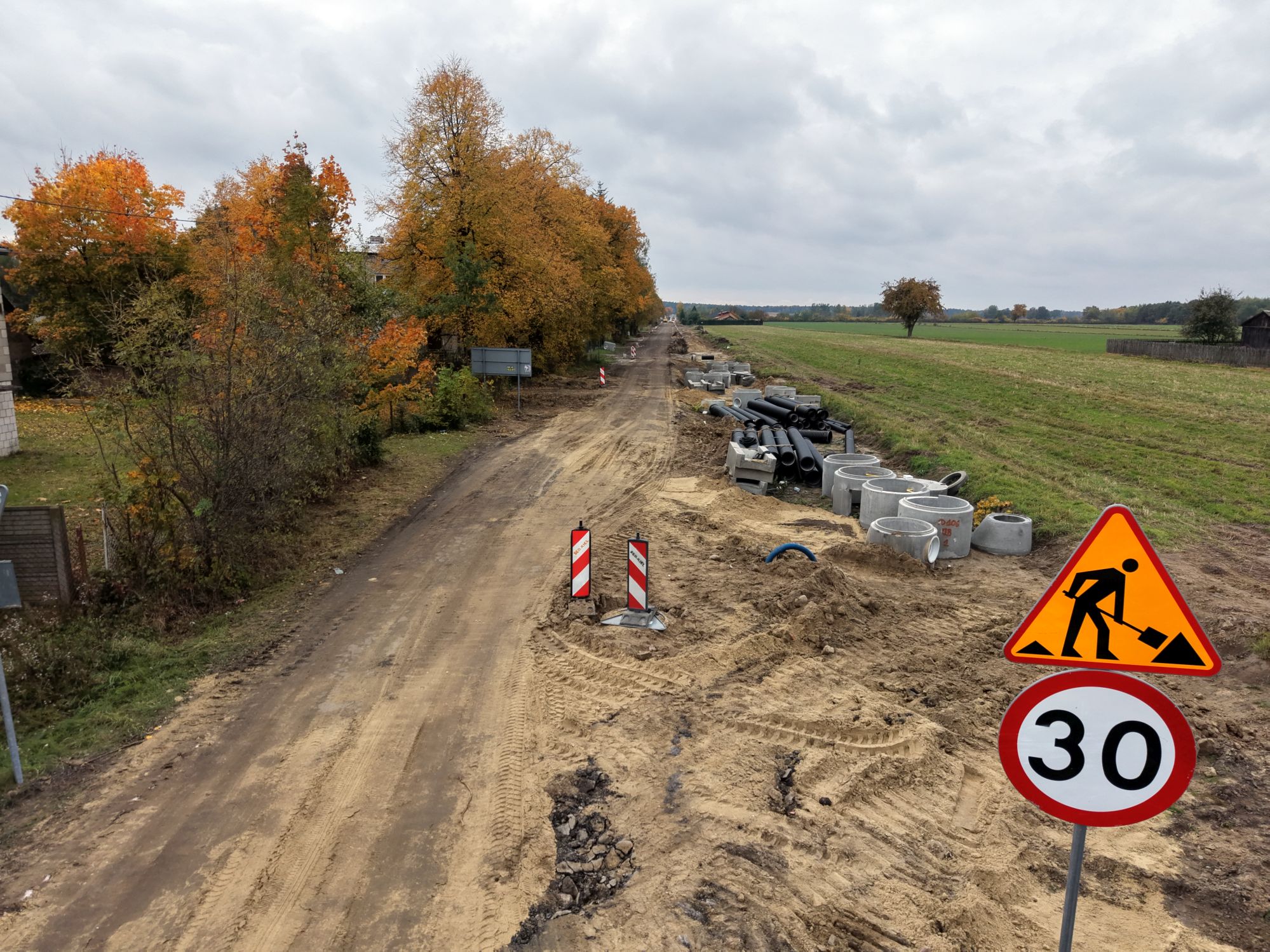 Kolejne kilometry drogi powiatowej powstają między miejscowościami Bardzice, a Zalesice. Wszystkie prace toczą się zgodnie z harmonogramem i gołym okiem widać w jak szybkim tempie przebiega budowa.