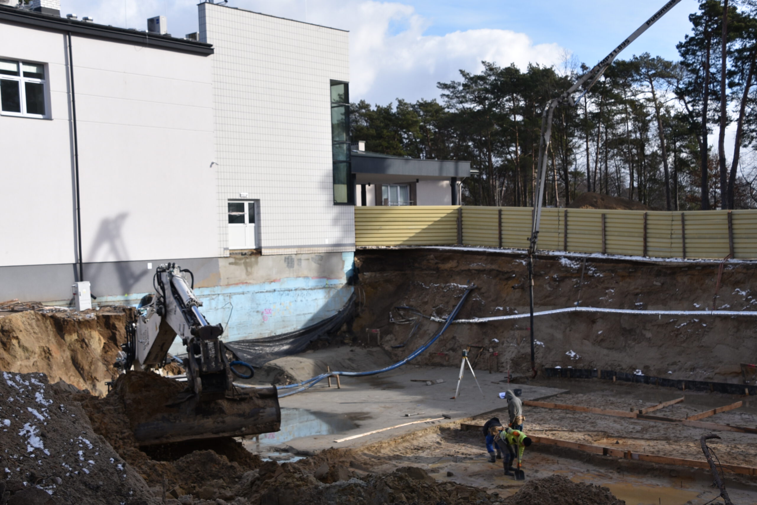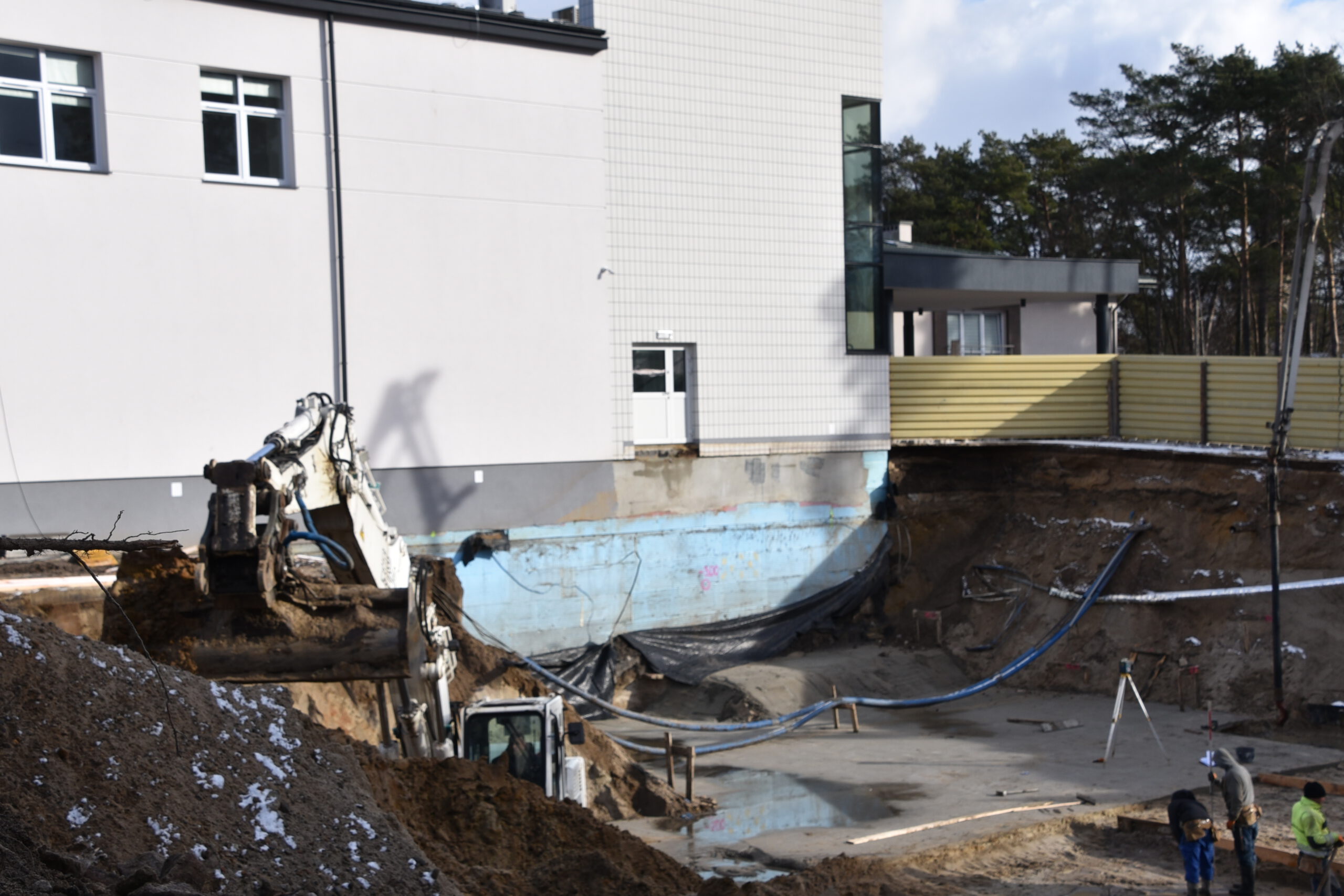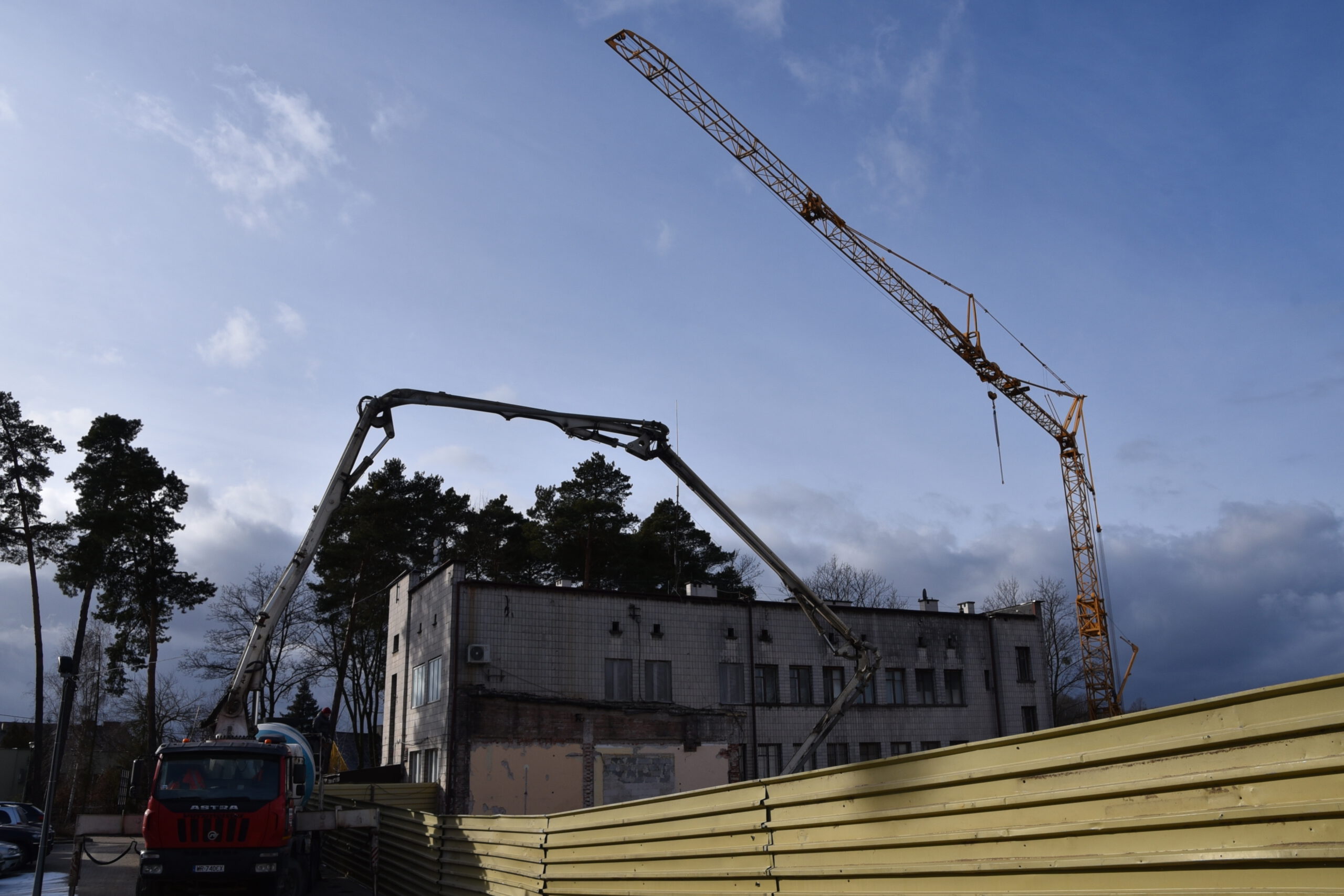 Pracownicy firmy radomskiej Arbud Investments nadal wykonują roboty ziemne oraz prace związane z zalewaniem płyt fundamentowych. Przy budynku starej chirurgii stanął żuraw wieżowy, który będzie ułatwiał transport materiałów budowlanych oraz wylewanie kolejnych elementów konstrukcyjnych. Cały budynek będzie miał dwa piętra.