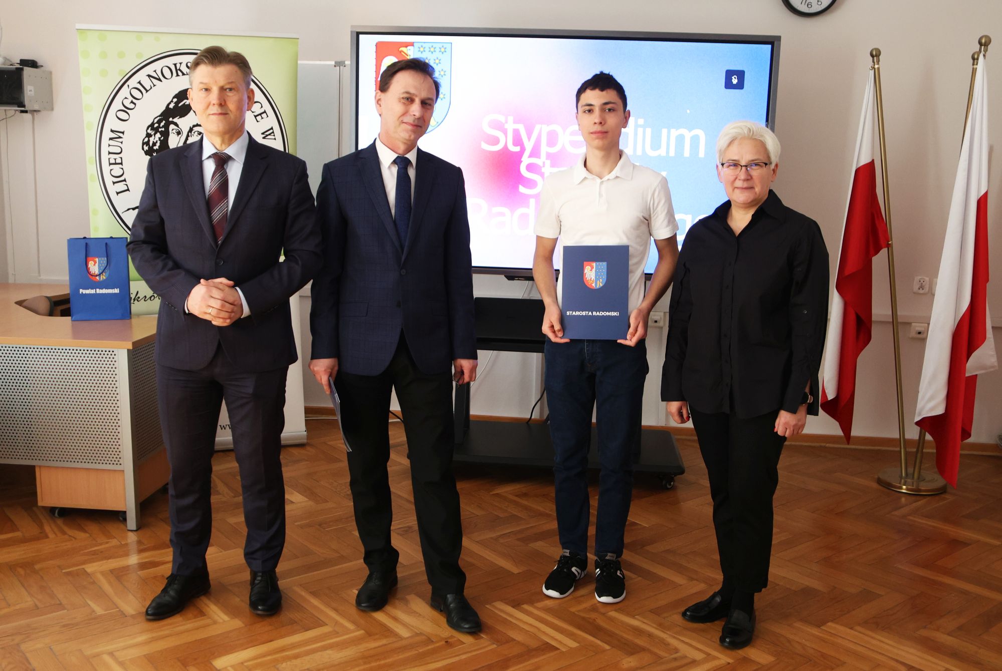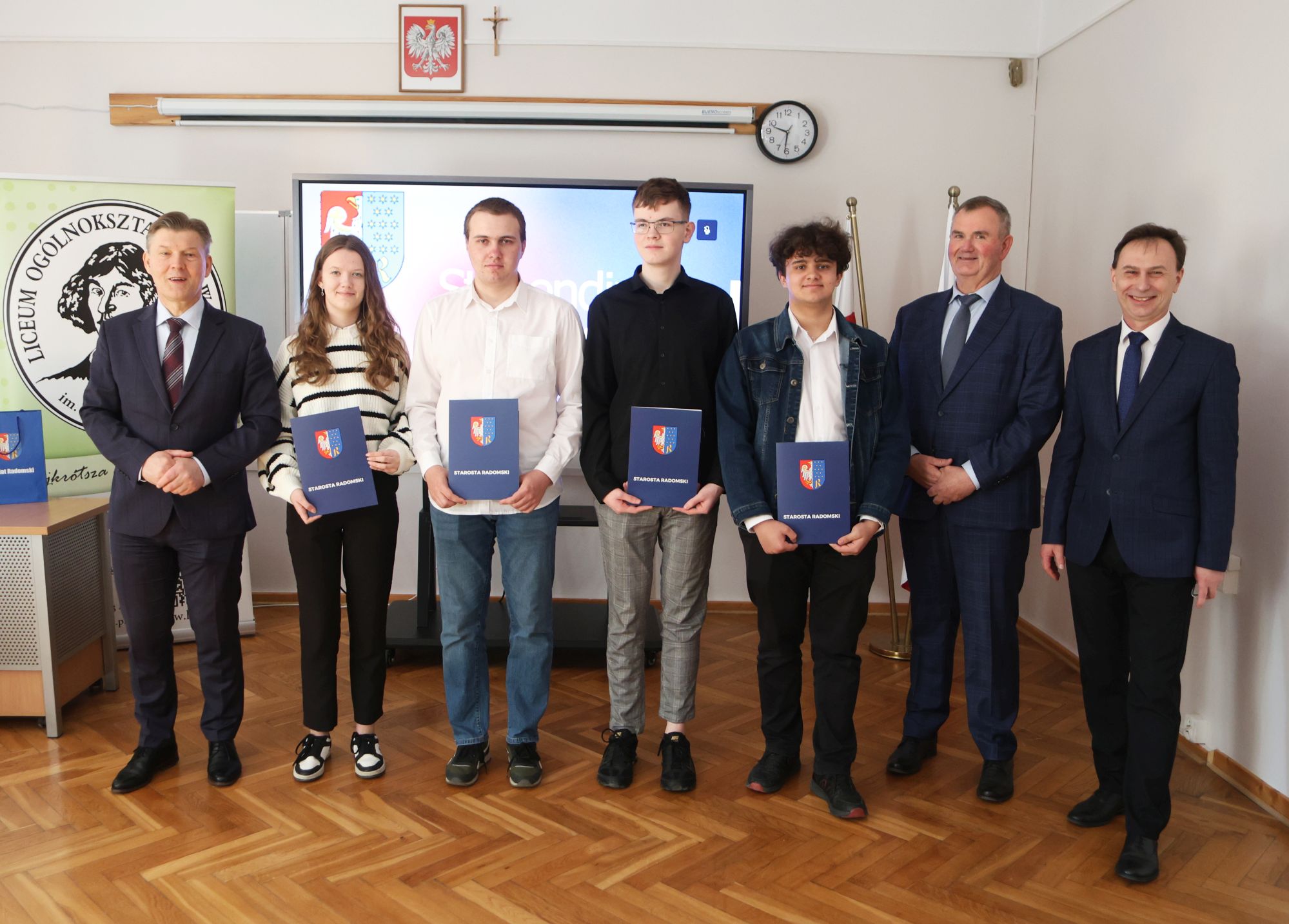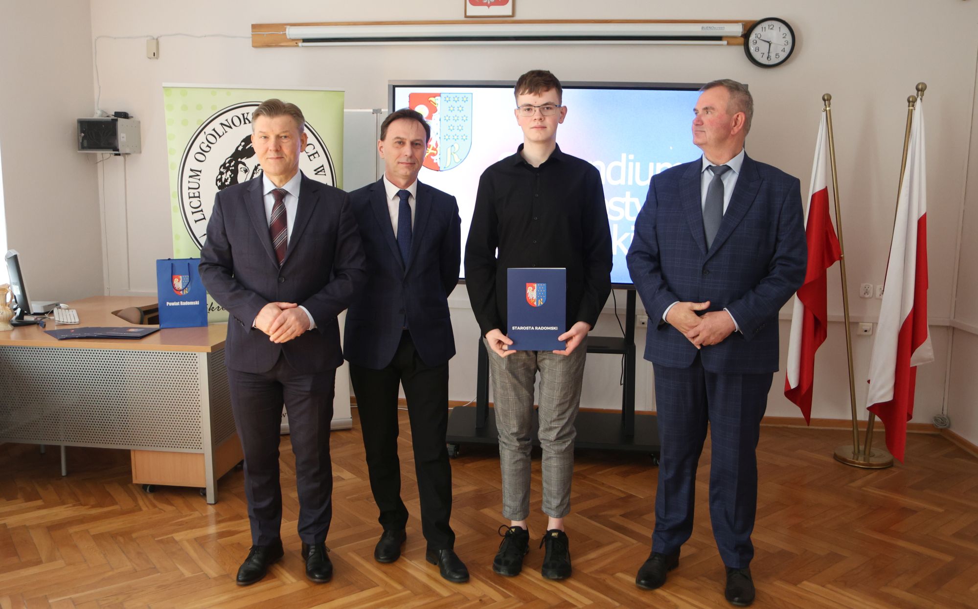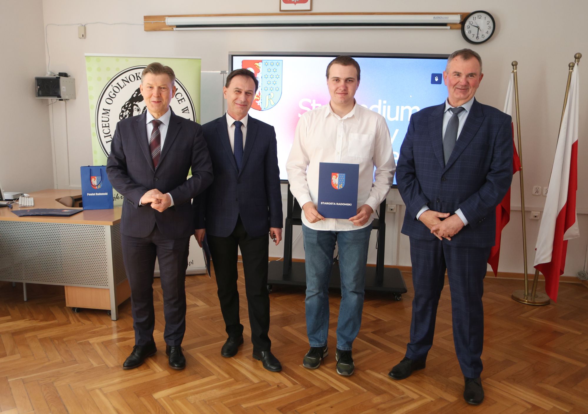 Podczas krótkiej, ale miłej uroczystości ze starostą Waldemarem Treklą spotkali się dyrektorzy szkół Agnieszka Kopeć Fila (Liceum Ogólnokształcące im. Kopernika z Iłży) oraz Leszek Giemza (Zespół Szkół Ponadpodstawowych im. Stanisława Staszica).