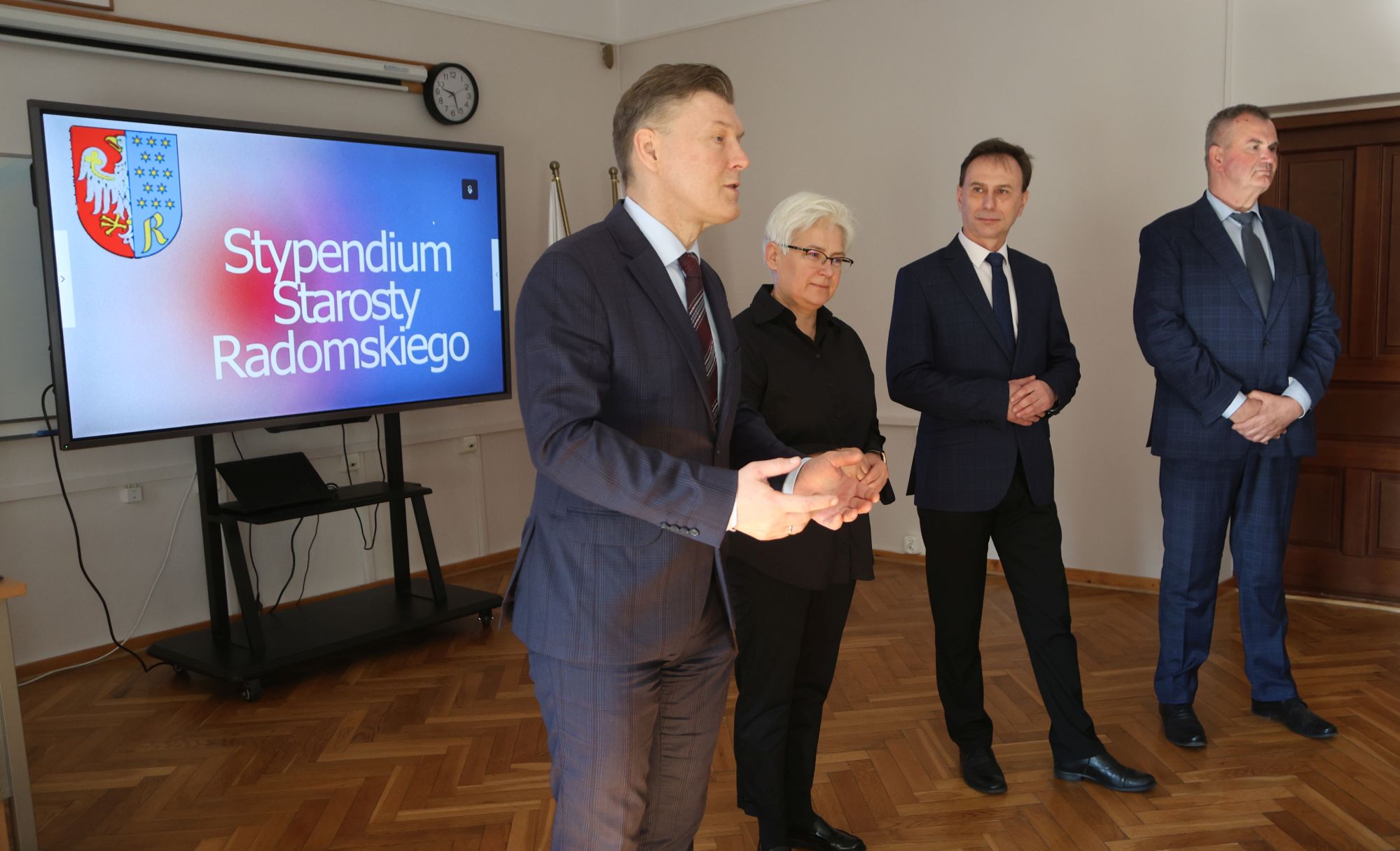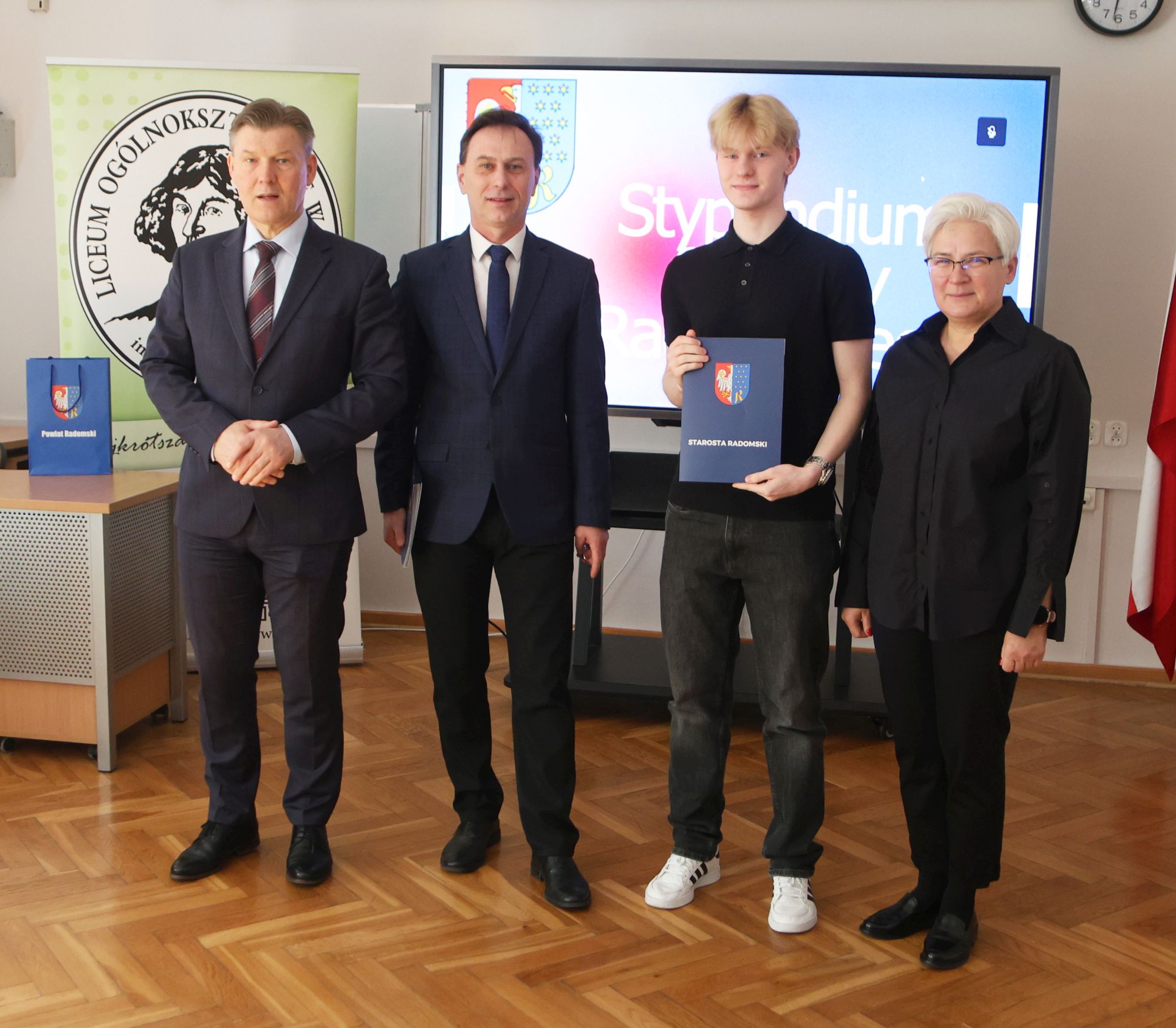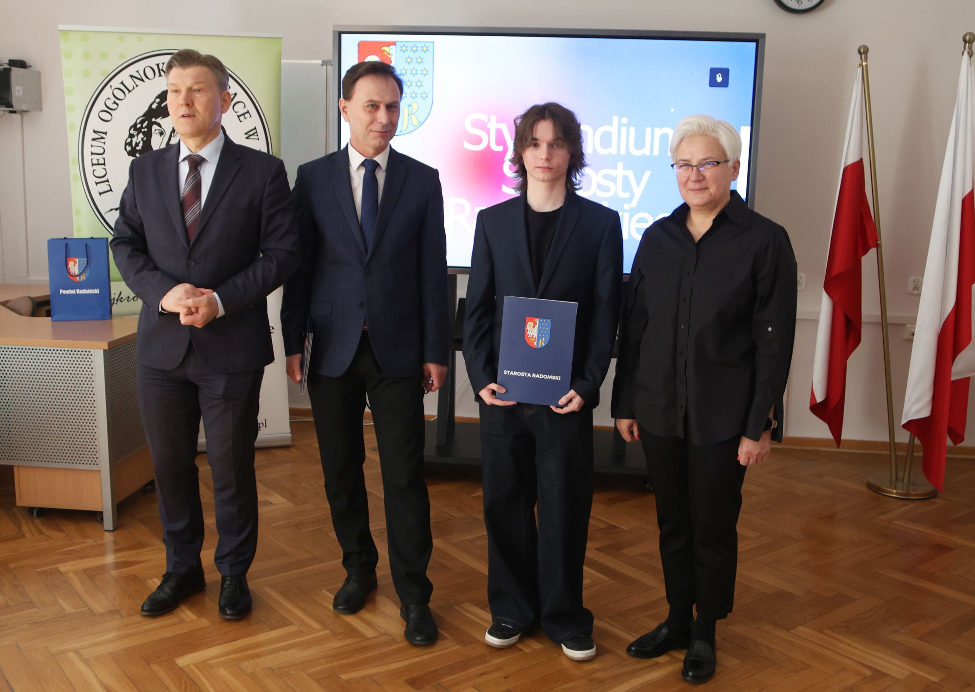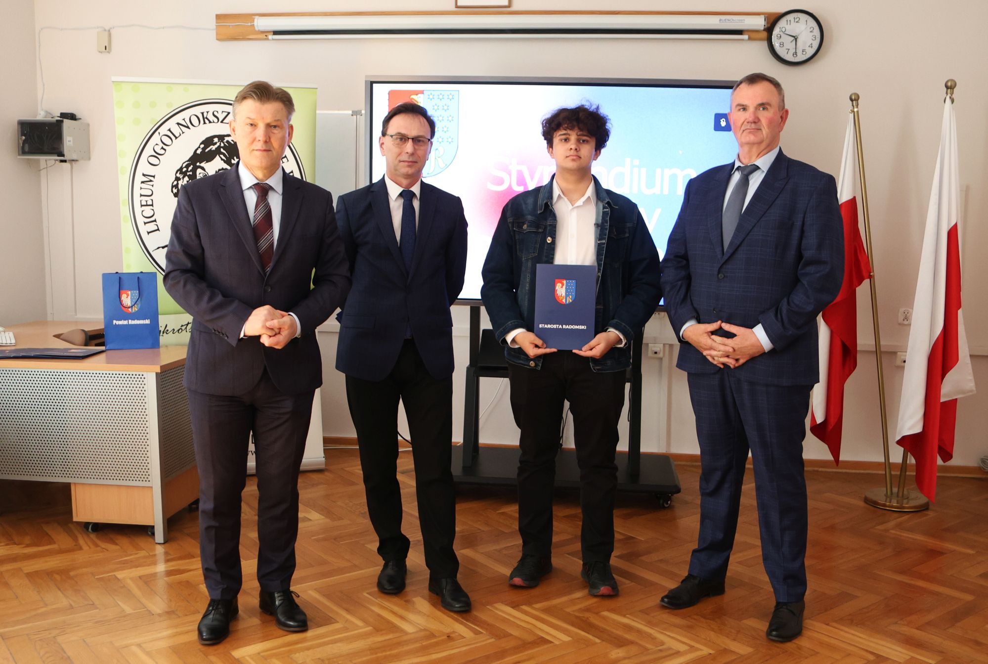 Podczas krótkiej, ale miłej uroczystości ze starostą Waldemarem Treklą spotkali się dyrektorzy szkół Agnieszka Kopeć Fila (Liceum Ogólnokształcące im. Kopernika z Iłży) oraz Leszek Giemza (Zespół Szkół Ponadpodstawowych im. Stanisława Staszica).
