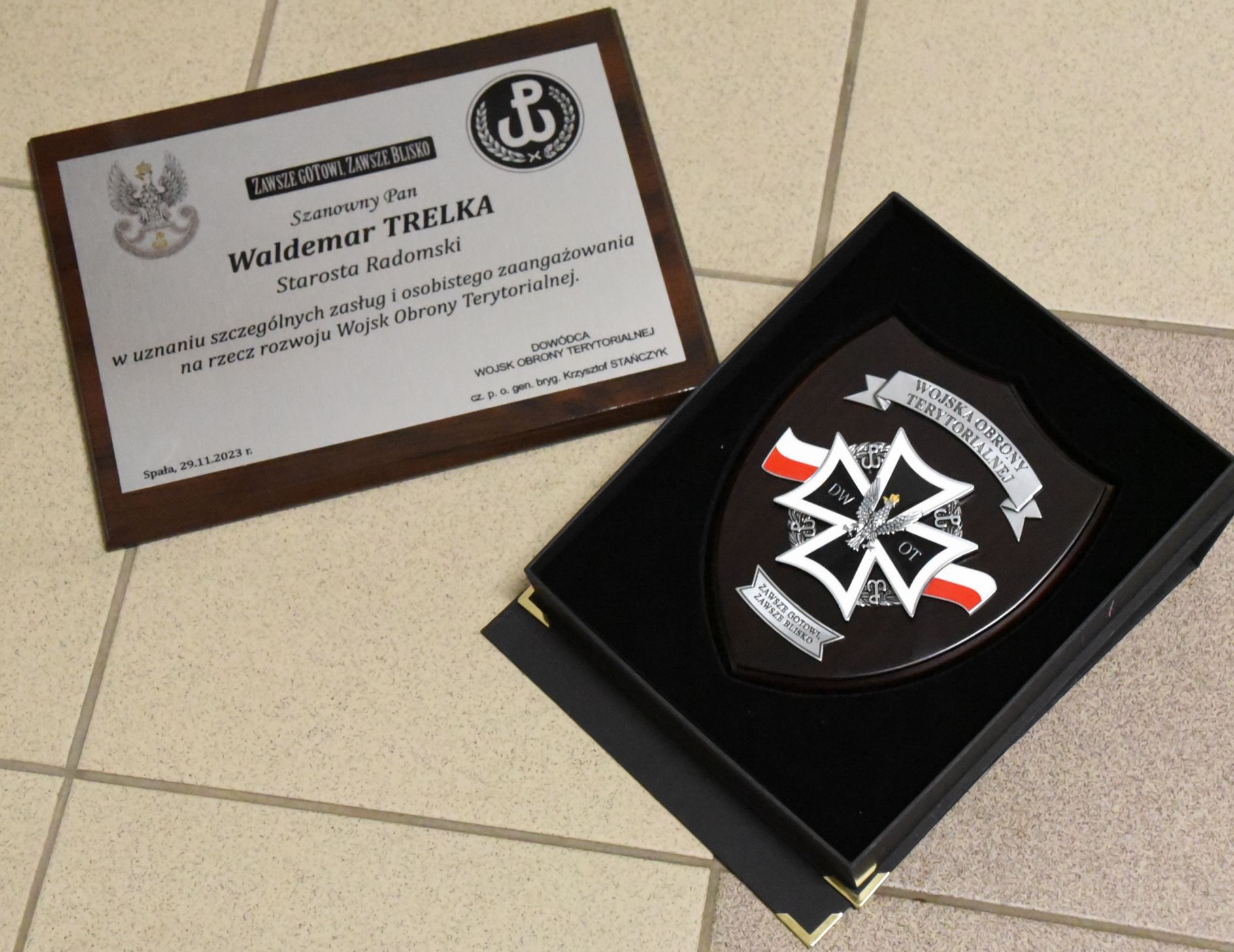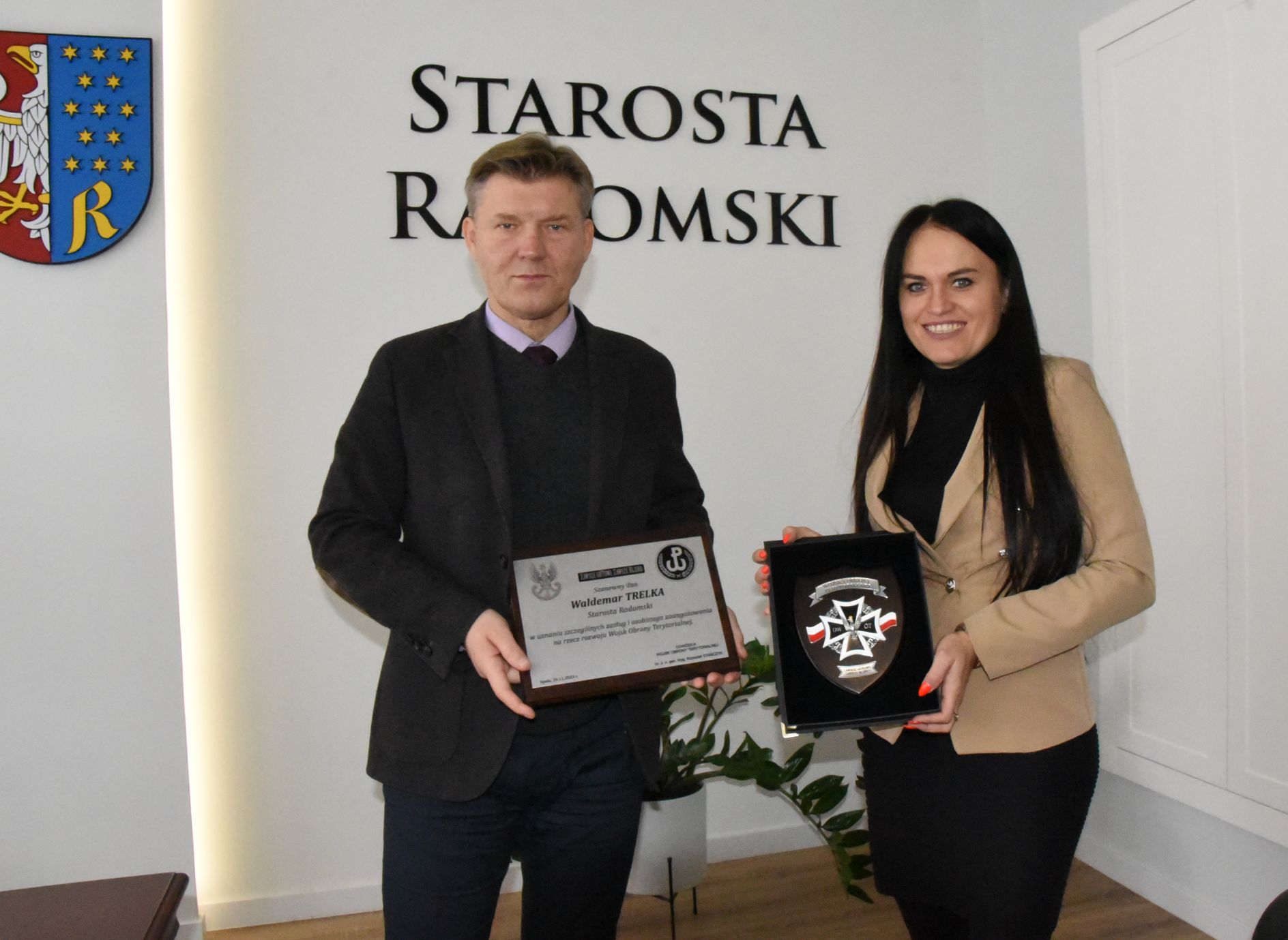 – Pan starosta Waldemar Trelka swoją postawą poprzez tworzenie dobrych warunków panujących w zakładzie pracy, wspiera pracowników-żołnierzy OT, rozumie on istotę budowy formacji, w tym realizowane przez nią cele i zadania, szczególnie w aspekcie lokalnym. Ponadto dba o to, aby umożliwić swoim pracownikom – żołnierzom OT realizację zadań, wynikających z przynależności do jednego z rodzajów Sił Zbrojnych RP oraz wspiera zdobywanie nowych kwalifikacji w specjalistycznych dziedzinach wojskowych – mówił dowódca 62 Batalionu Lekkiej Piechoty w Radomiu ppłk Artur Wasilewski