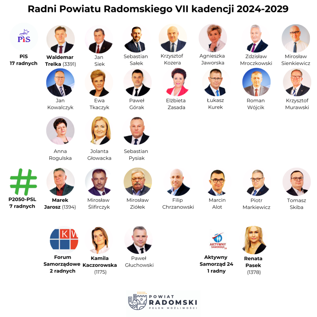 Wybory samorządowe 2024. Skład Rady Powiatu Radomskiego VII kadencji 2024-2029